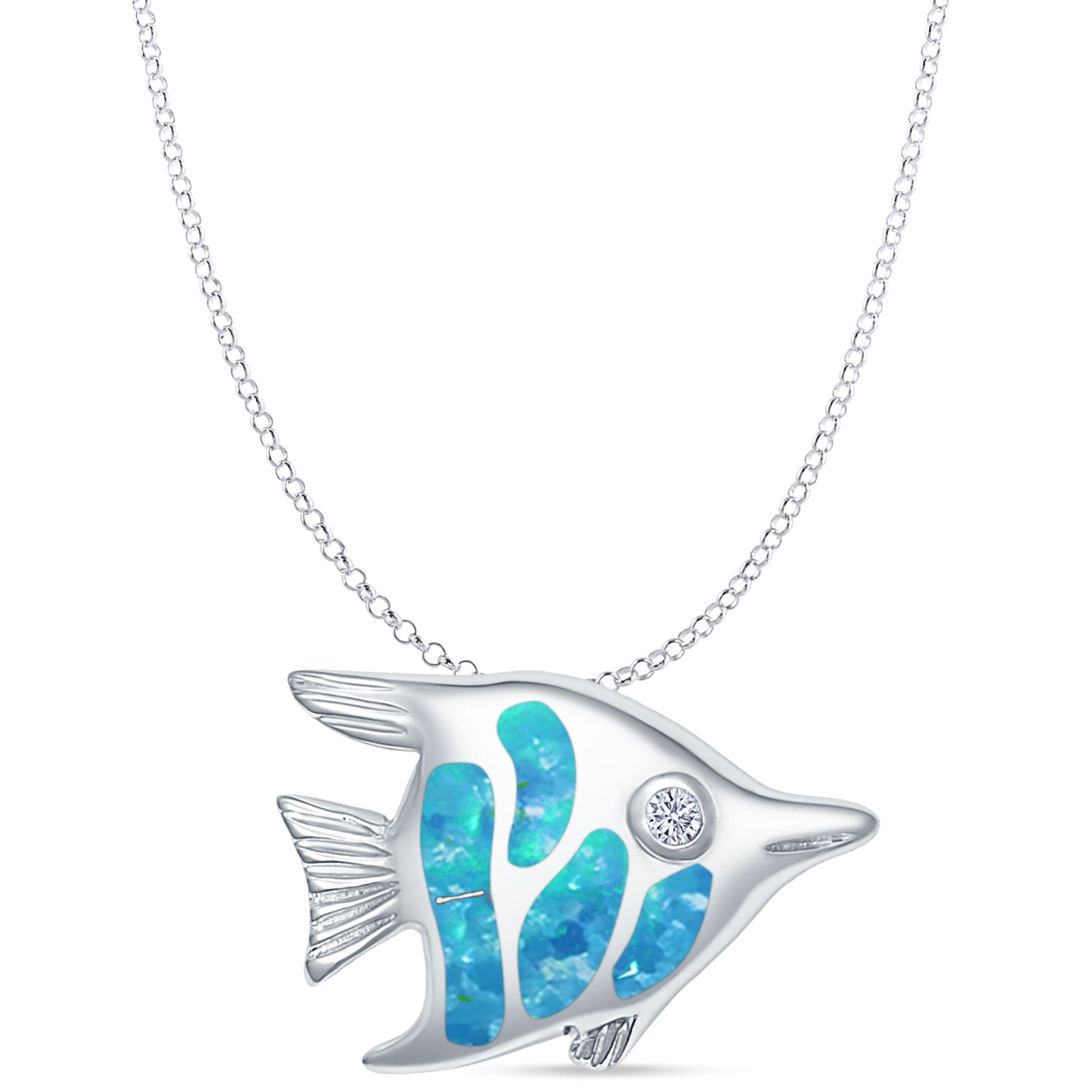 Style: Lab Created Blue Opal Angel Fish Pendant Necklace