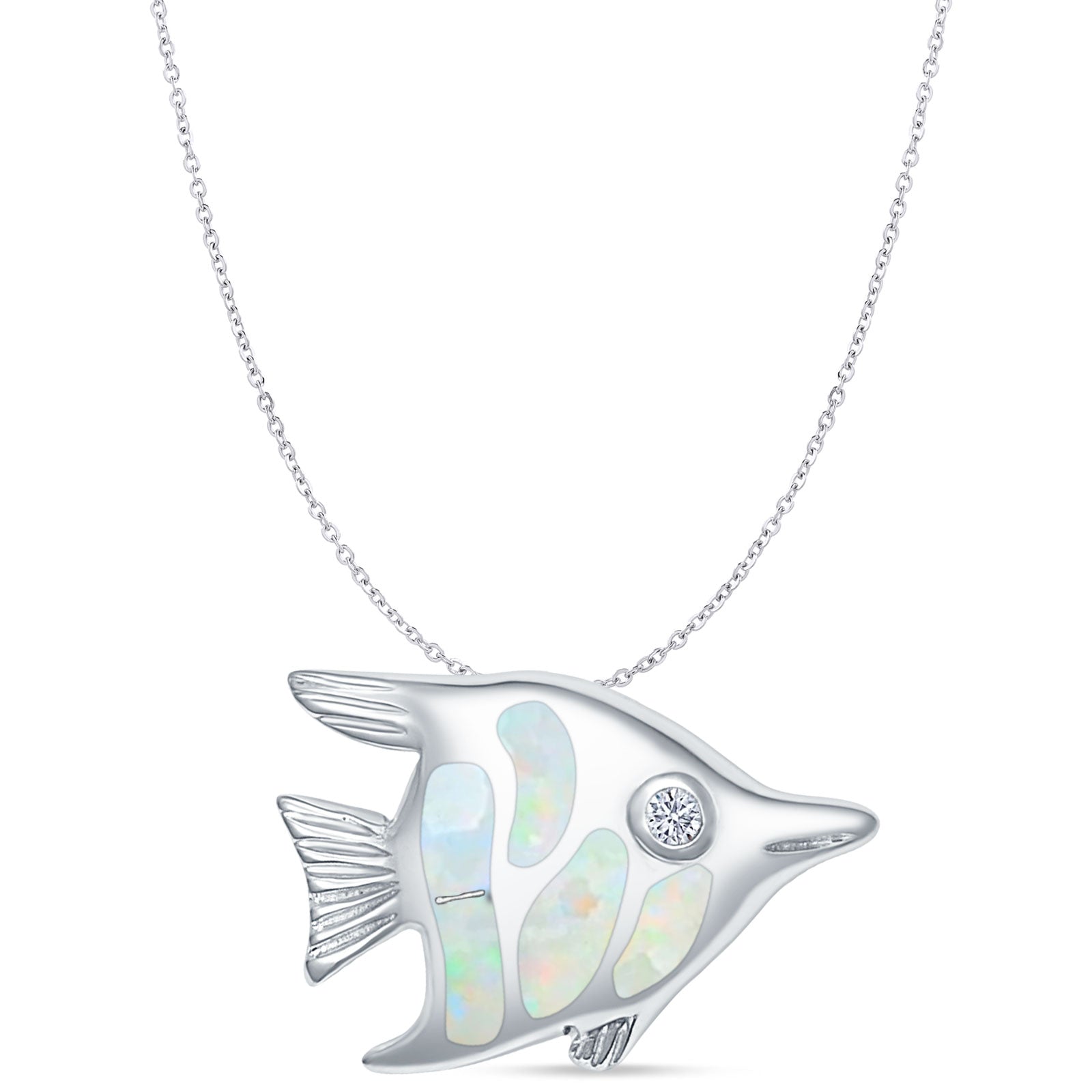 Style: Lab Created White Opal Angel Fish Pendant Necklace