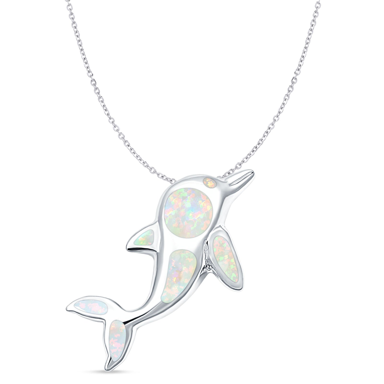 Style: Lab Created White Opal Dolphin Pendant Necklace