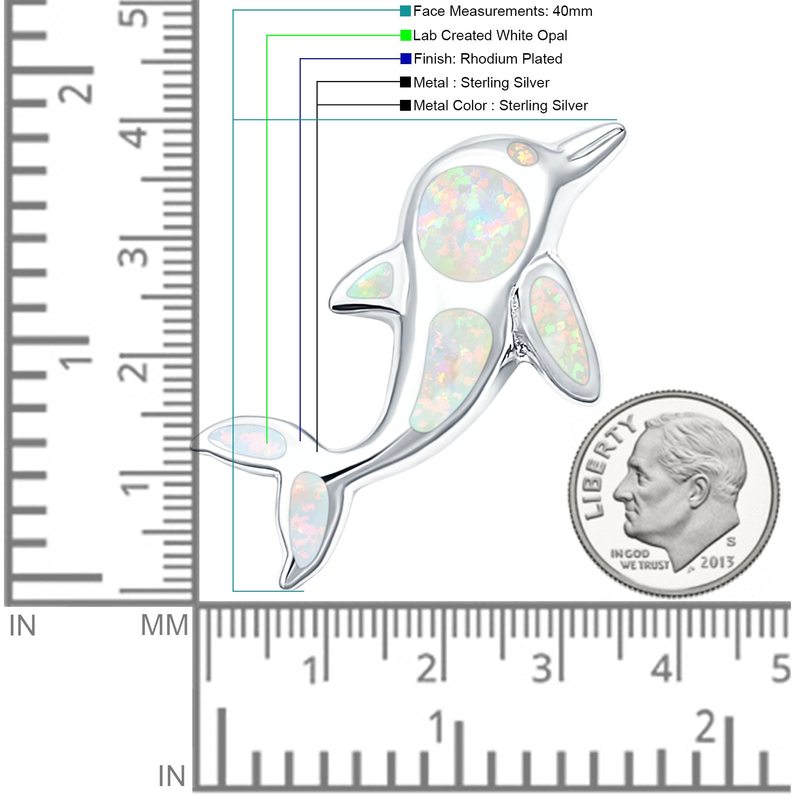 Lab Created White Opal Dolphin Pendant Cable Chain Necklace 925 Sterling Silver
