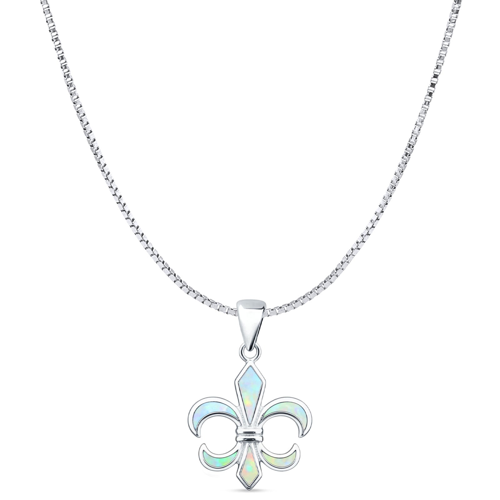 Lab Created White Opal Fleur De Lis Pendant Box Chain Necklace 925 Sterling Silver