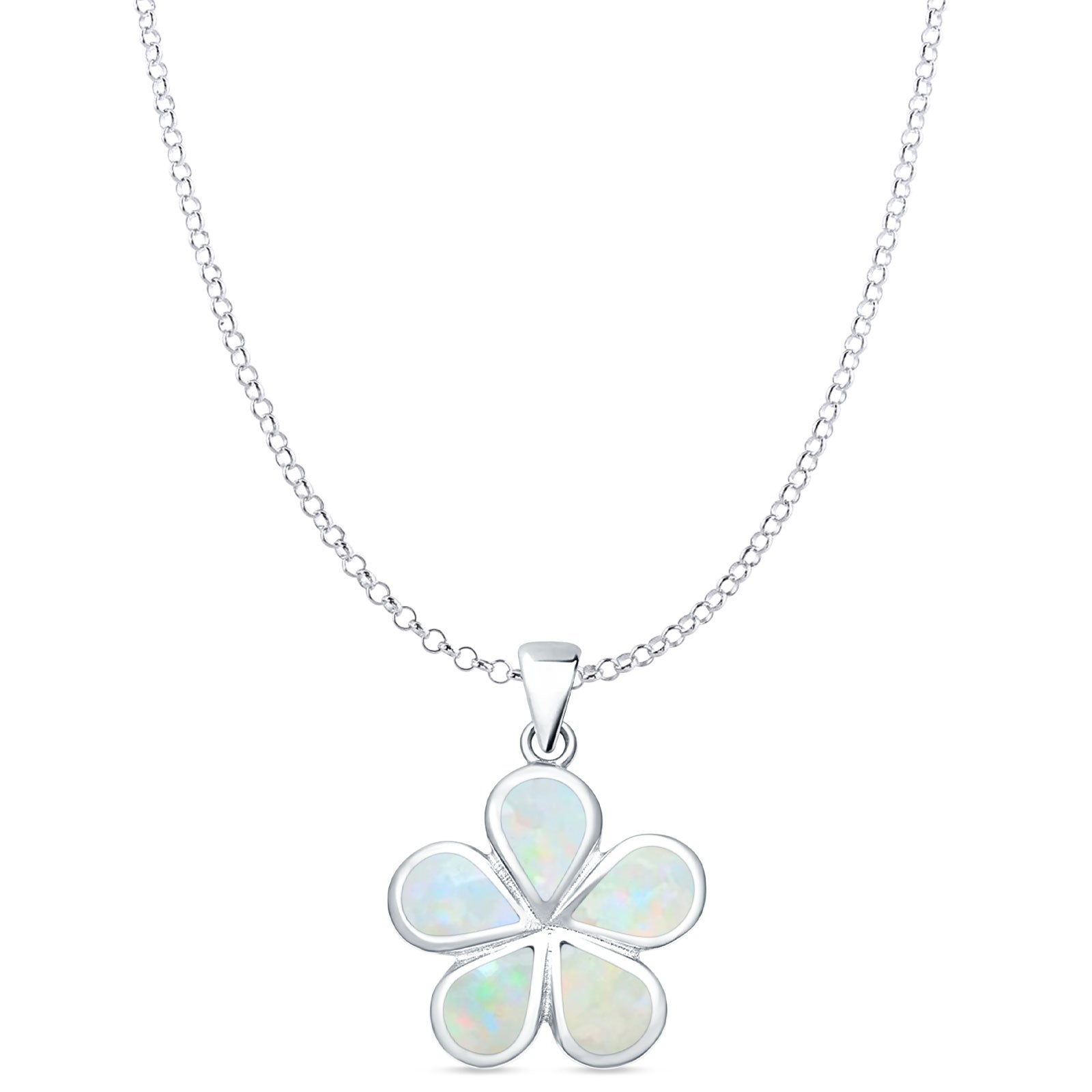 Style: Lab Created White Opal Plumeria Pendant Necklace