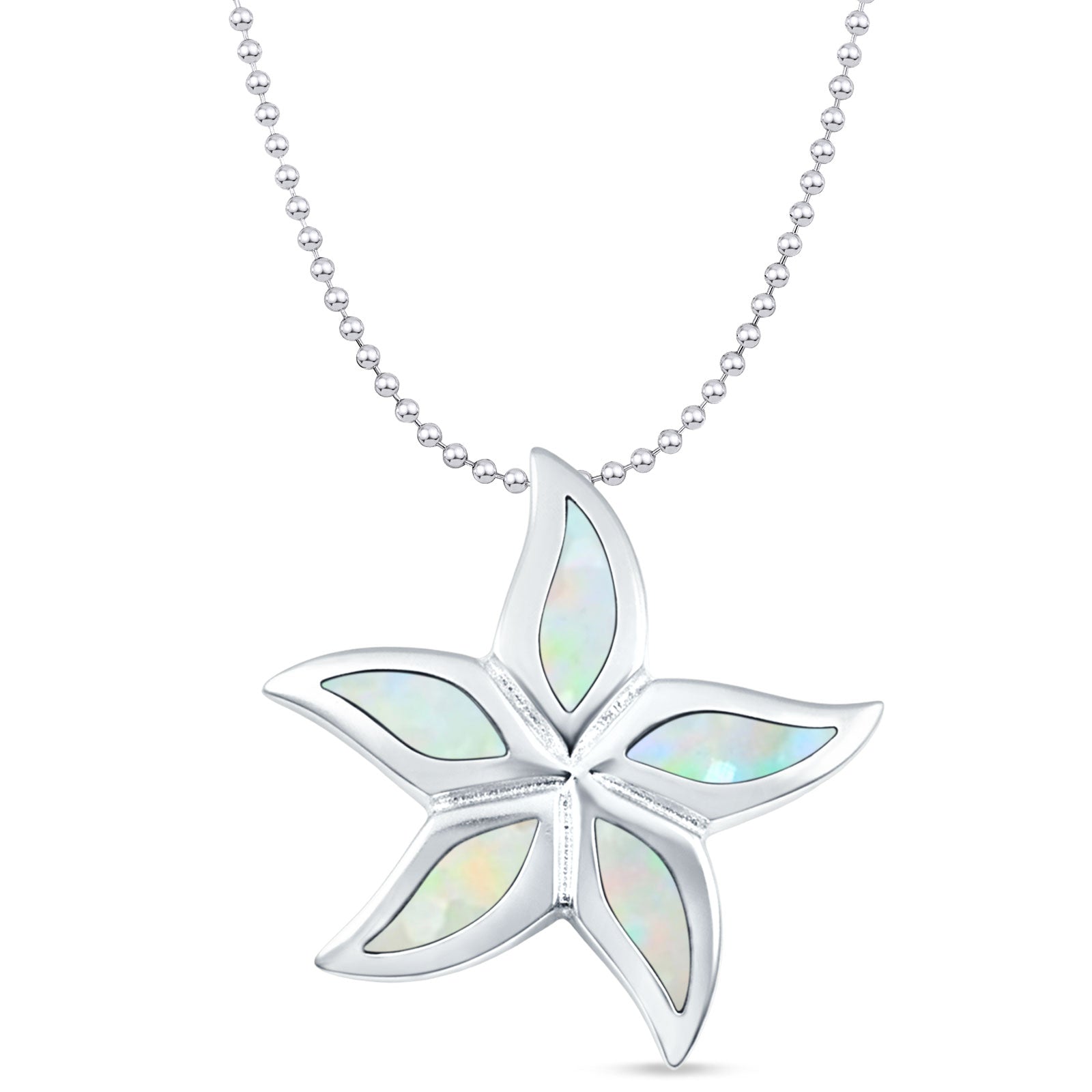 Style: Lab Created White Opal Starfish Pendant Necklace