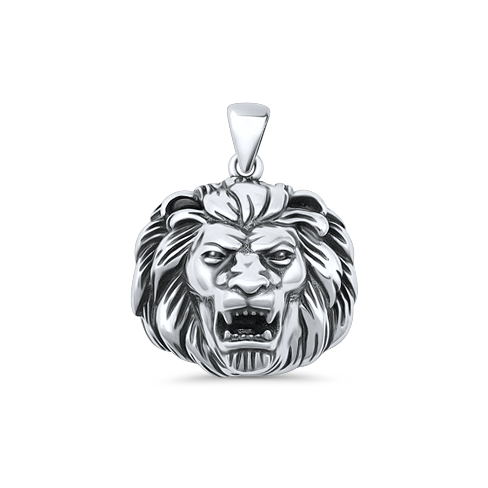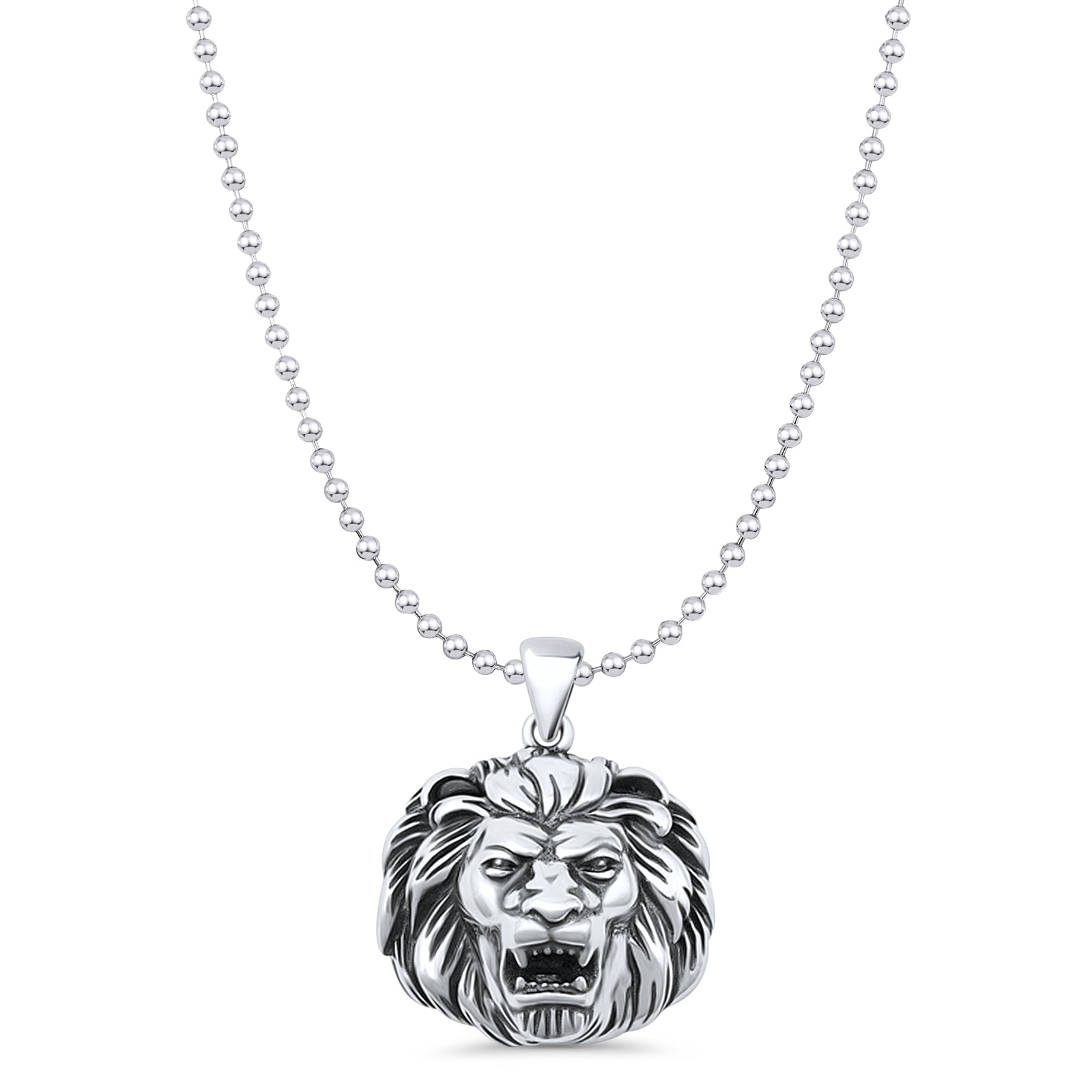 Lion Head Pendant Bead Chain Necklace Oxidized 925 Sterling Silver