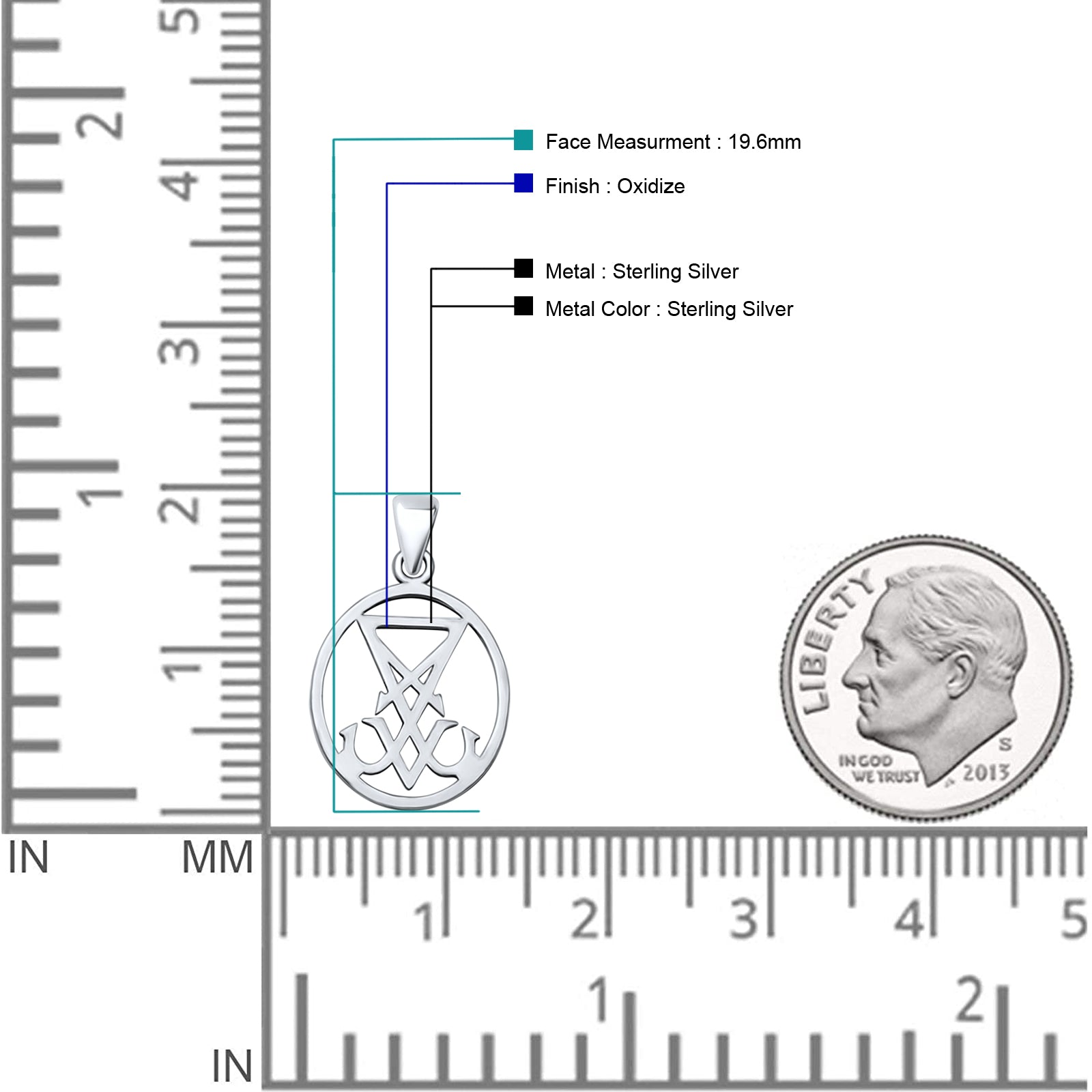 Pendant Length: 19.6mm(0.77 inch)
