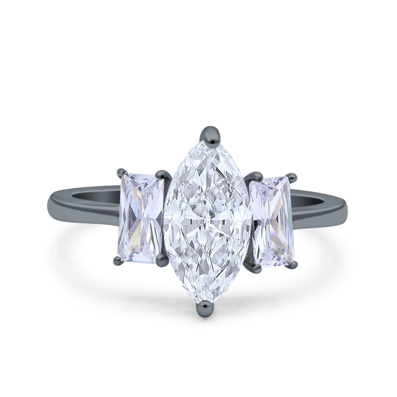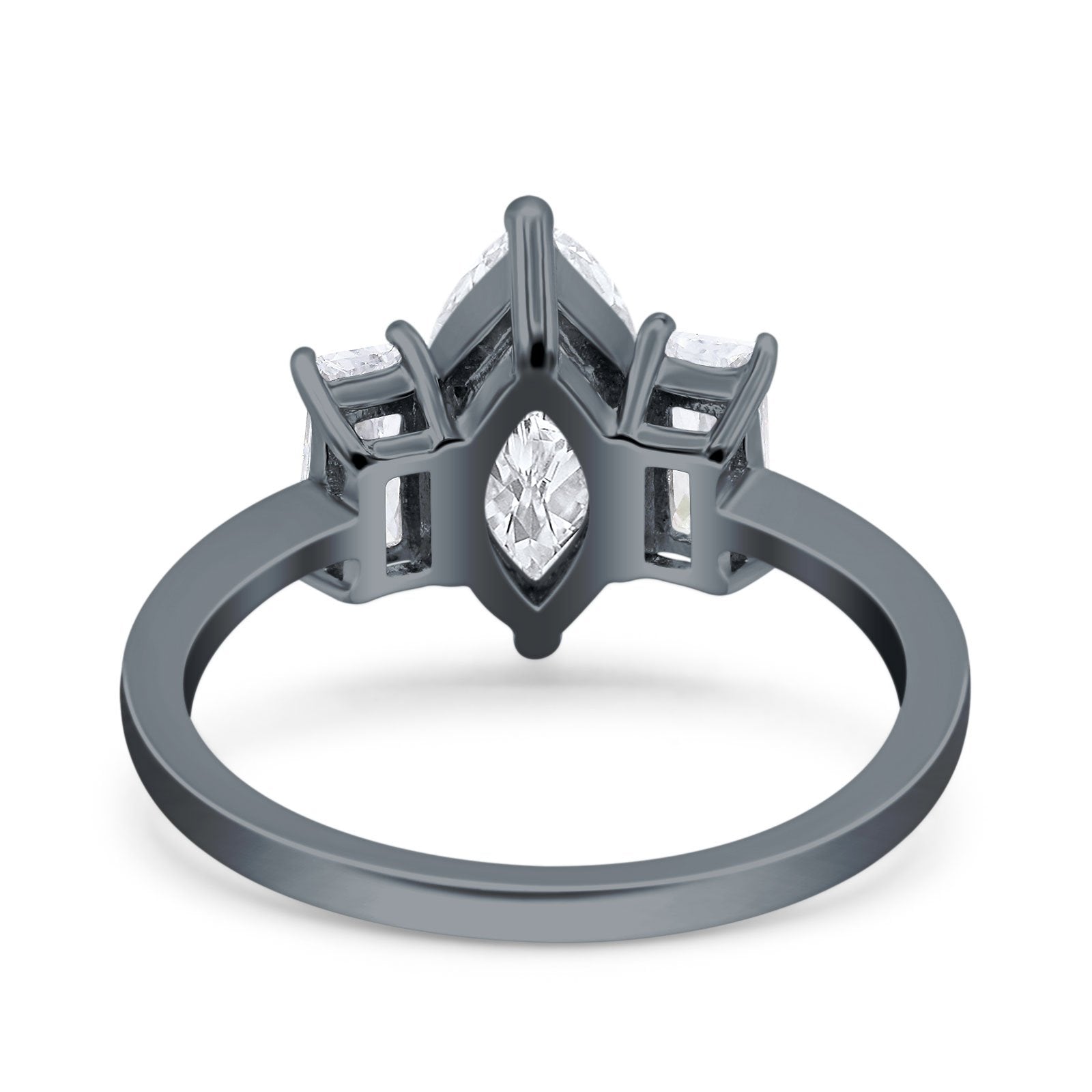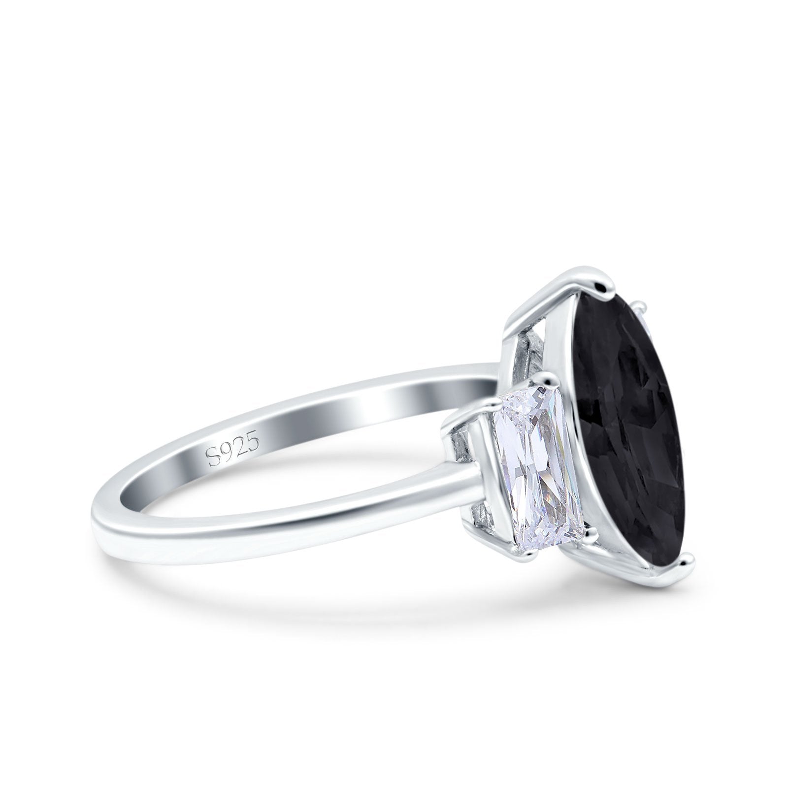 Marquise Art Deco Emerald Cut Wedding Bridal Ring Simulated Cubic Zirconia 925 Sterling Silver
