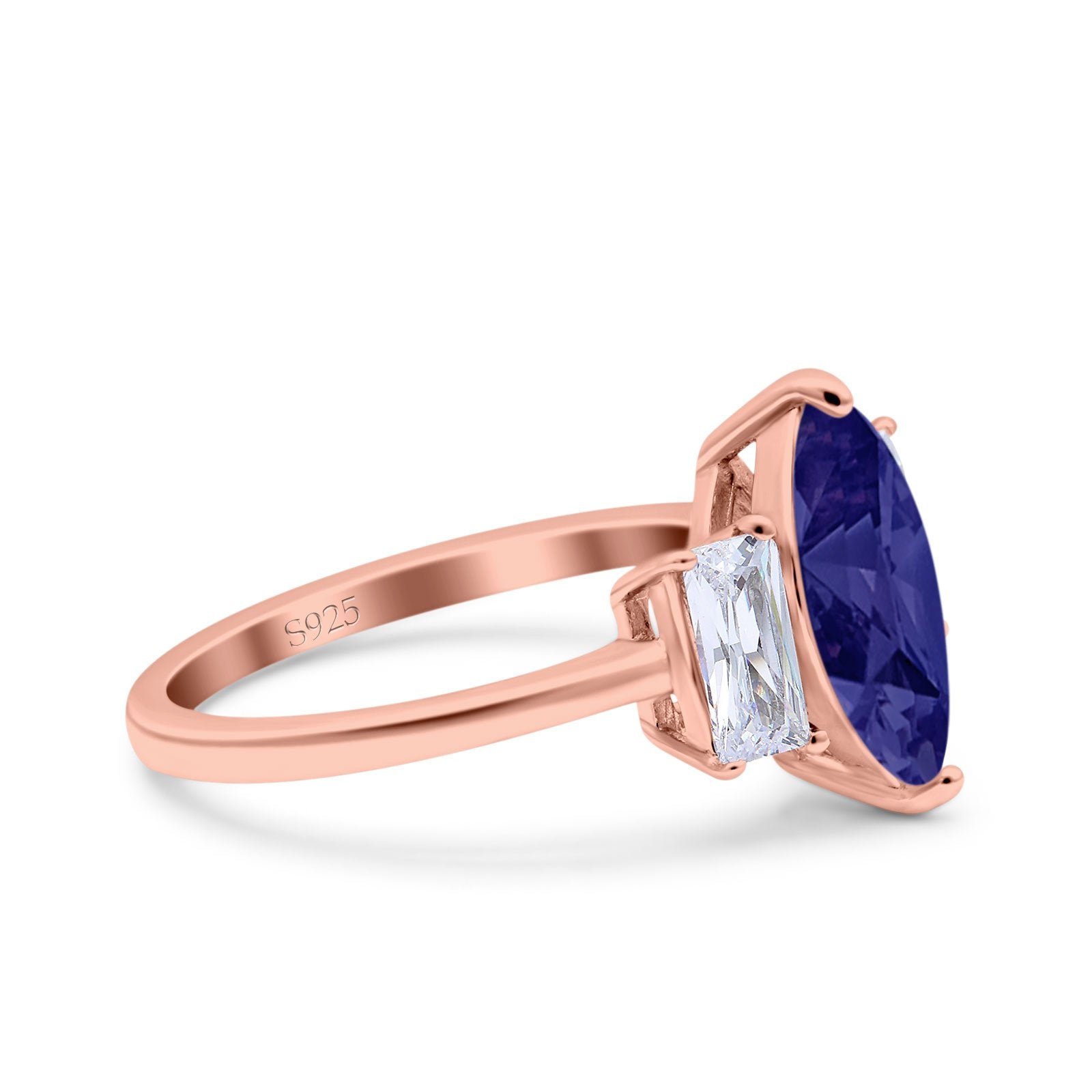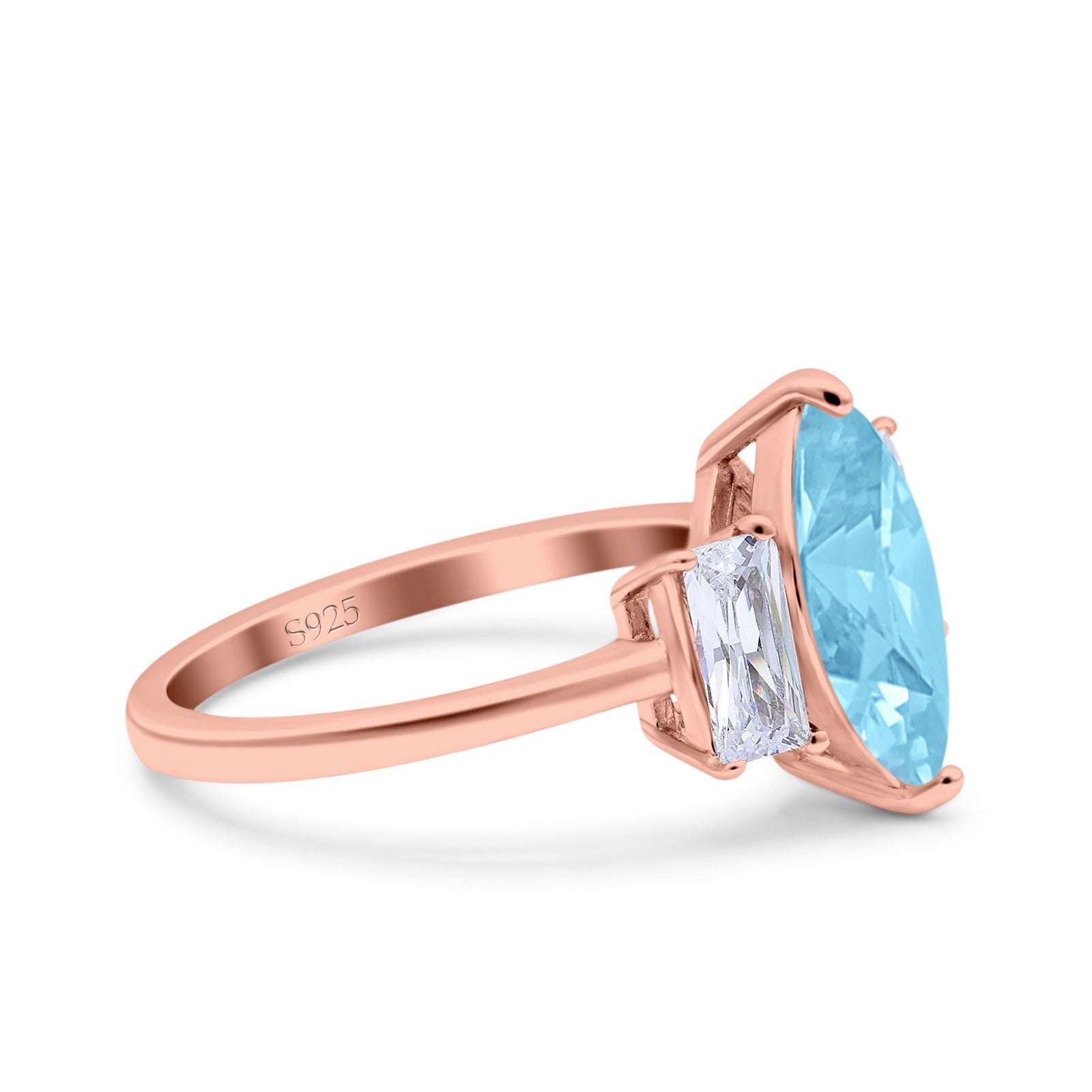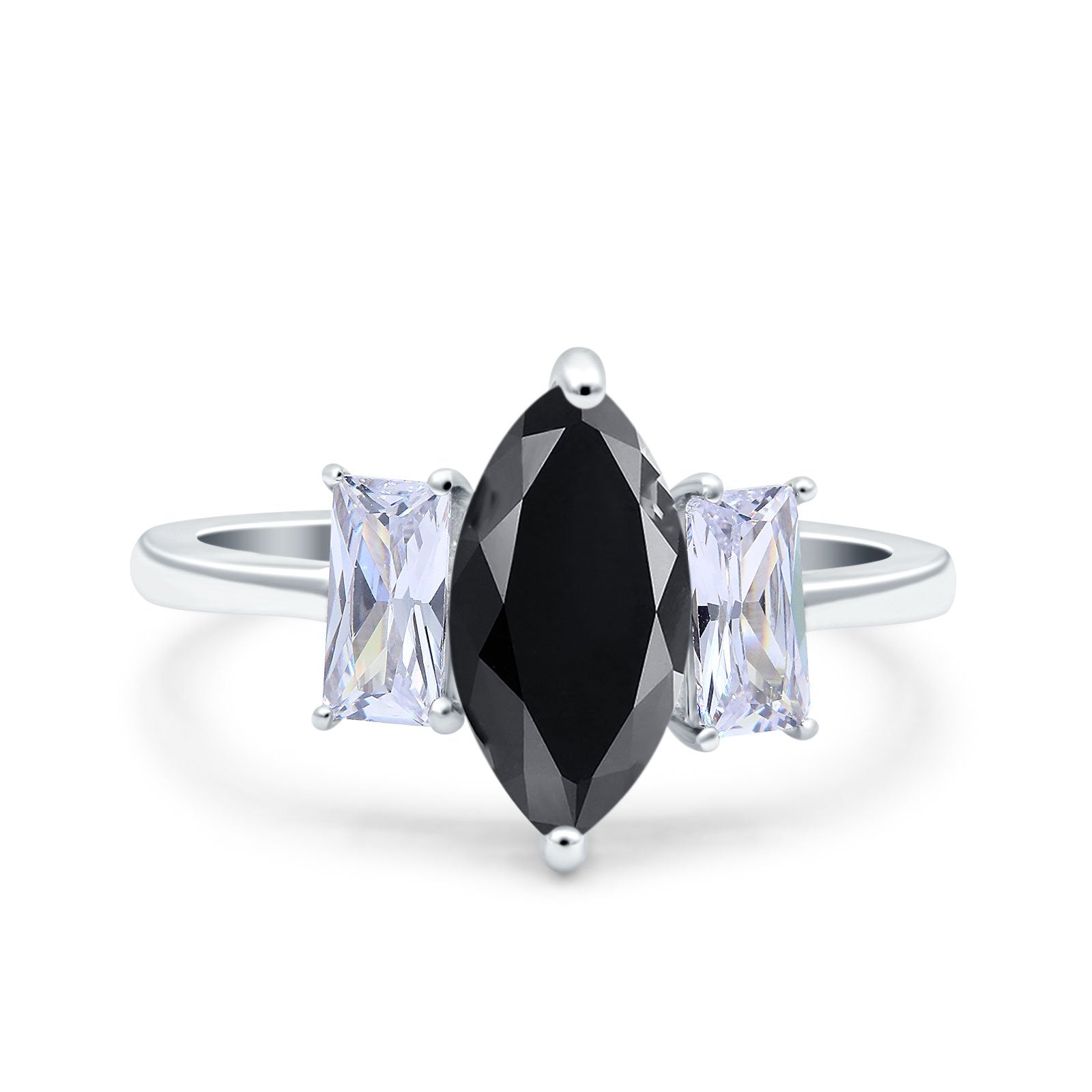 Marquise Art Deco Emerald Cut Wedding Bridal Ring Simulated Cubic Zirconia 925 Sterling Silver