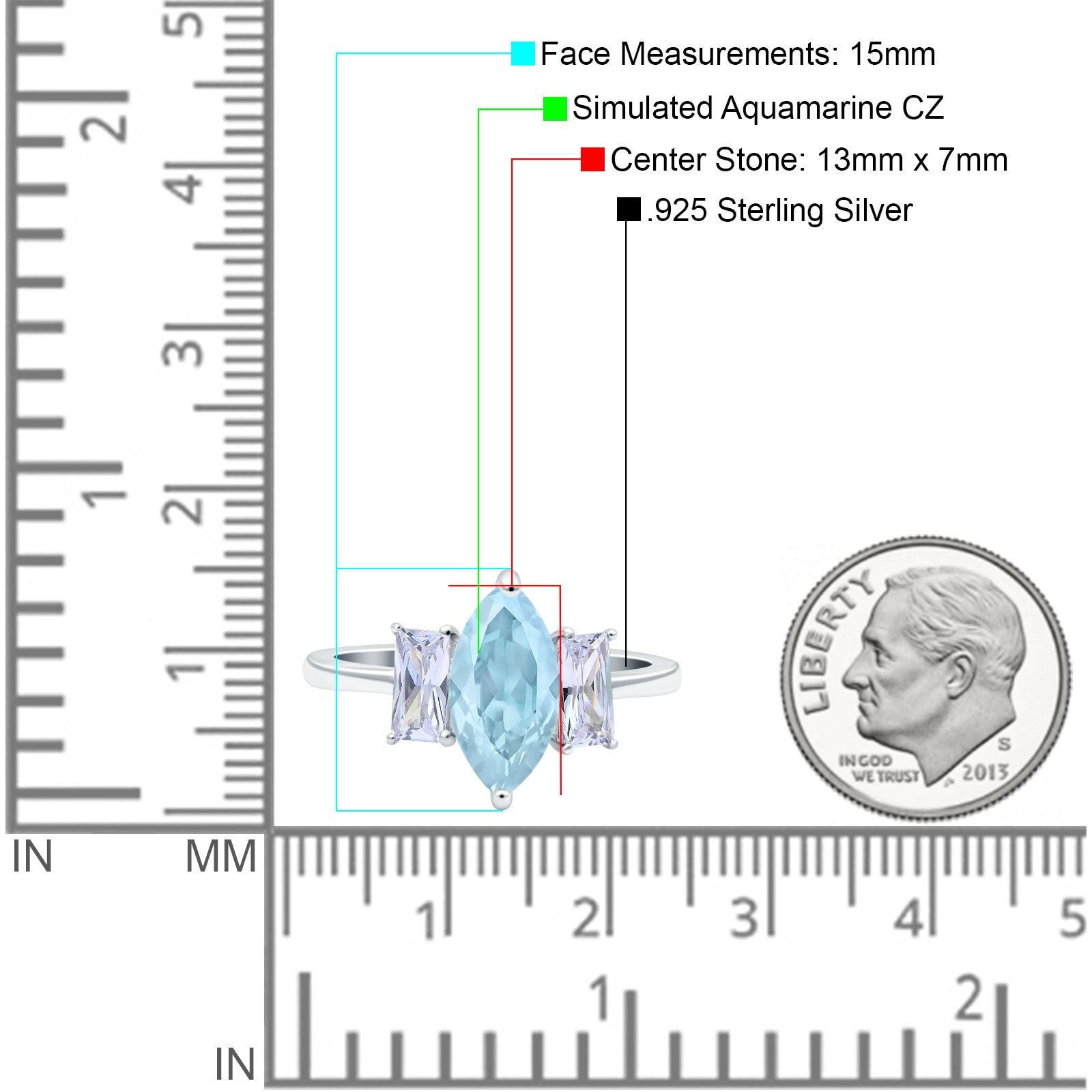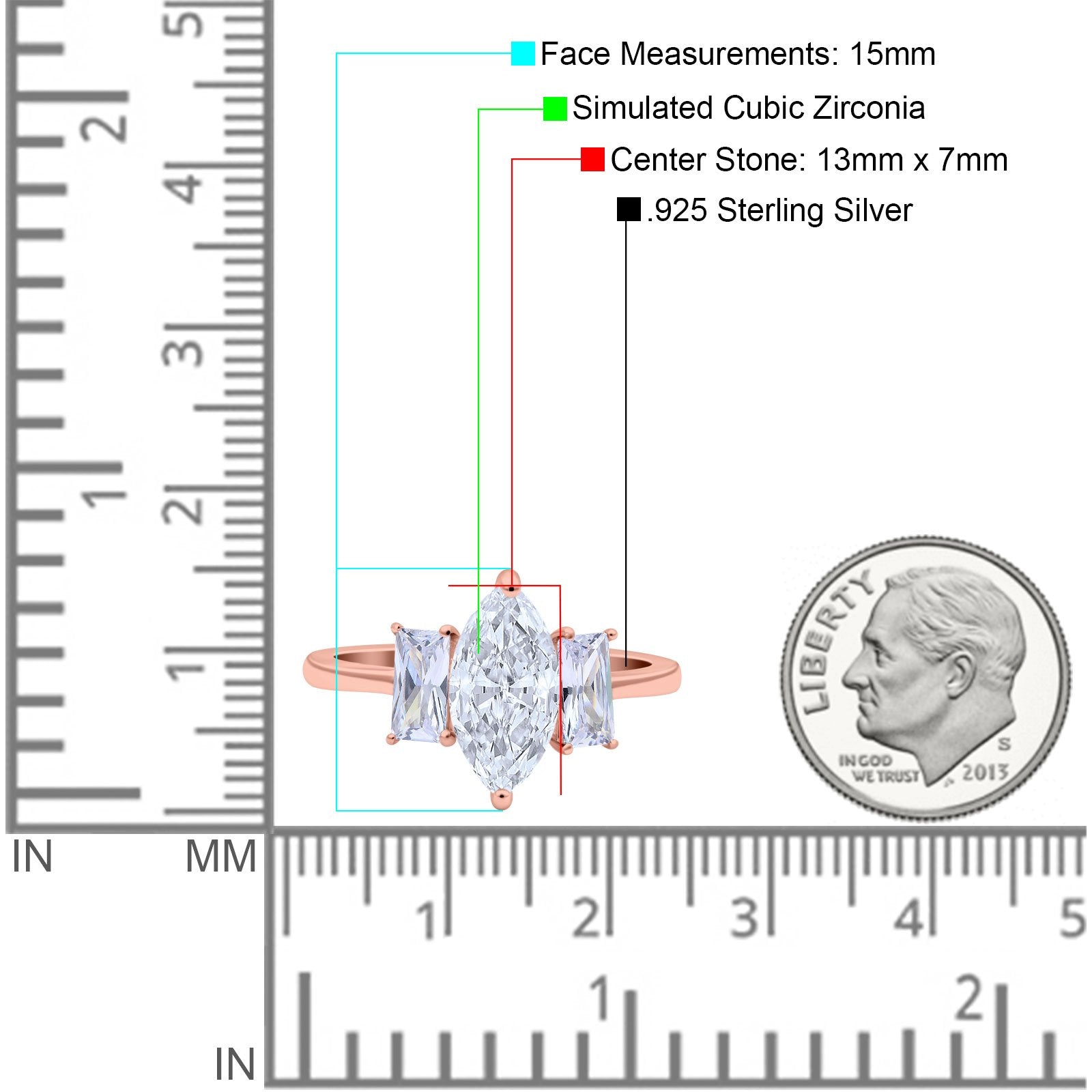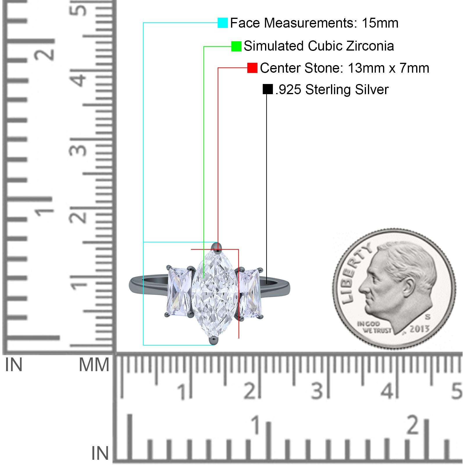 Center Stone Measurements: 13mmx7mm