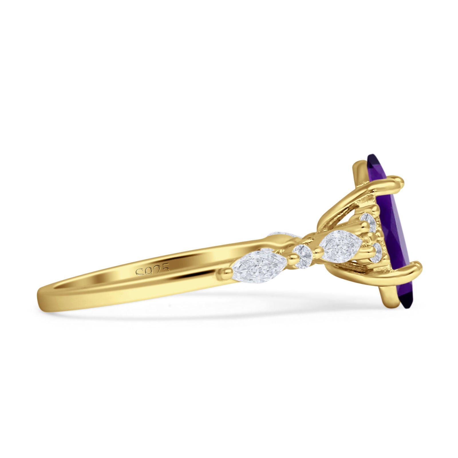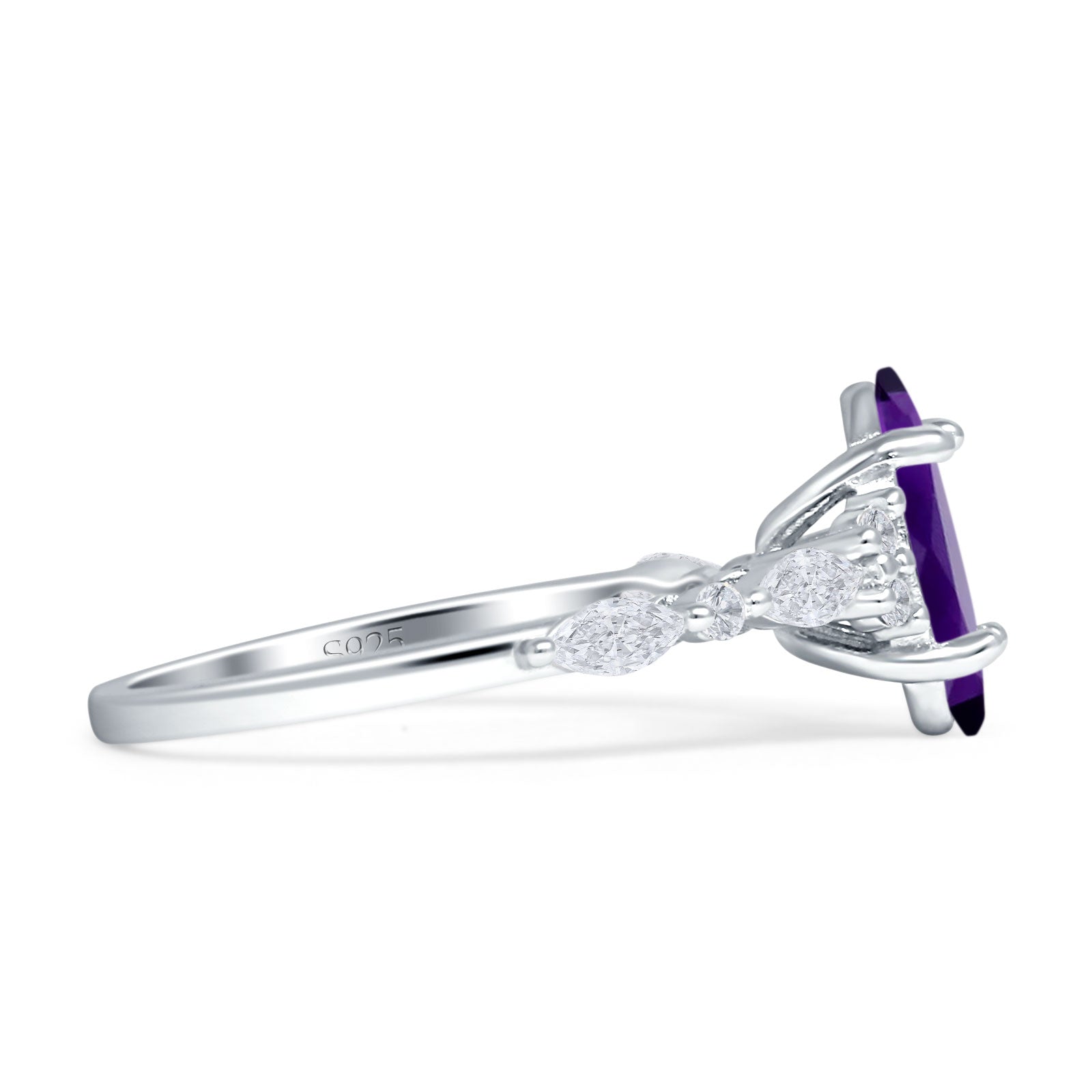 Marquise Natural Amethyst Vintage Style Art Deco Ring 925 Sterling Silver