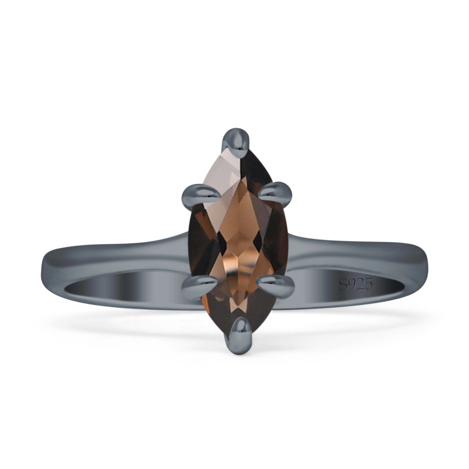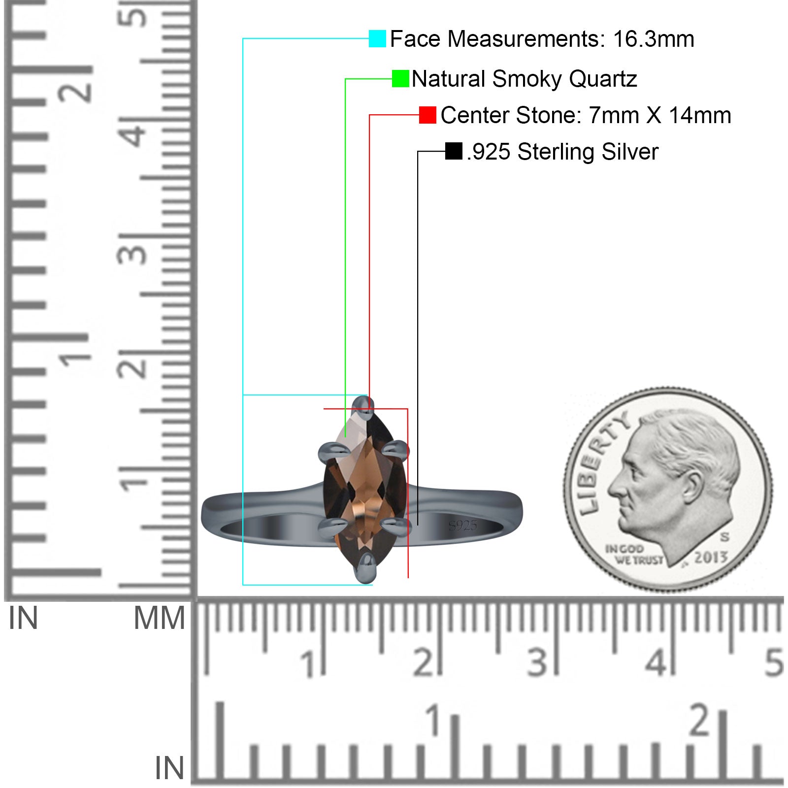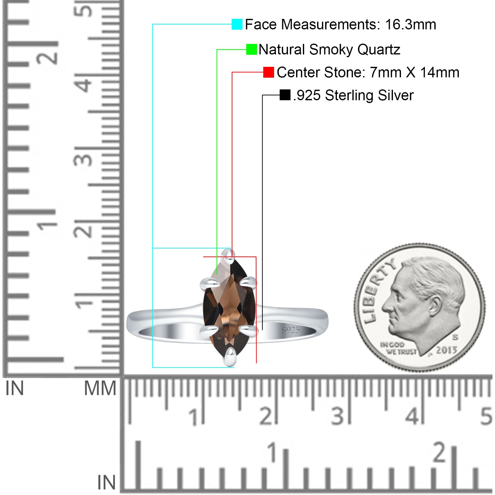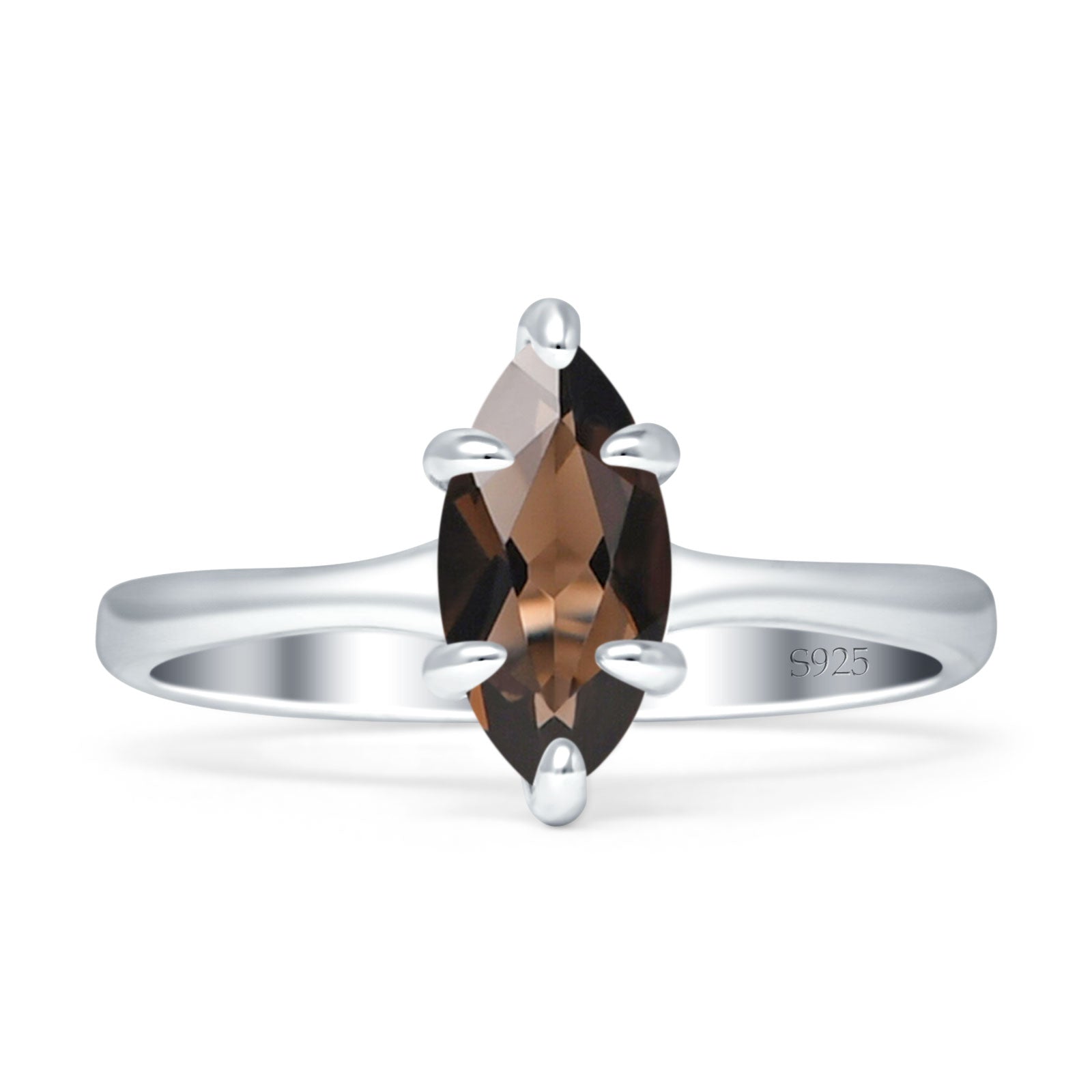 Marquise Solitaire Engagement Ring 7X14 Natural Chocolate Smoky Quartz 925 Sterling Silver