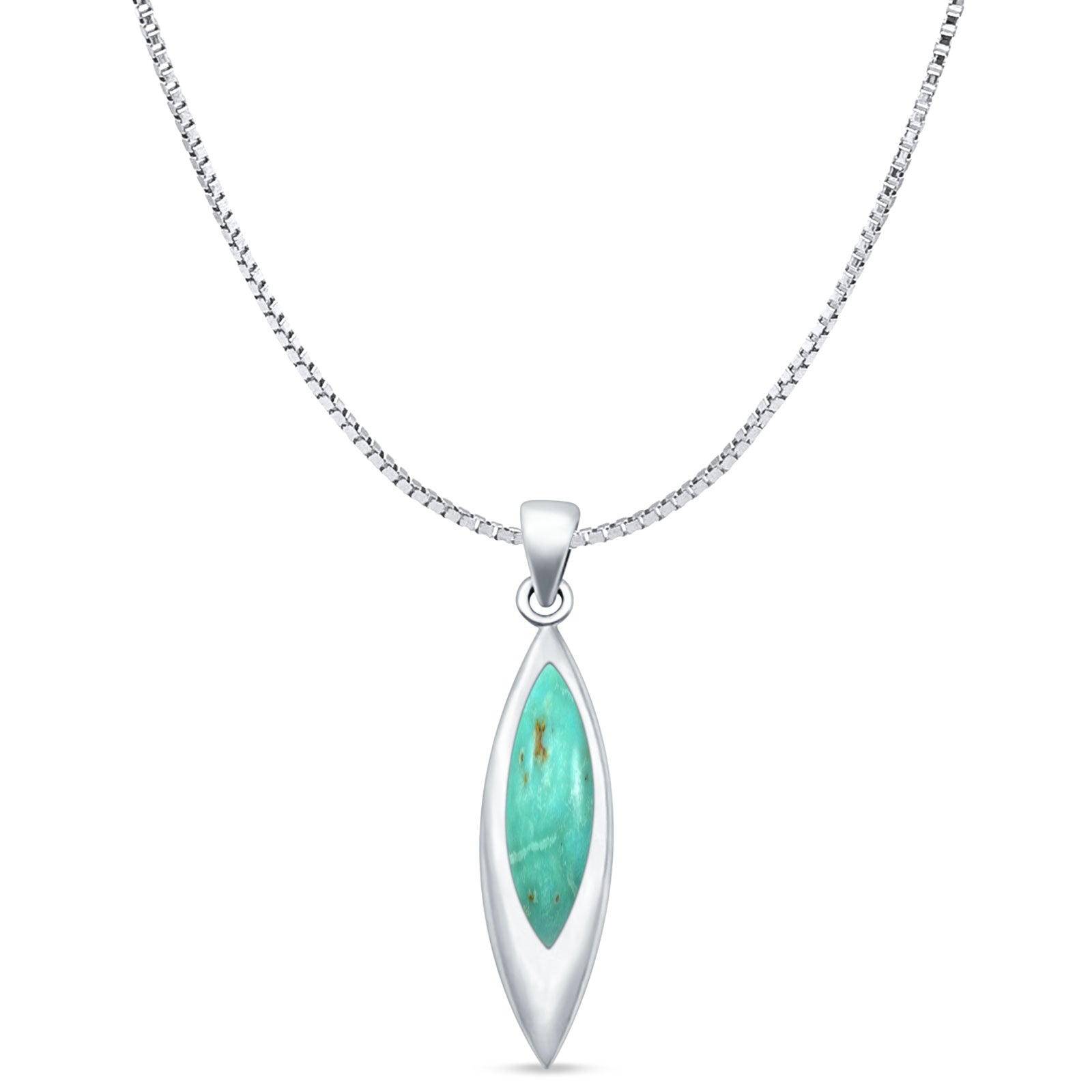 Marquise Turquoise Solitaire Pendant Box Chain Necklace 925 Sterling Silver