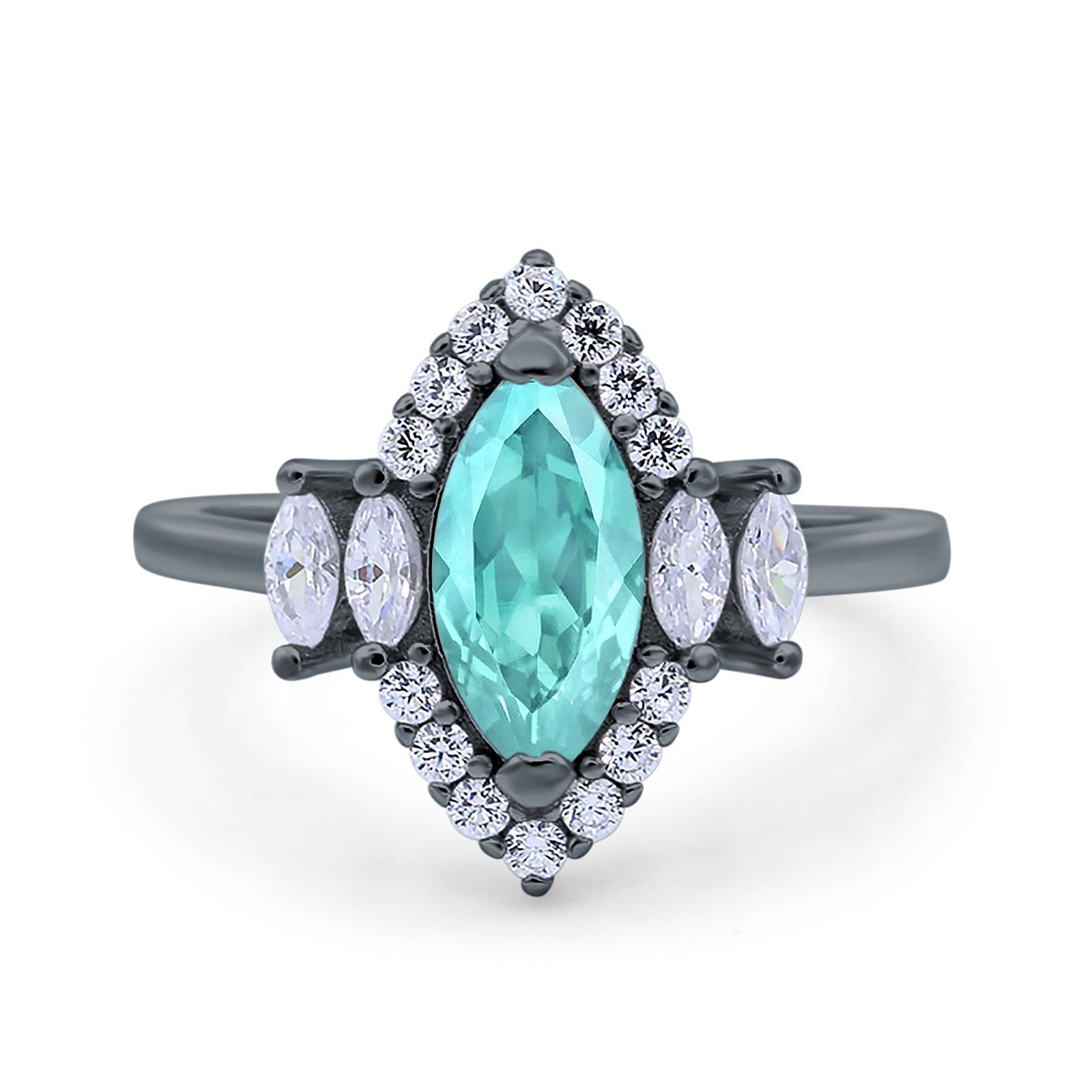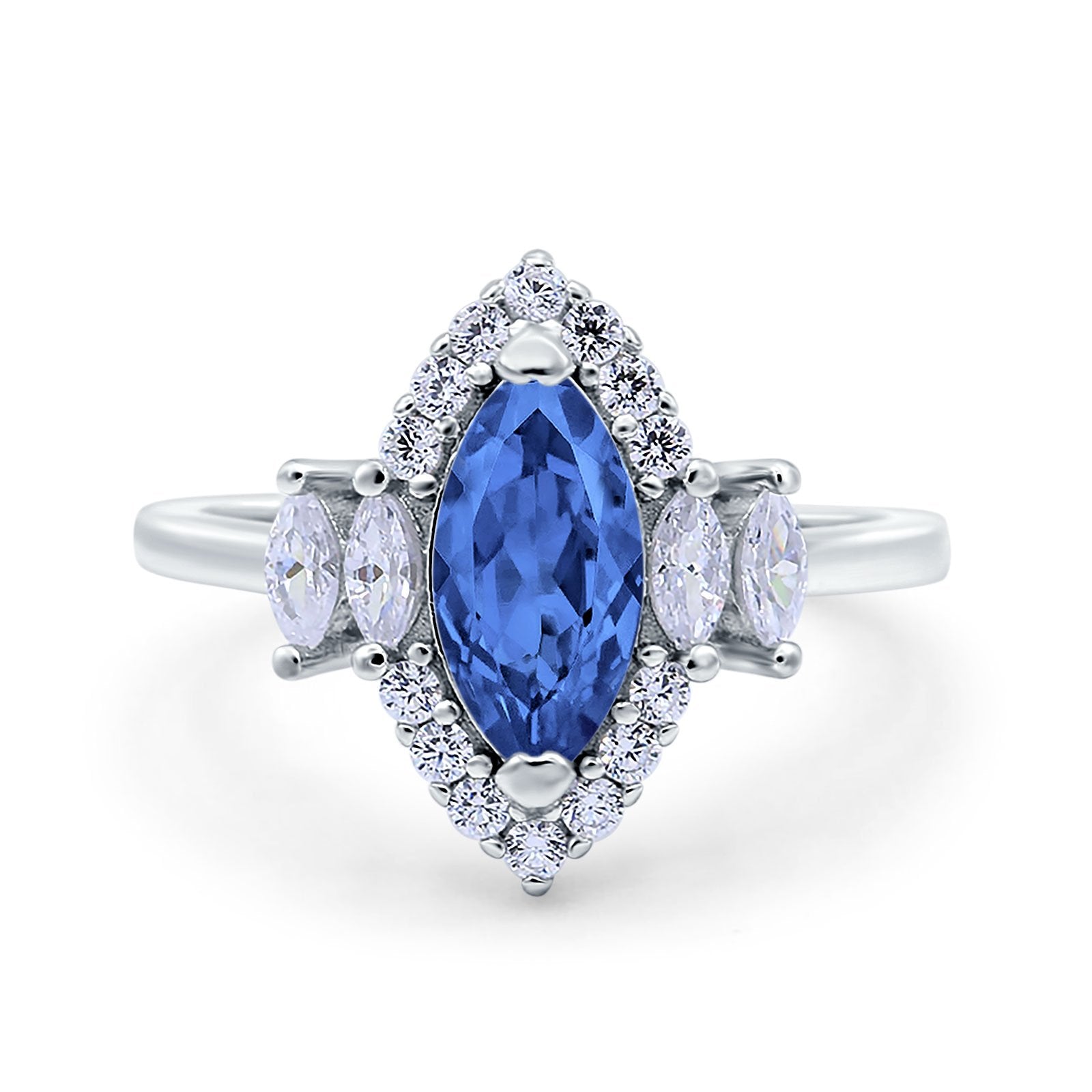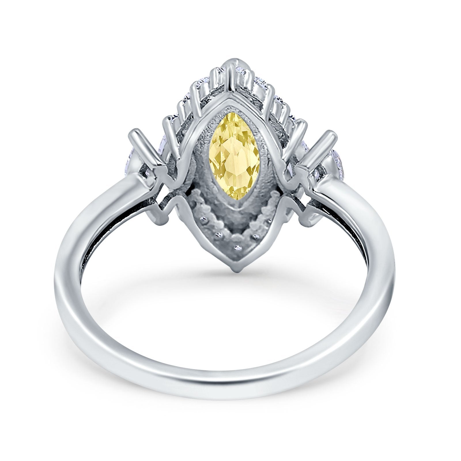 Marquise Vintage Wedding Ring Simulated Cubic Zirconia 925 Sterling Silver