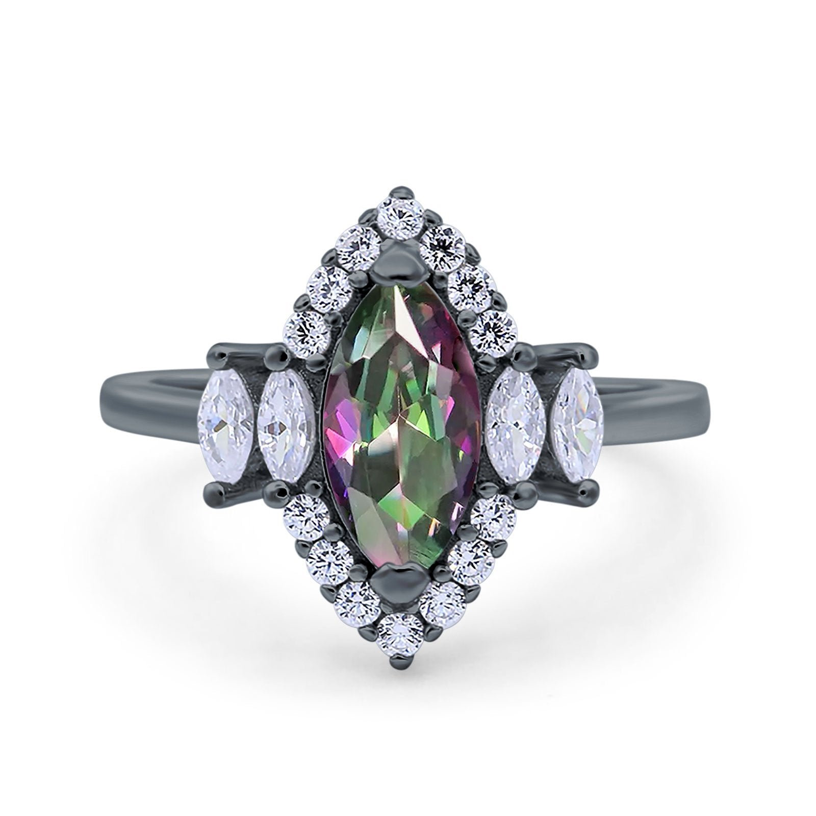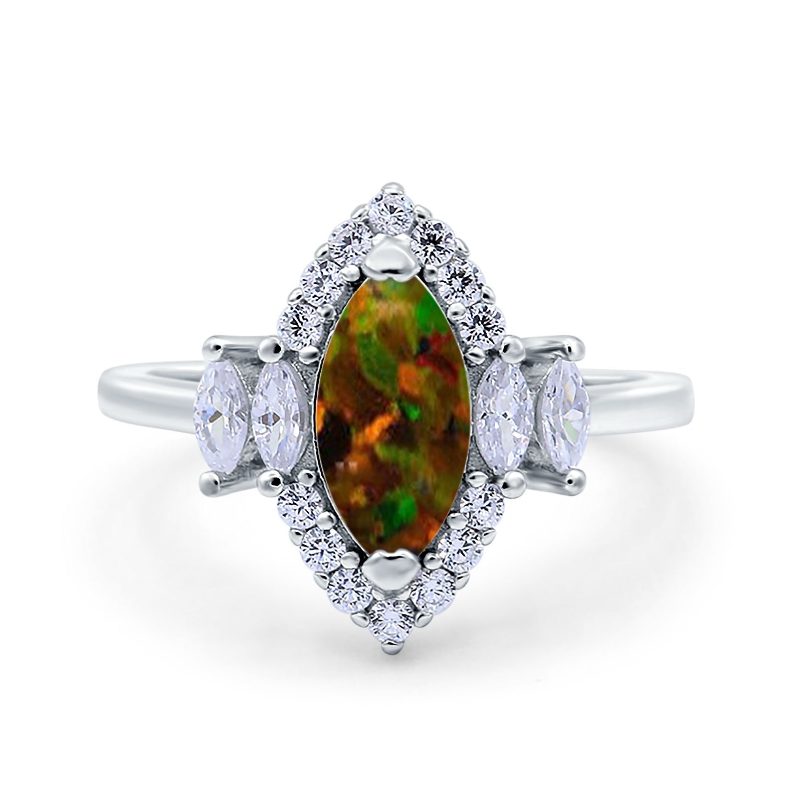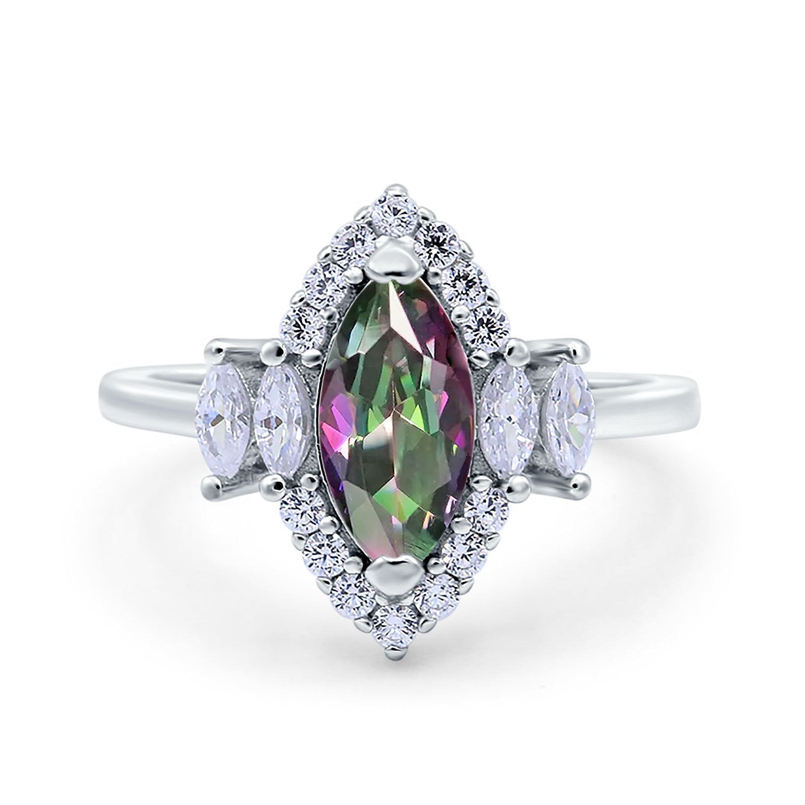 Marquise Vintage Wedding Ring Simulated Cubic Zirconia 925 Sterling Silver