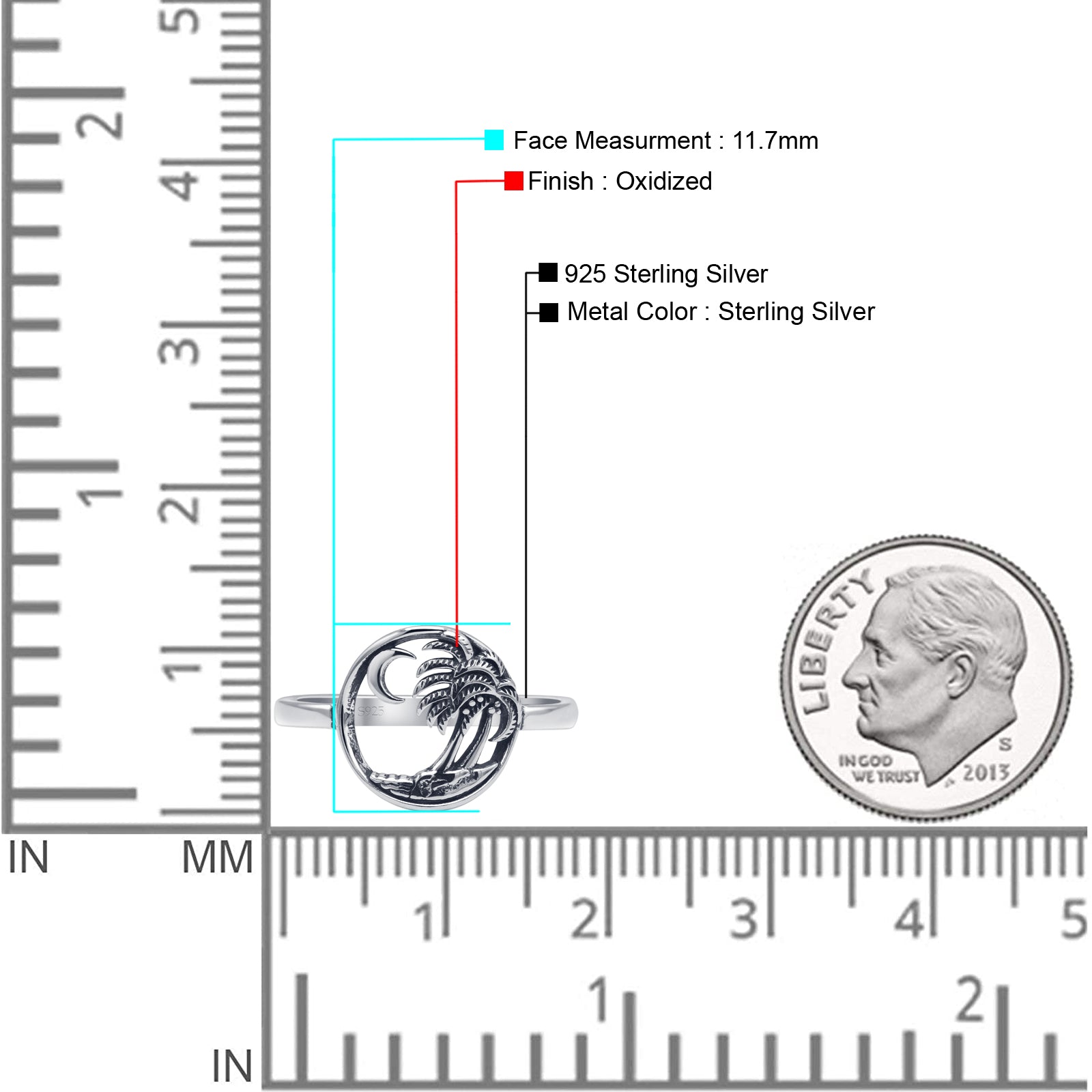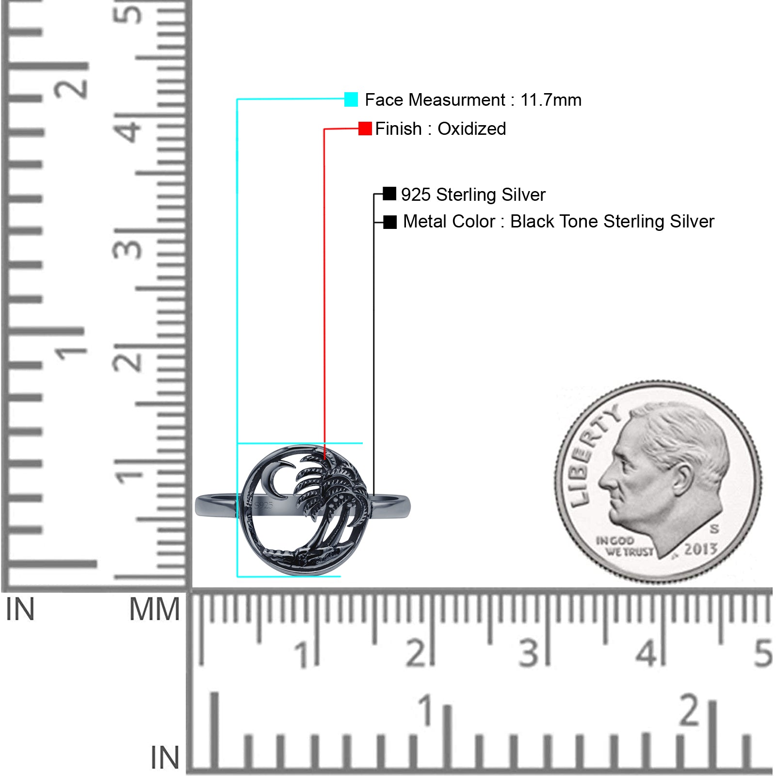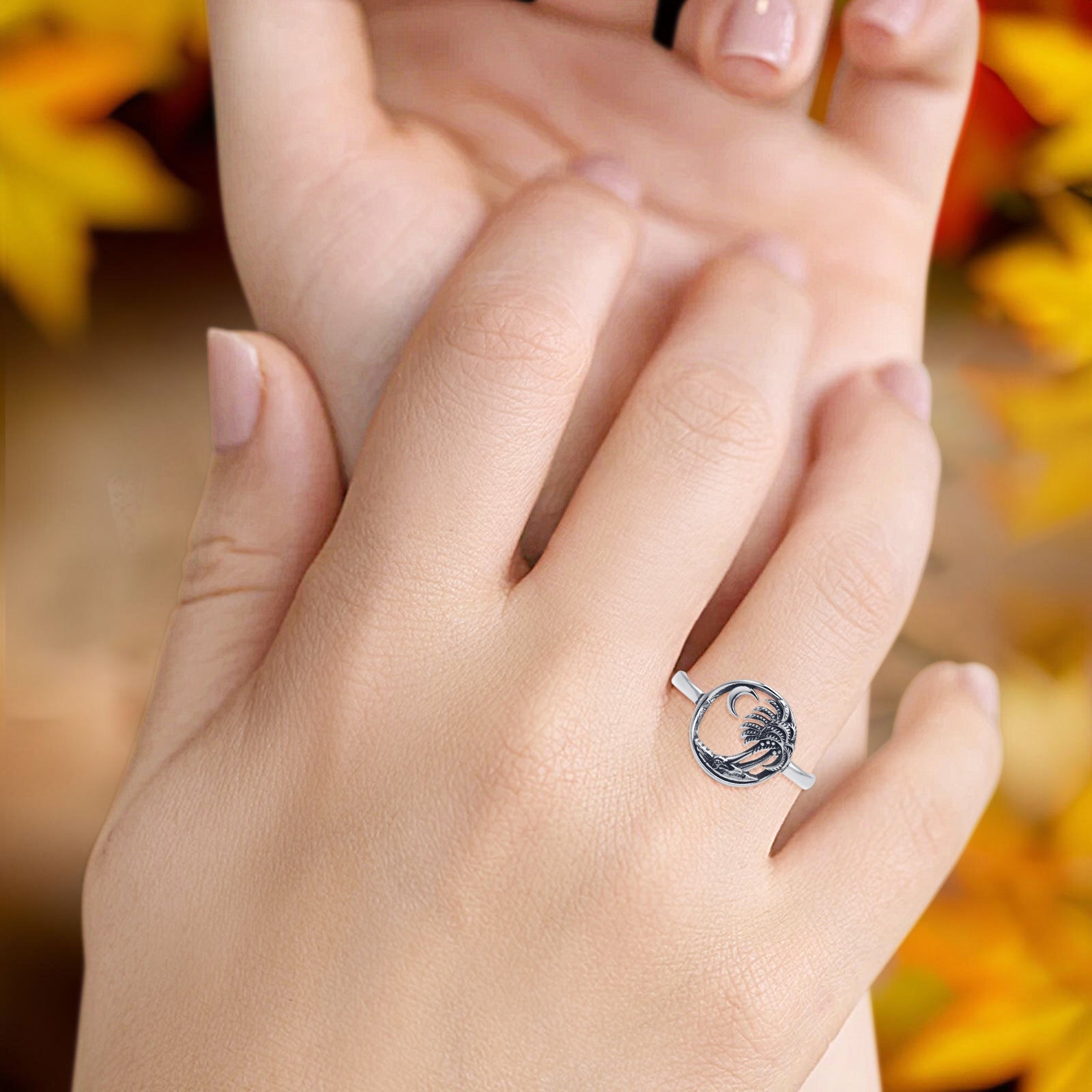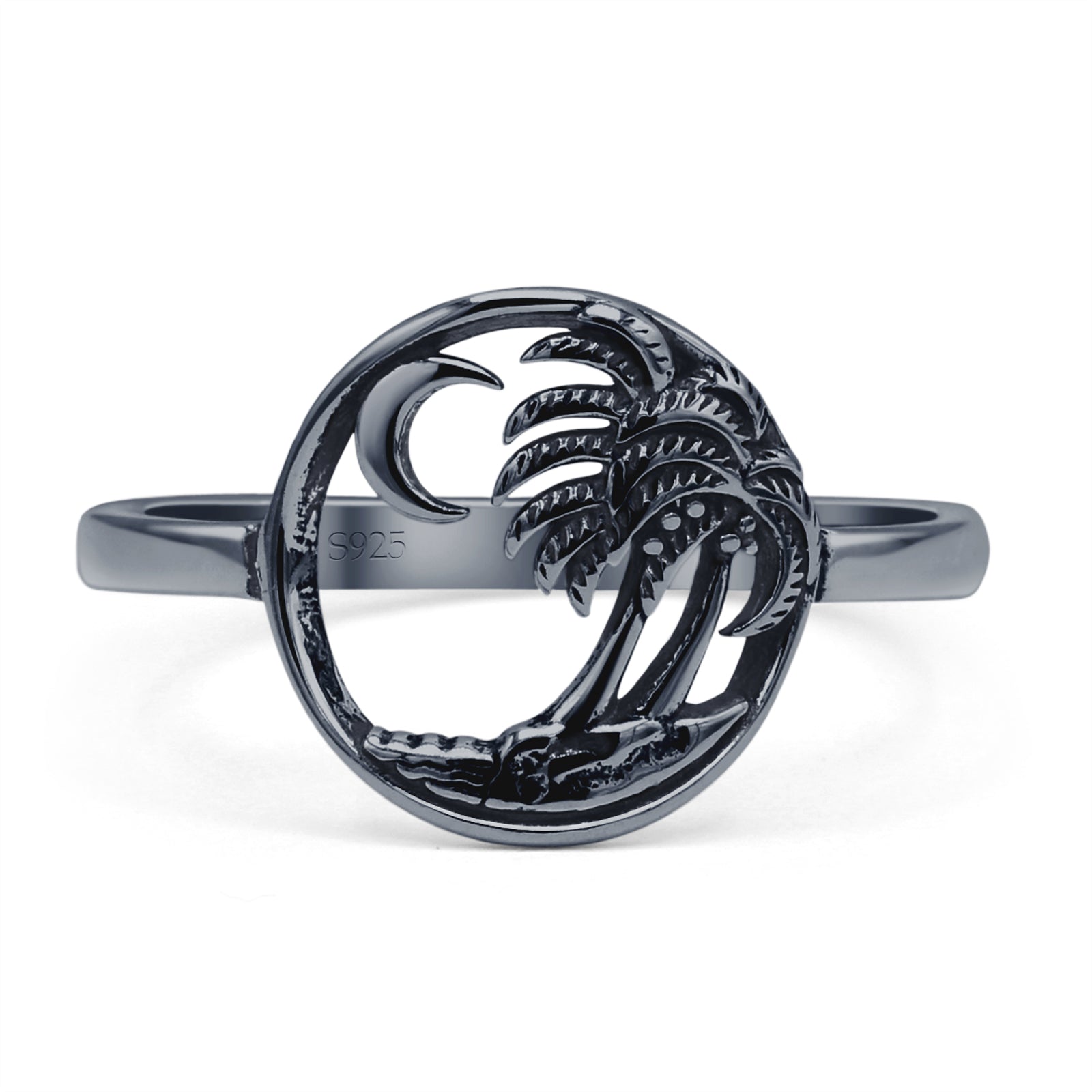 Design: Oxidized Coconut Trees Beach Ring.
