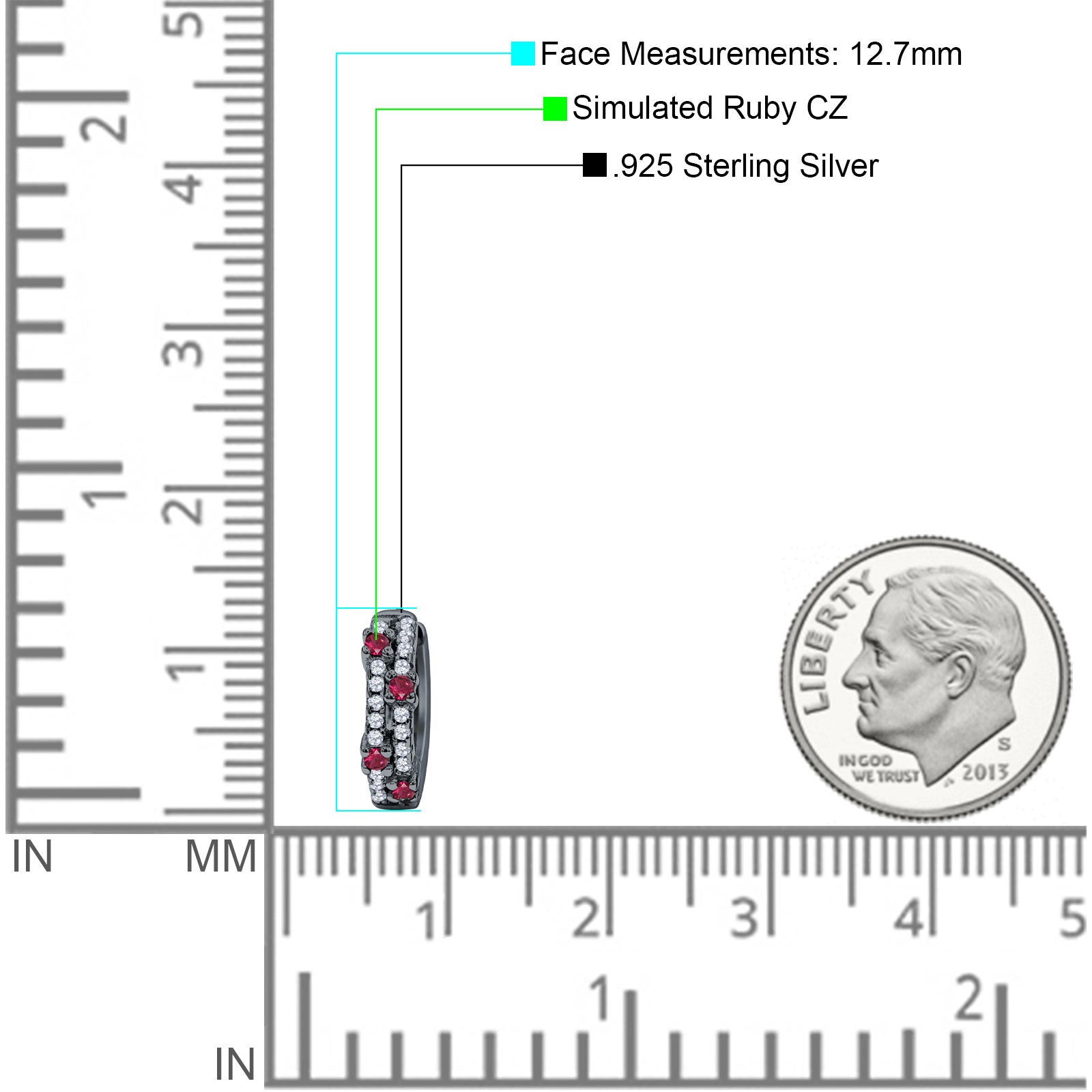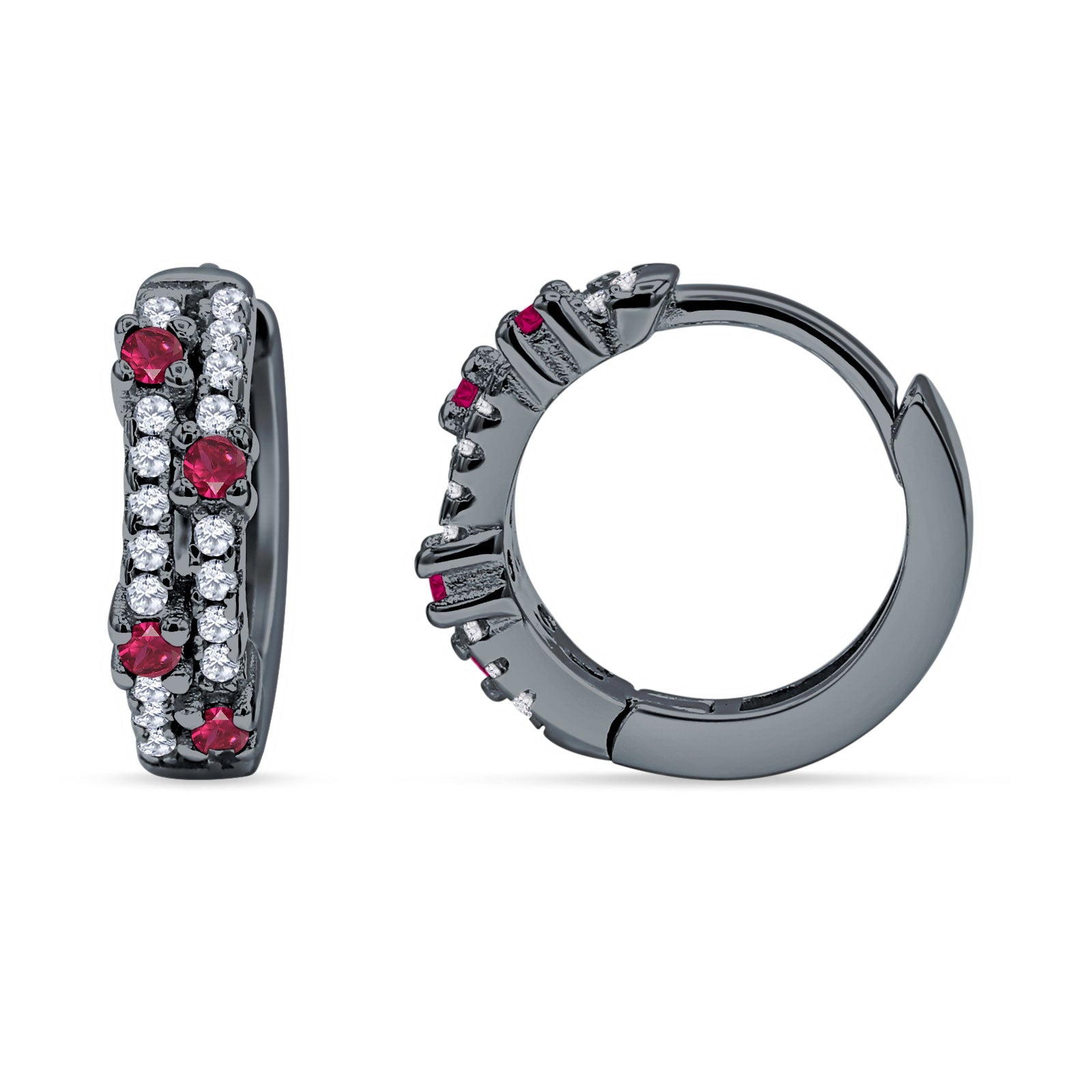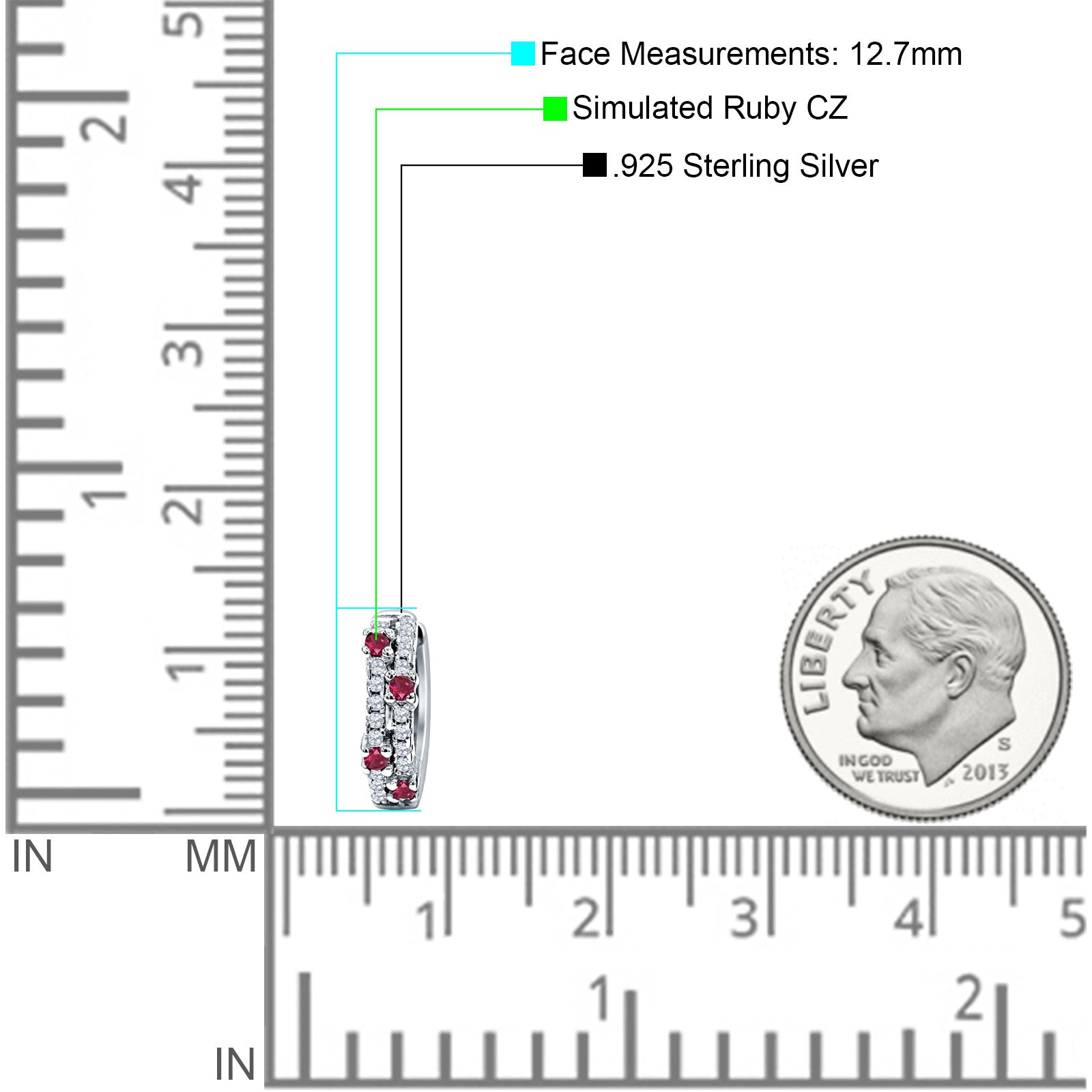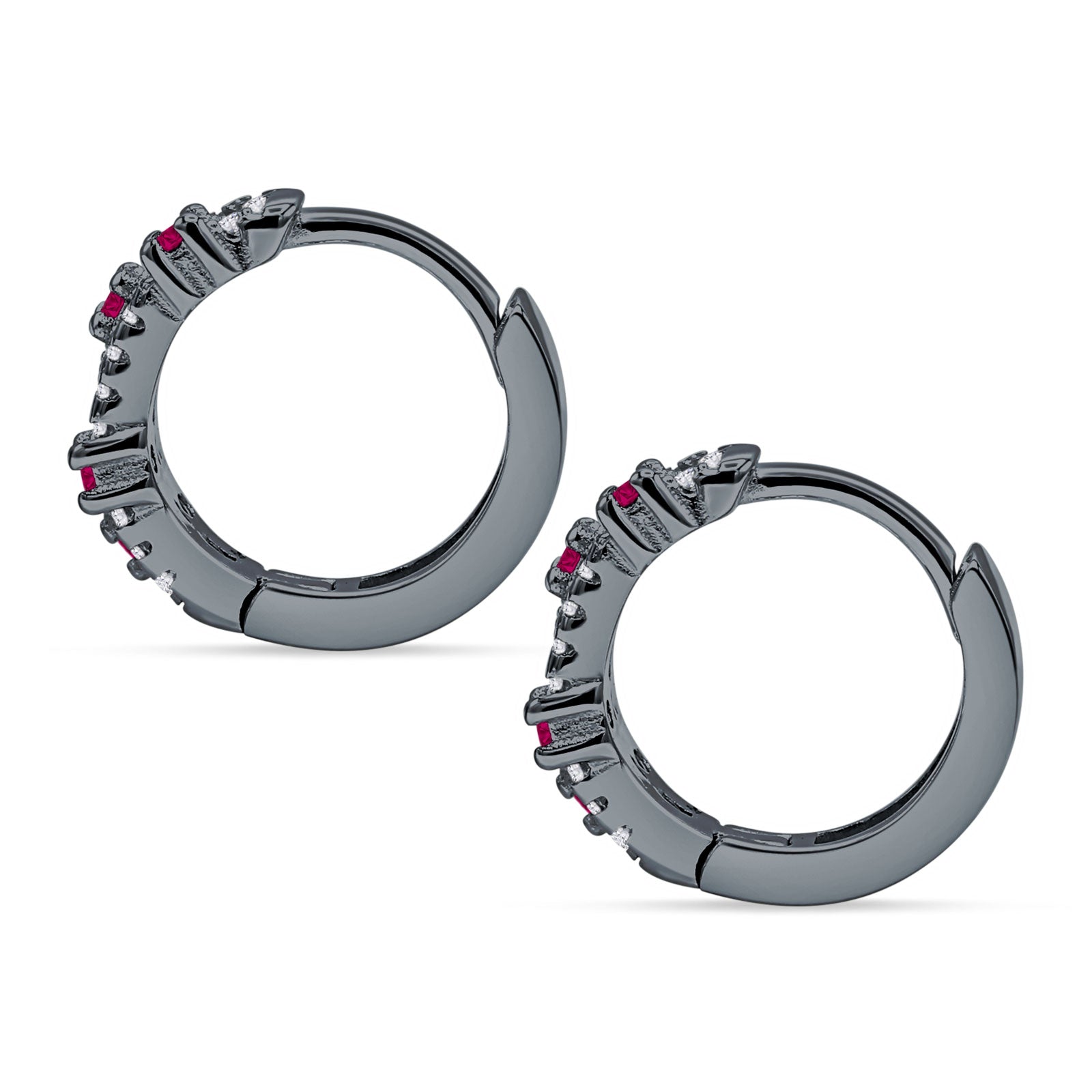Minimalist 12.7mm Round CZ & Ruby CZ Hoop Earrings 925 Sterling Silver