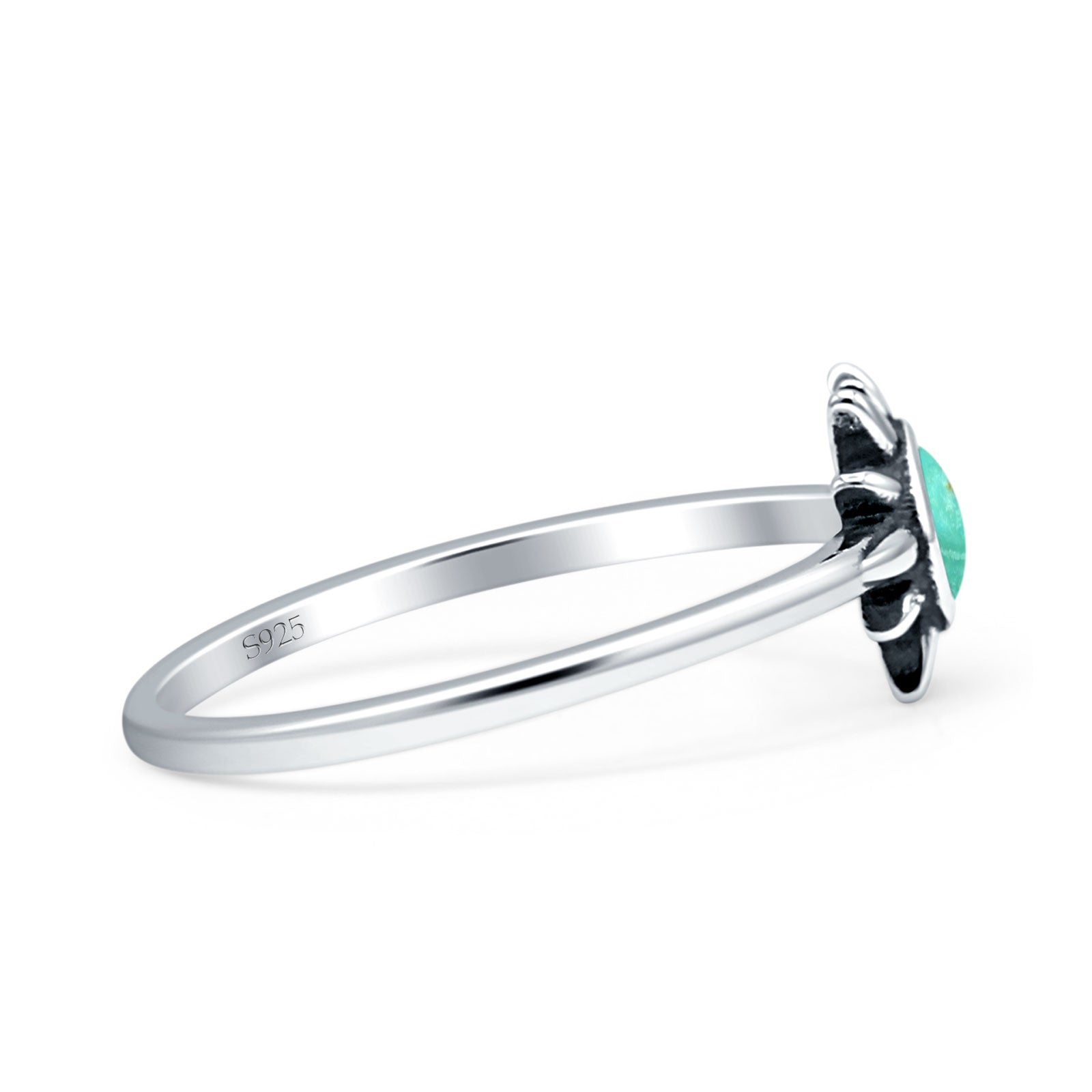 Minimalist 7.4mm Turquoise Ring 925 Sterling Silver