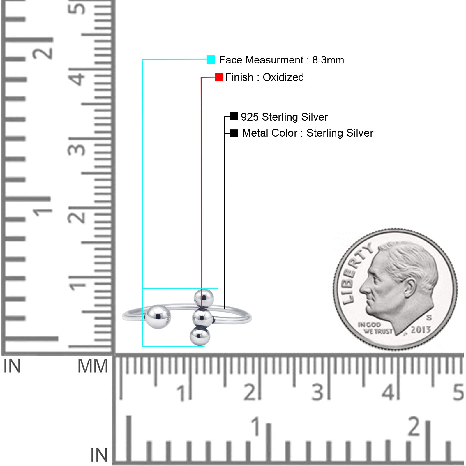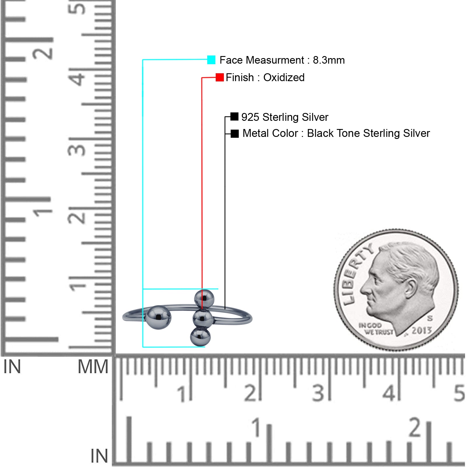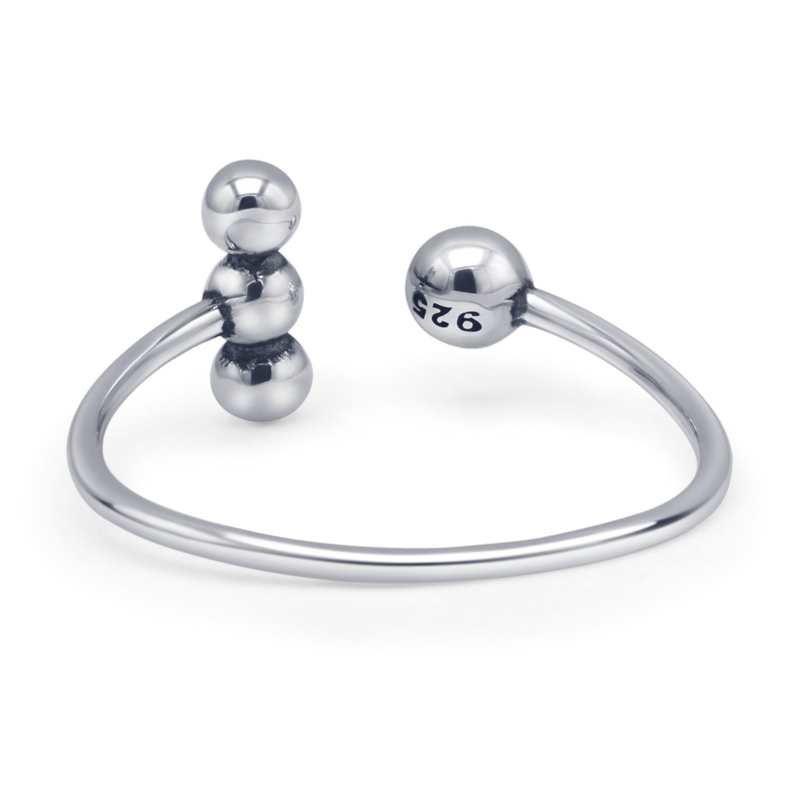 Minimalist 8.3mm Beaded Open Midi Ring Oxidized 925 Sterling Silver