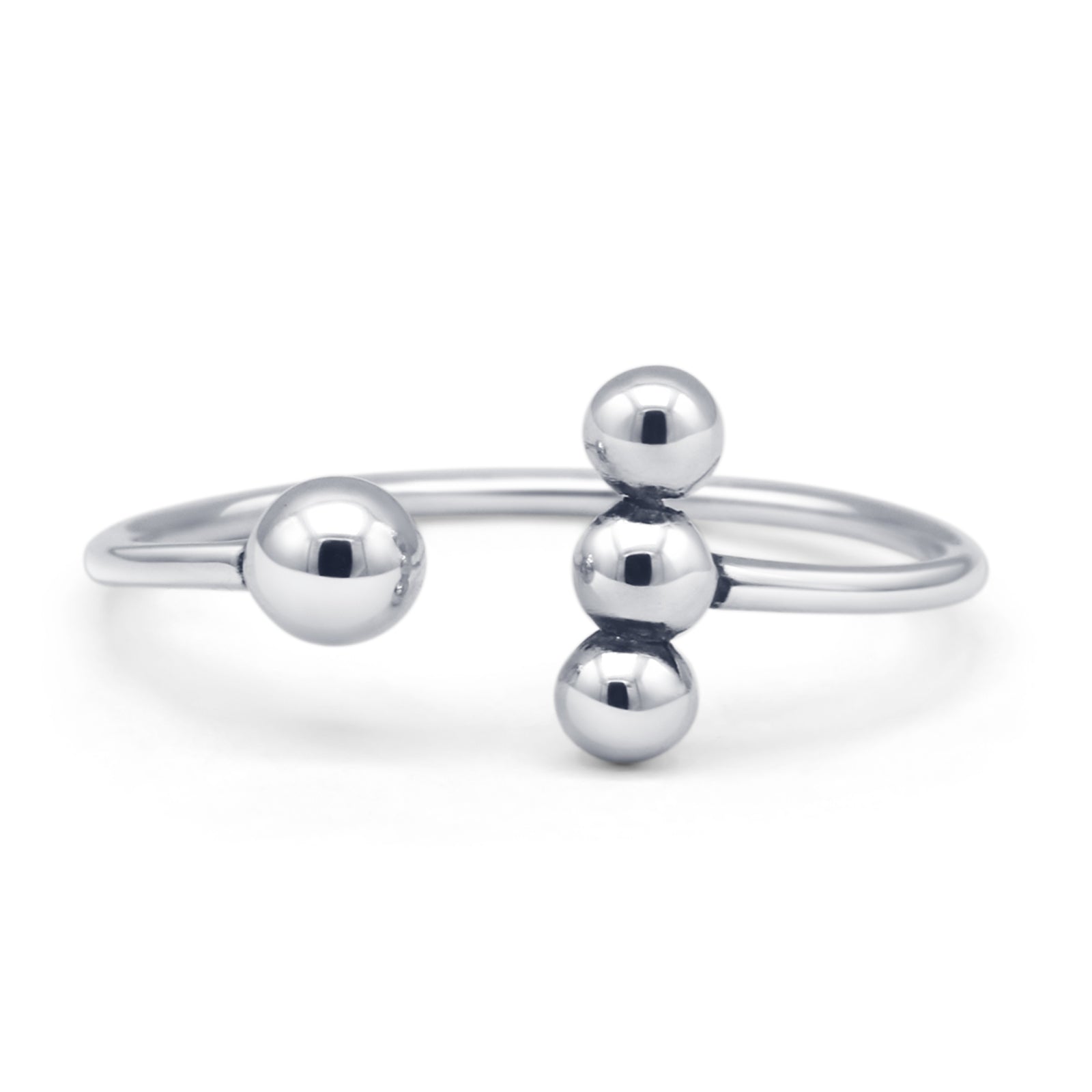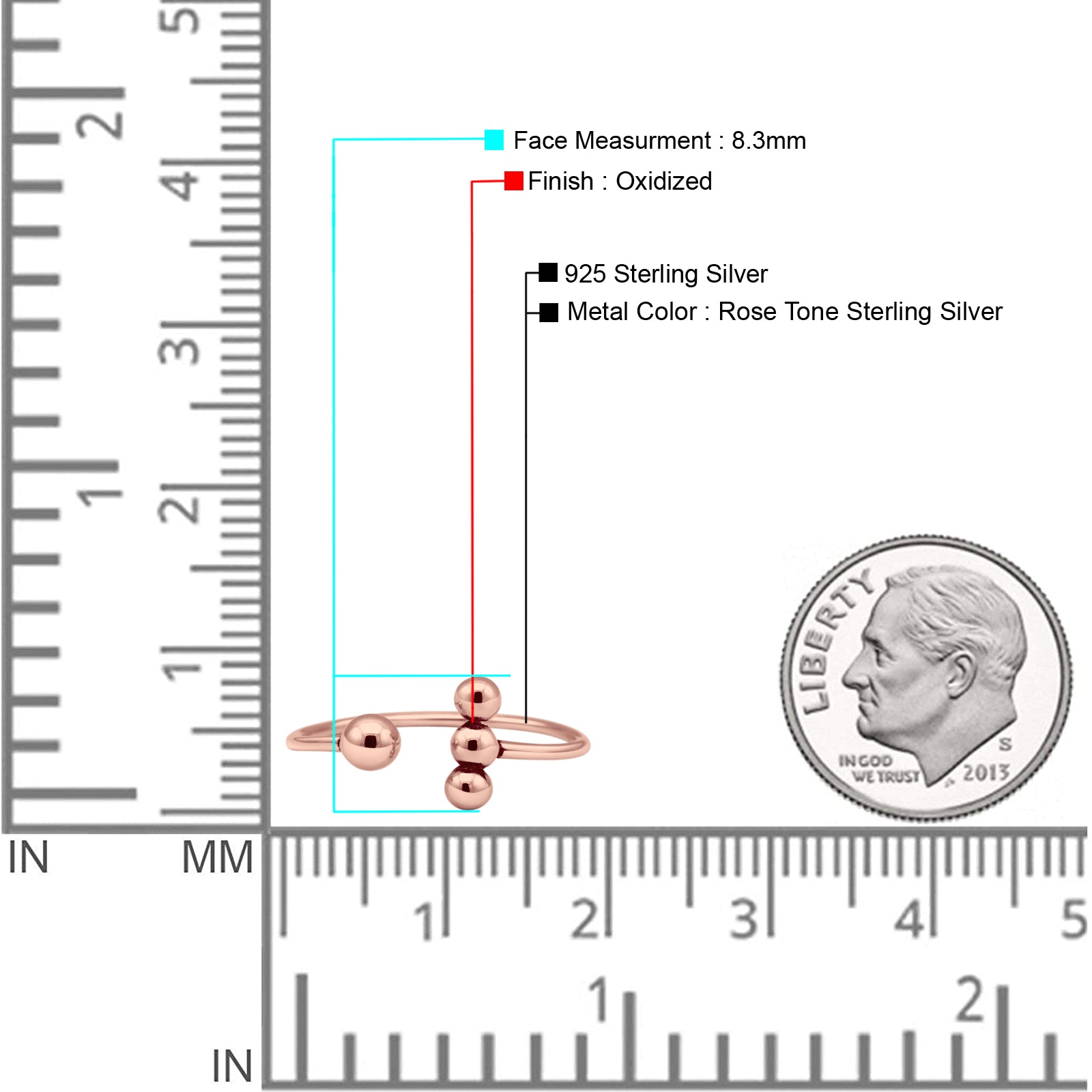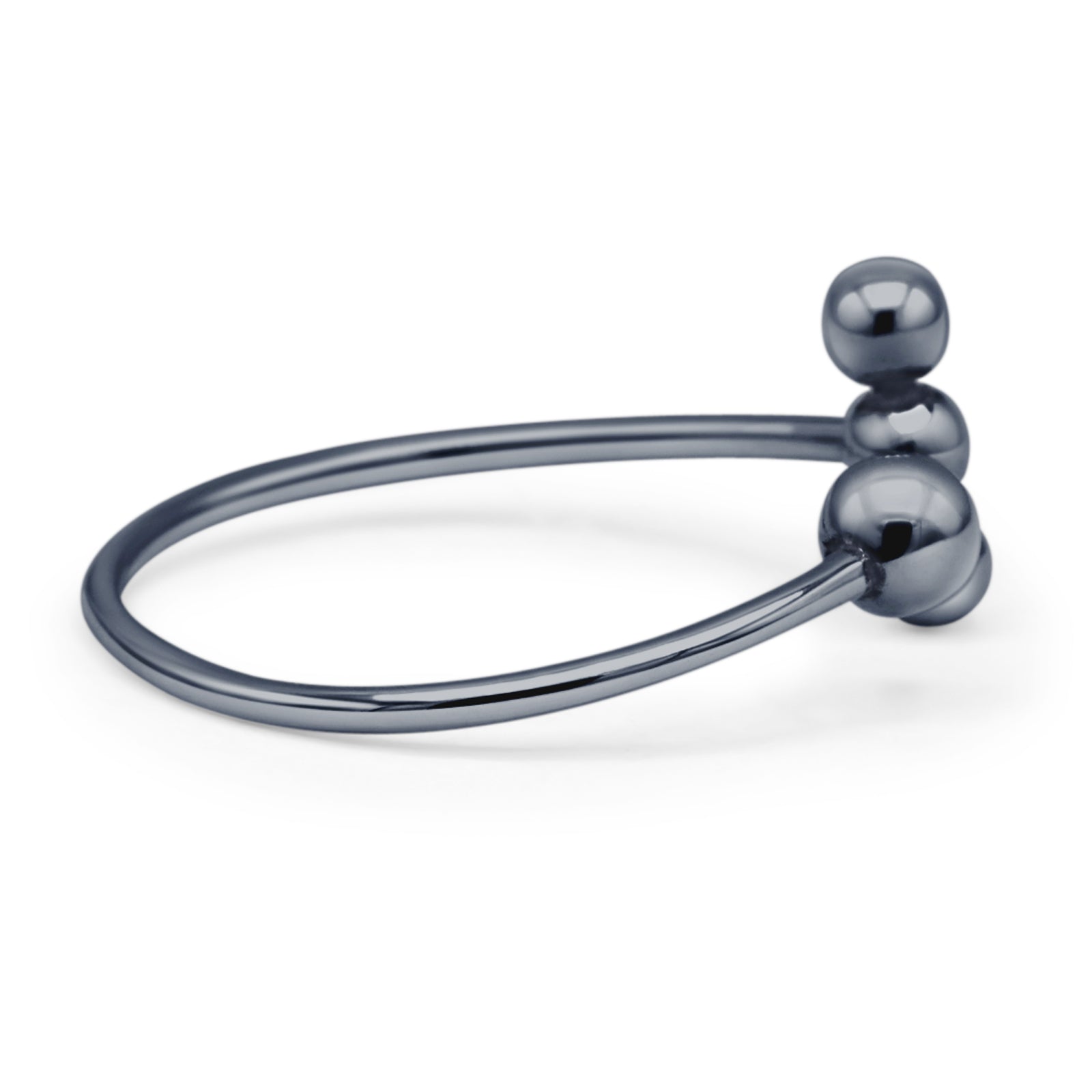 Minimalist 8.3mm Beaded Open Midi Ring Oxidized 925 Sterling Silver