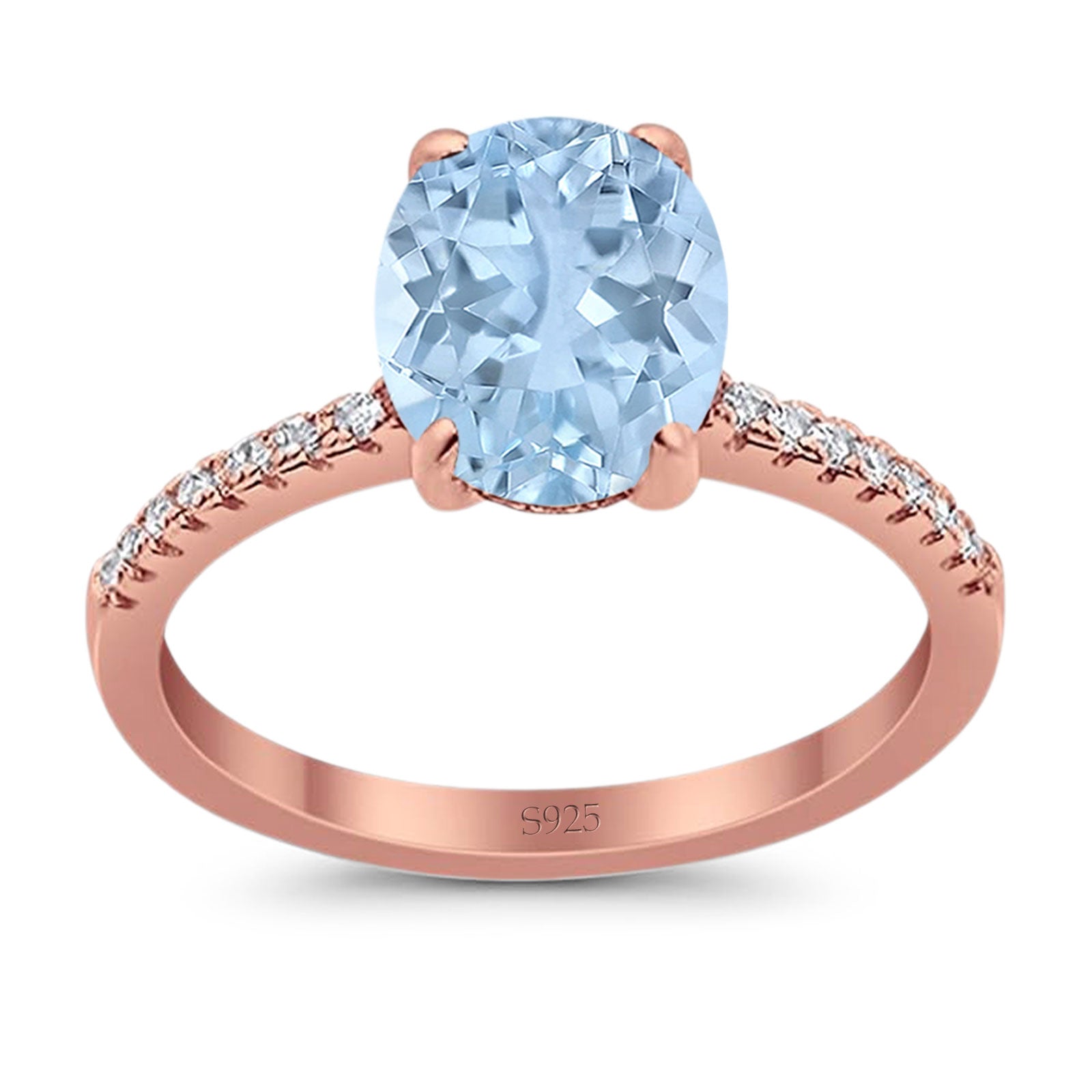 CZ & Blue Sapphire CZ Rose Tone Silver