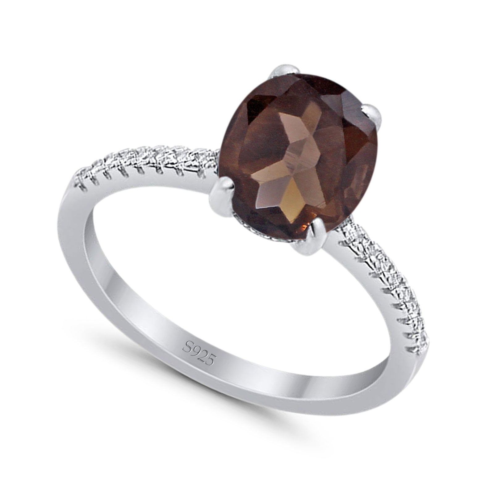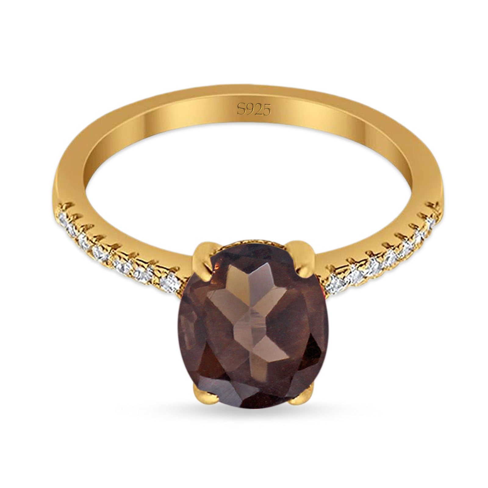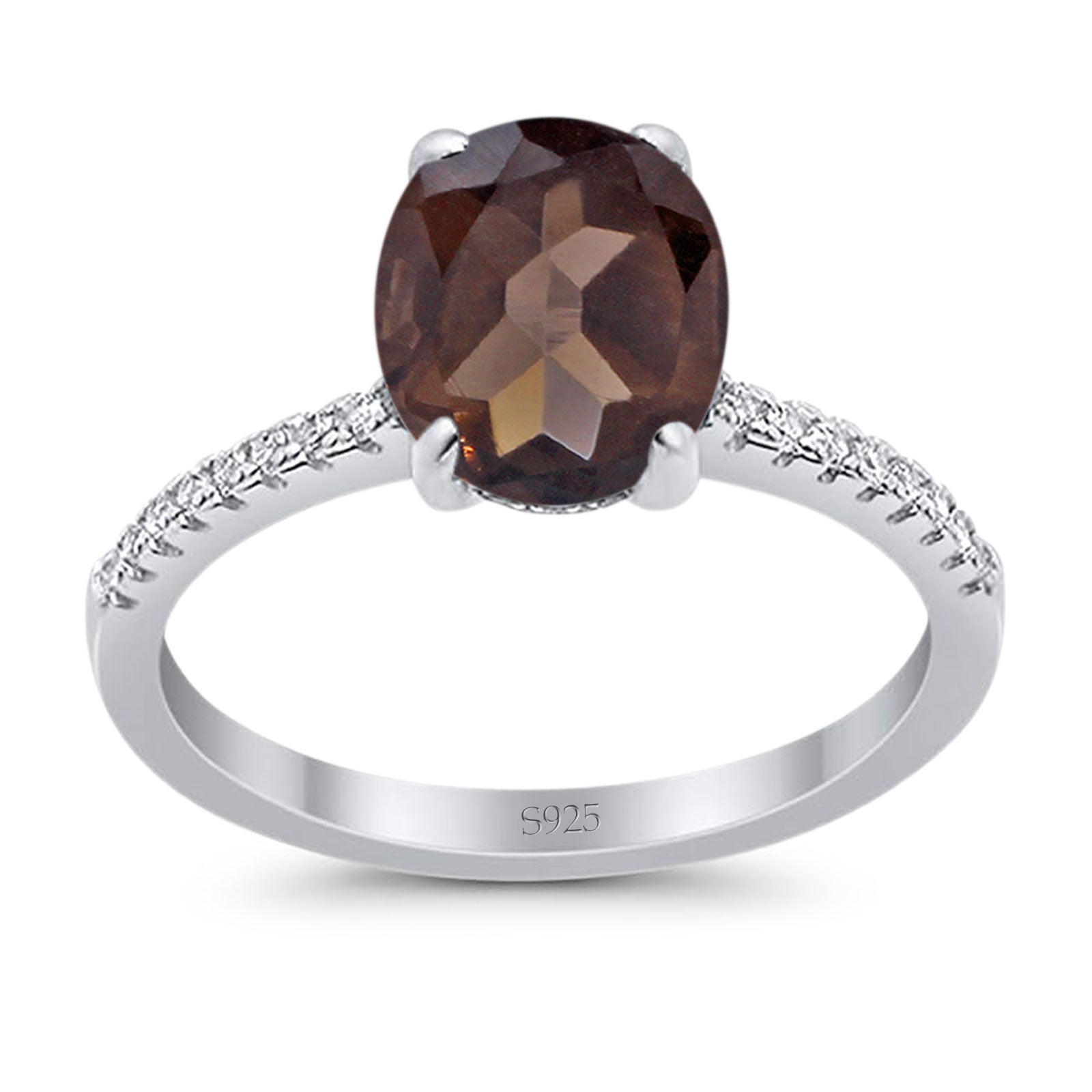 Minimalist Oval Natural Chocolate Smoky Quartz Engagement Ring 925 Sterling Silver