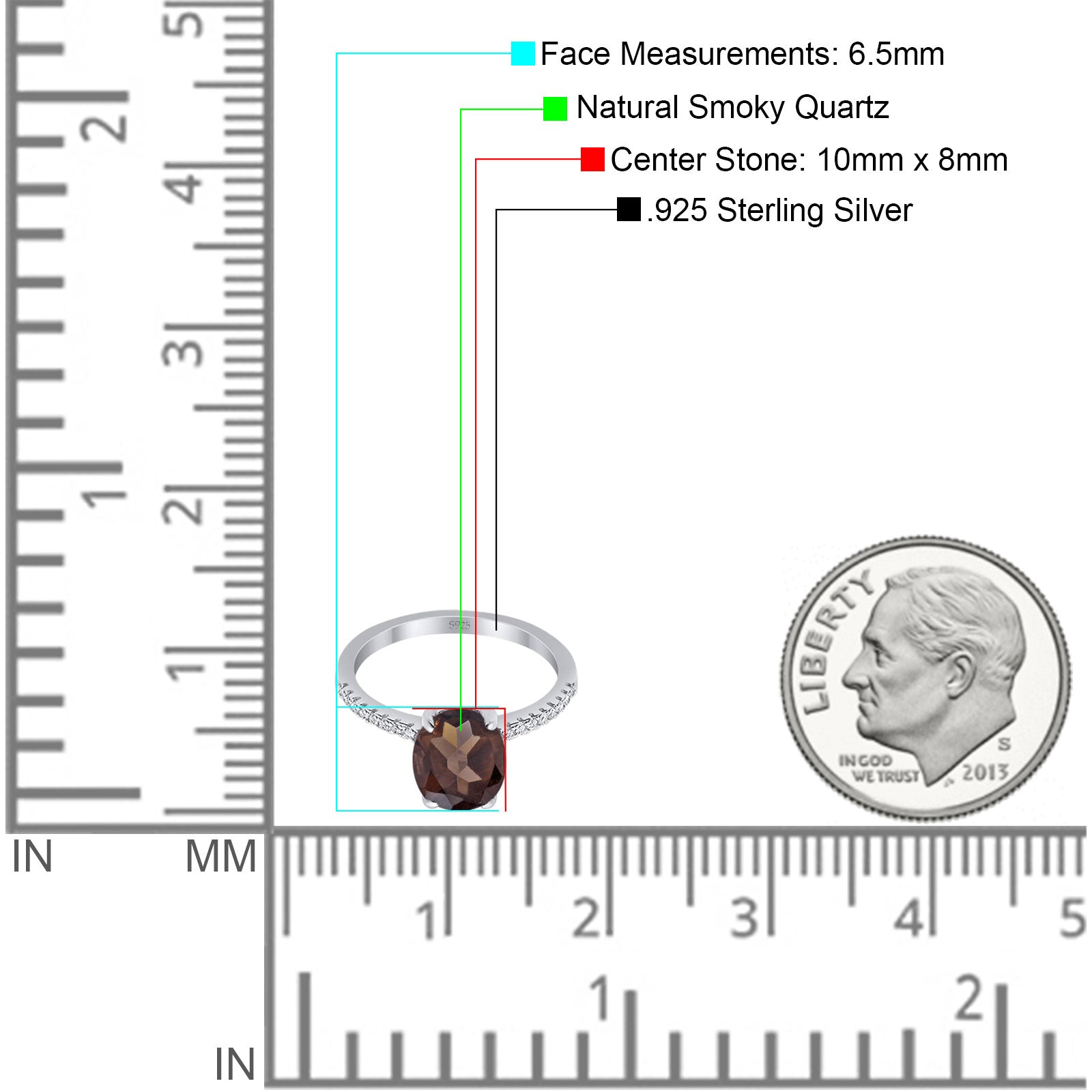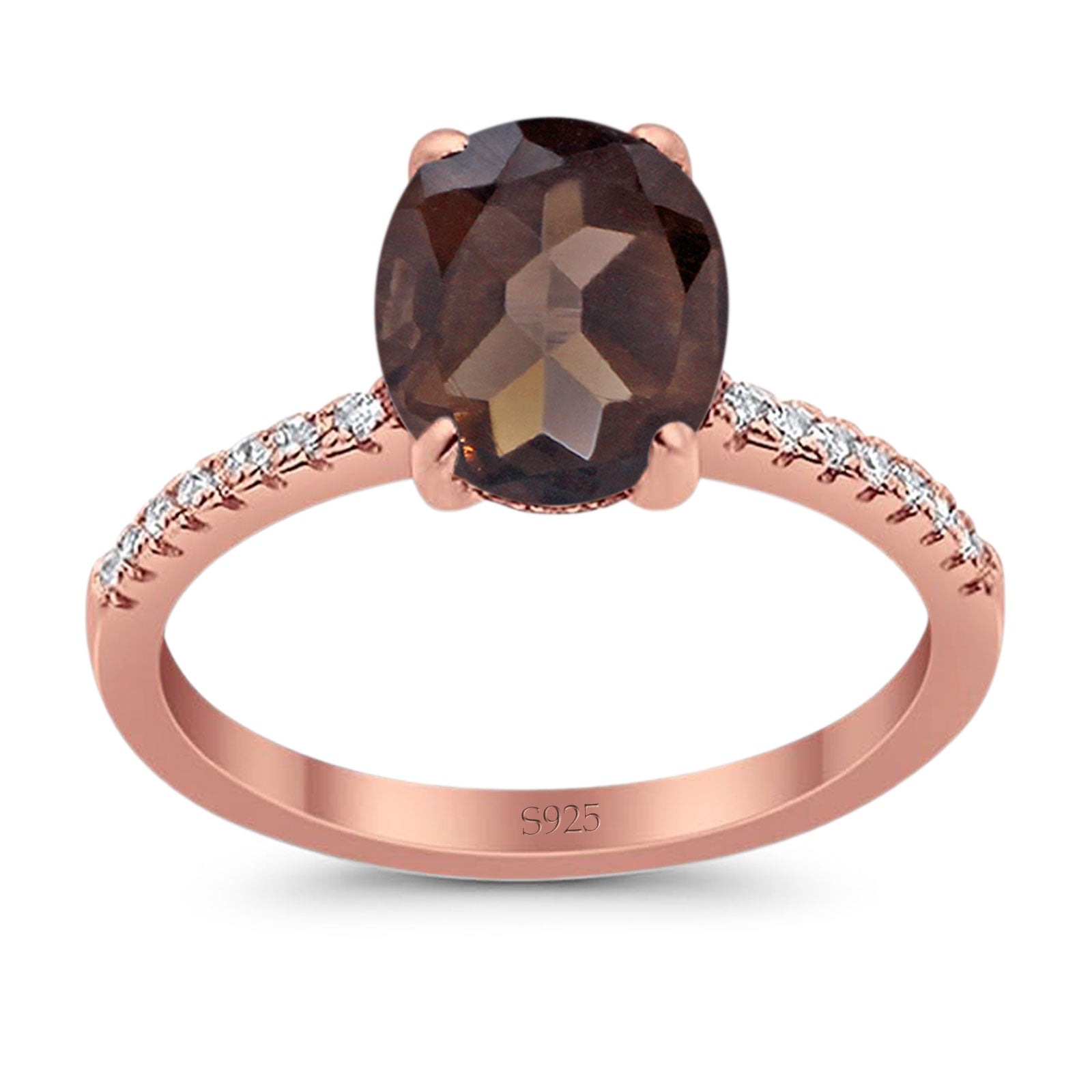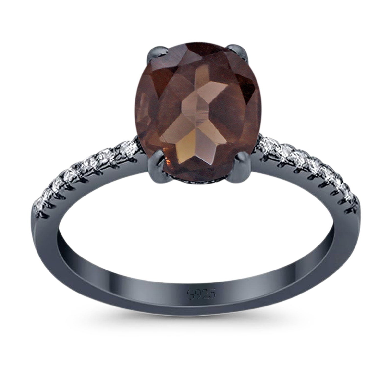 Minimalist Oval Natural Chocolate Smoky Quartz Engagement Ring 925 Sterling Silver
