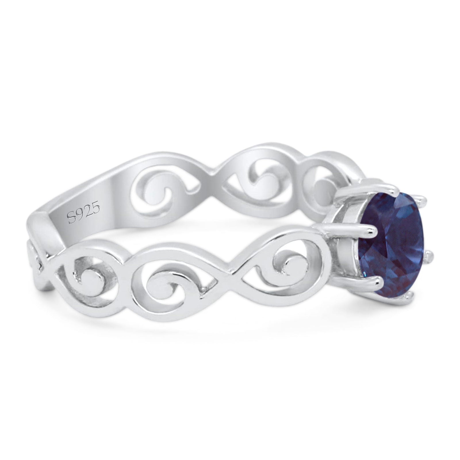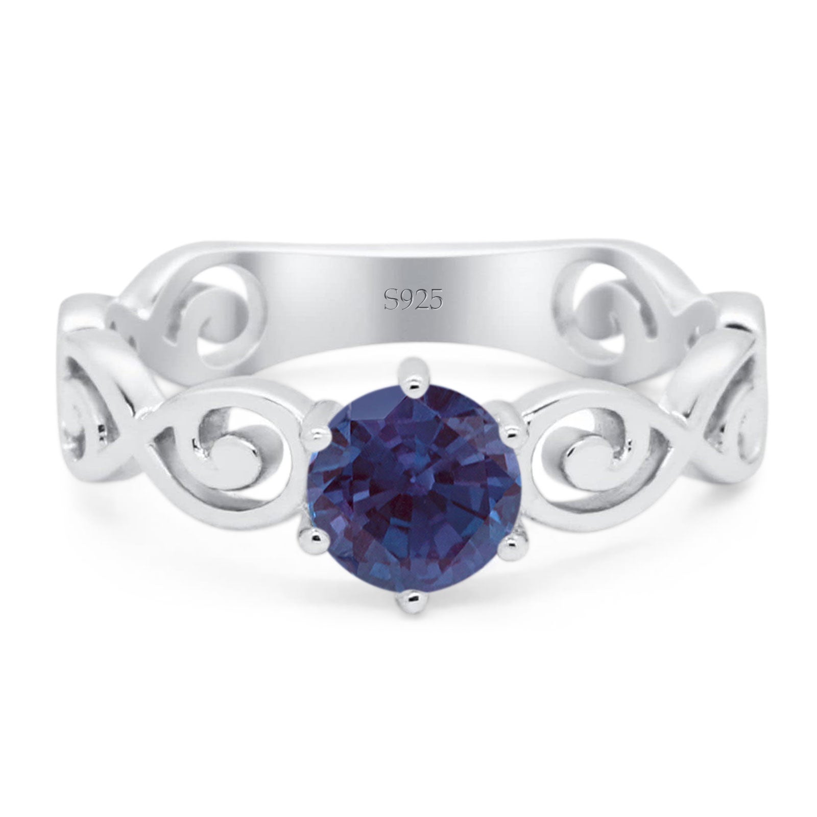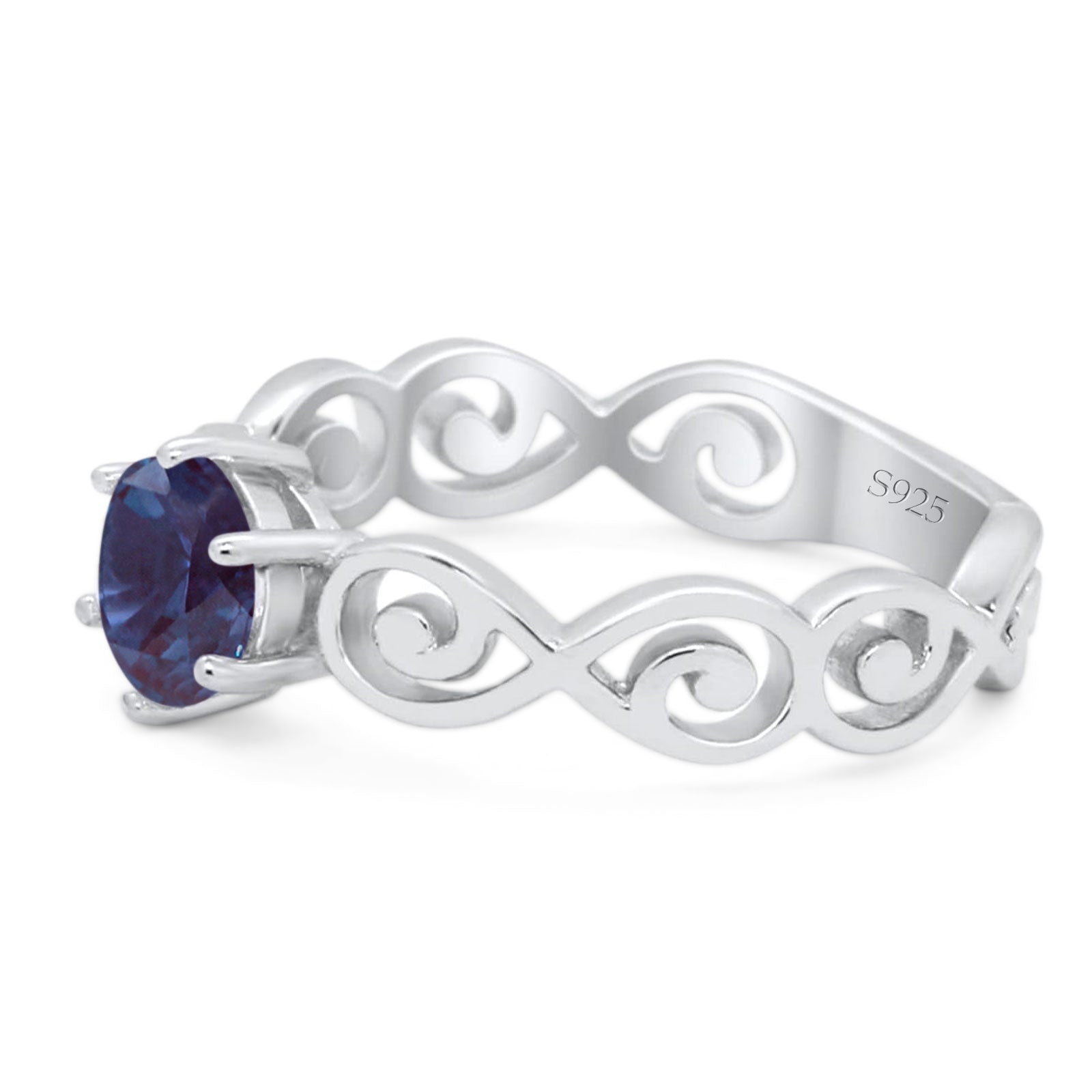 Minimalist 8mm Lab Created Blue Opal Heart Ring 925 Sterling Silver
