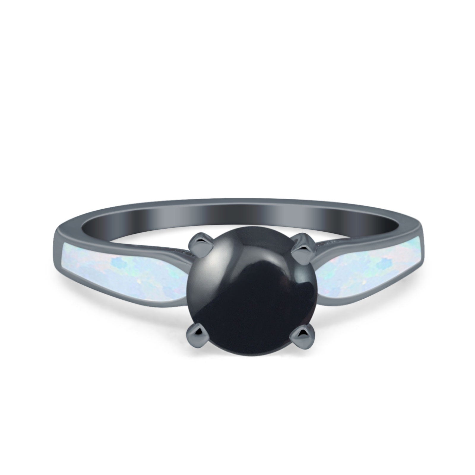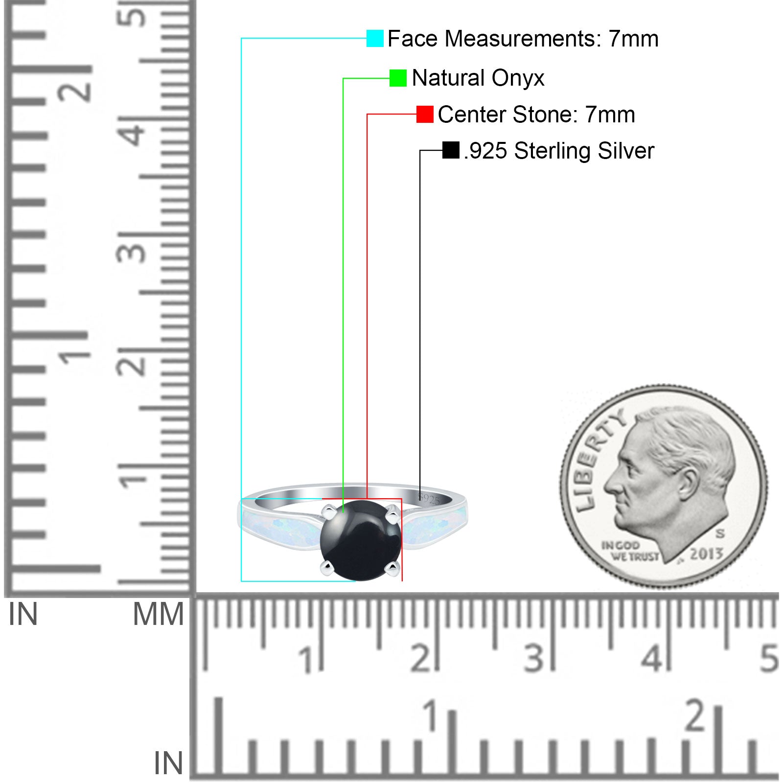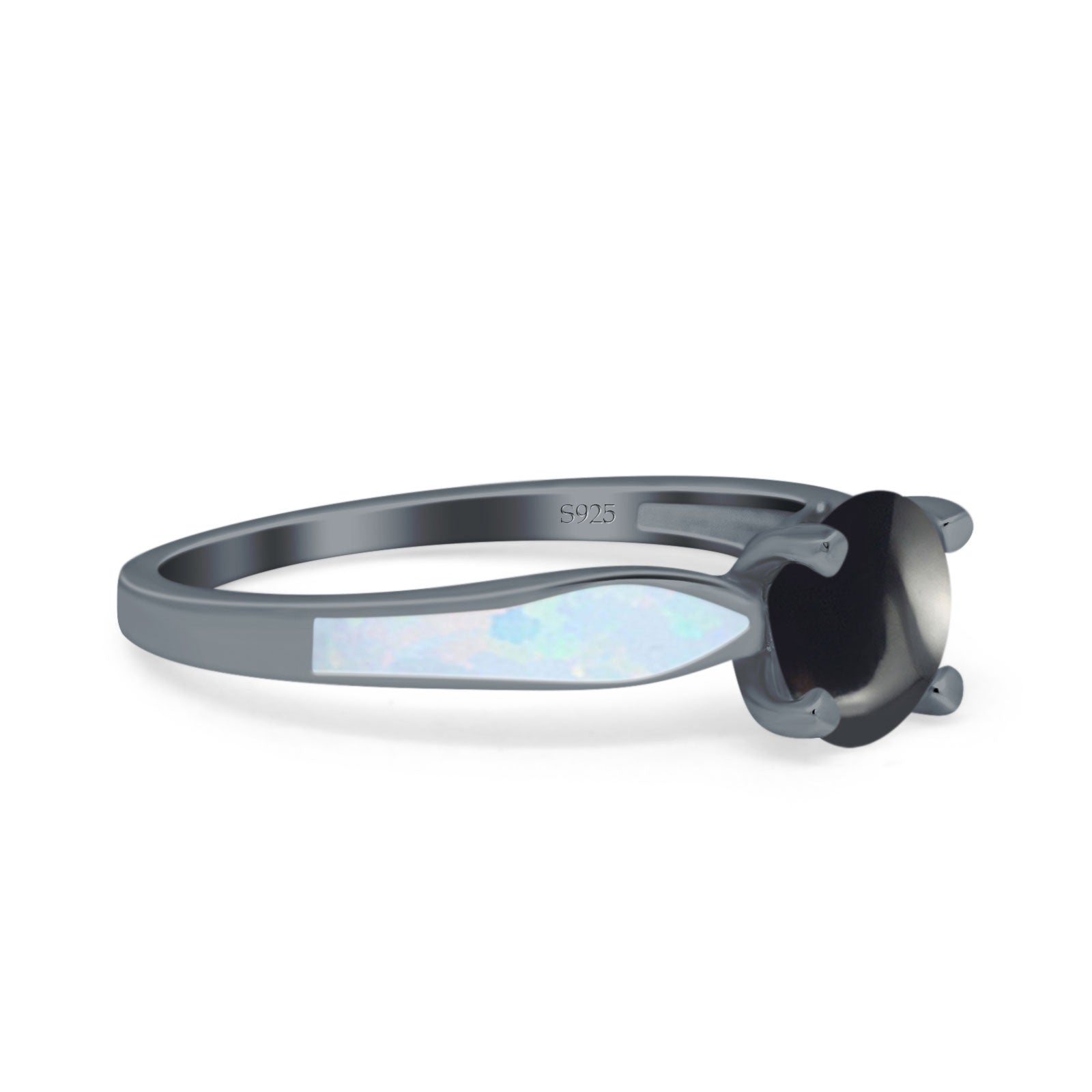 Side Stone: Lab Created White Opal.