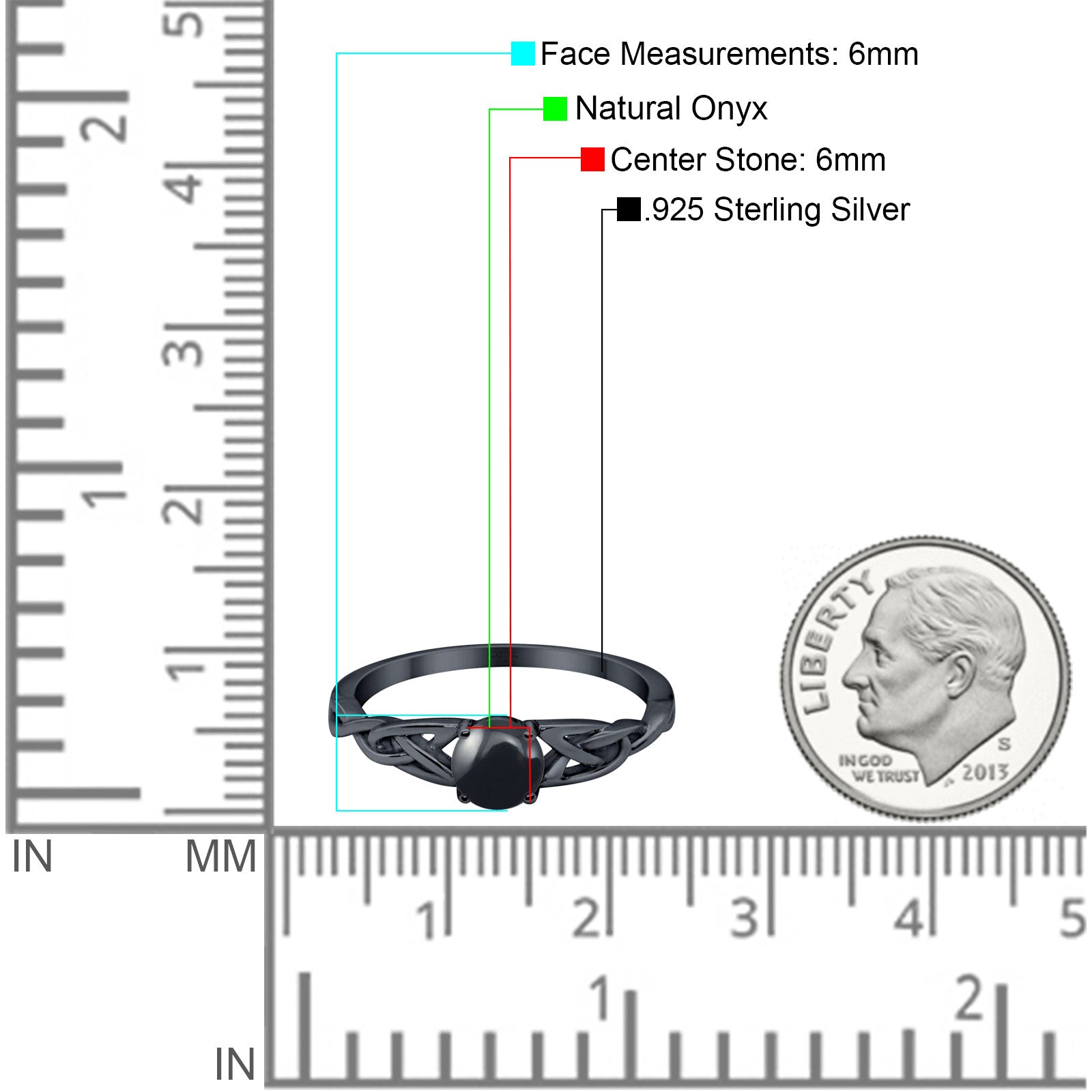 Minimalist 8mm Black Onyx Heart Ring 925 Sterling Silver