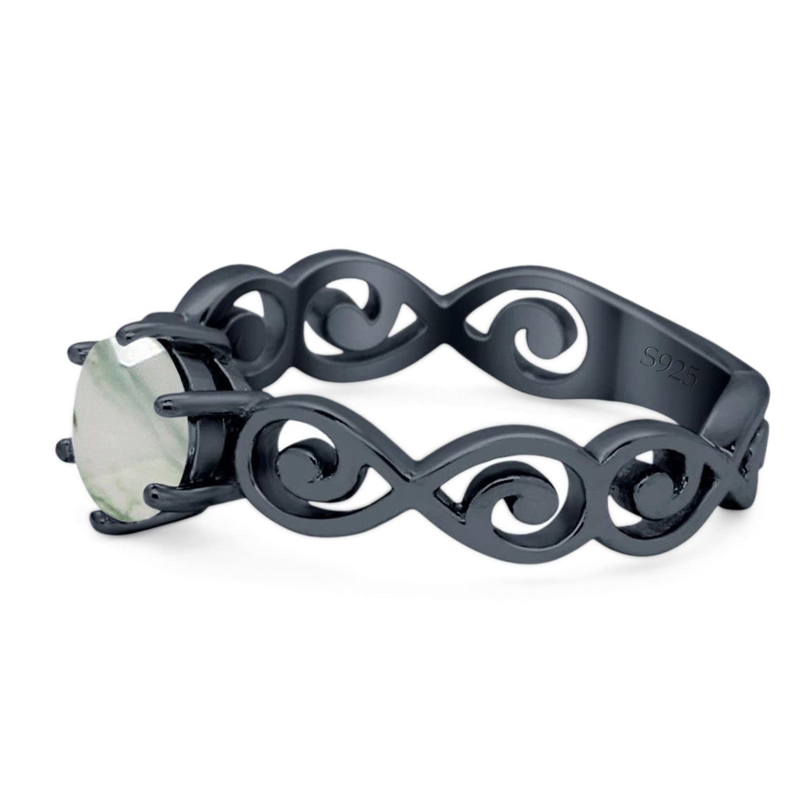 Minimalist 8mm Black Onyx Heart Ring 925 Sterling Silver