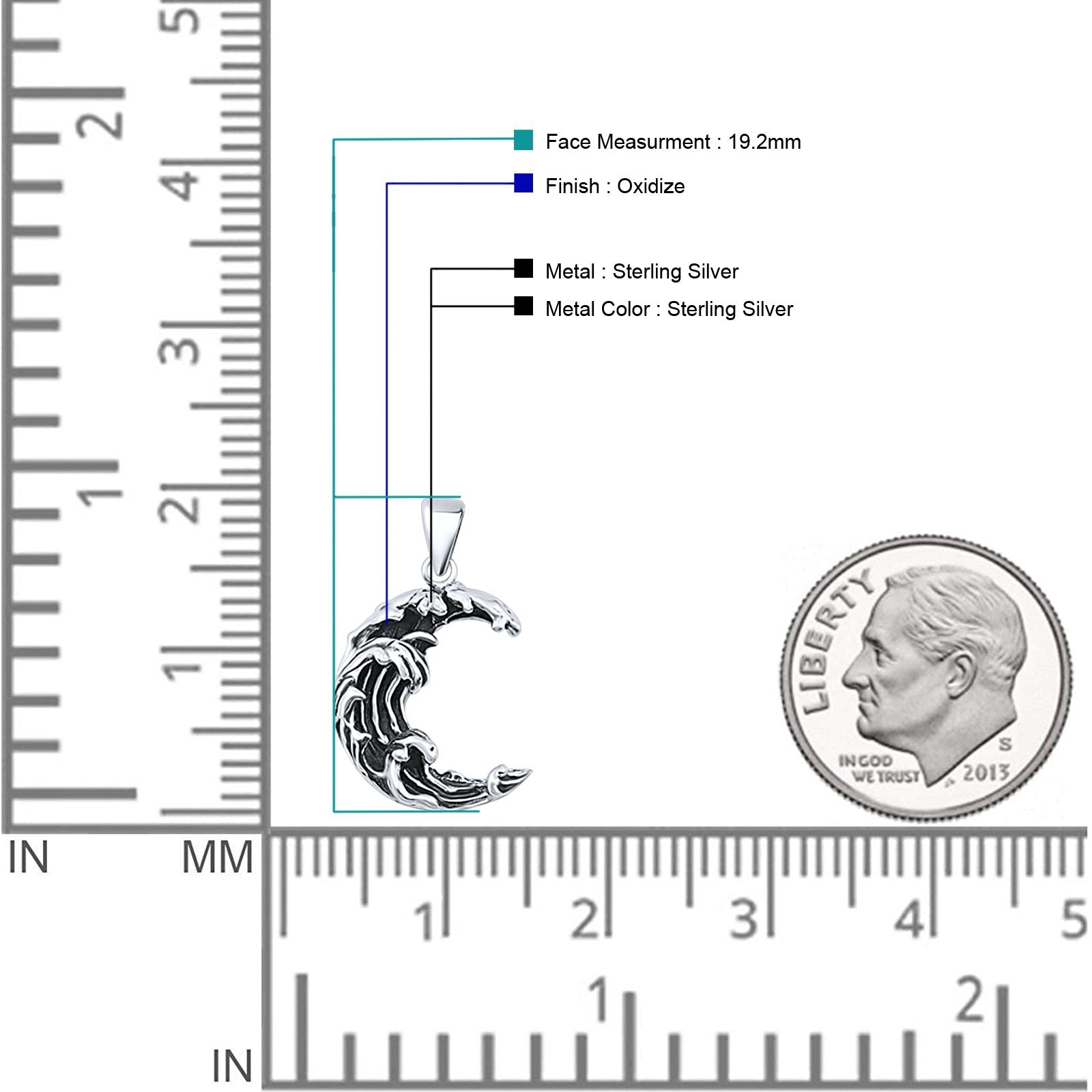 Moon Waves Pendant Rolo Chain Necklace Oxidized 925 Sterling Silver