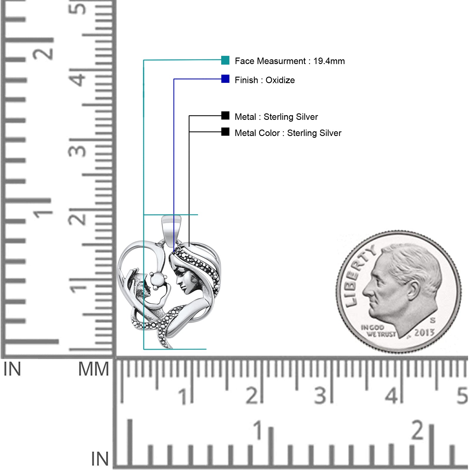Mother & Child Pendant Bead Chain Necklace Oxidized 925 Sterling Silver