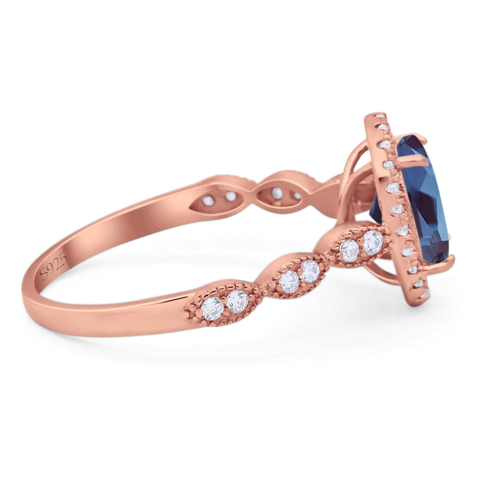 Minimalist 8mm Lab Created Blue Opal Heart Ring 925 Sterling Silver