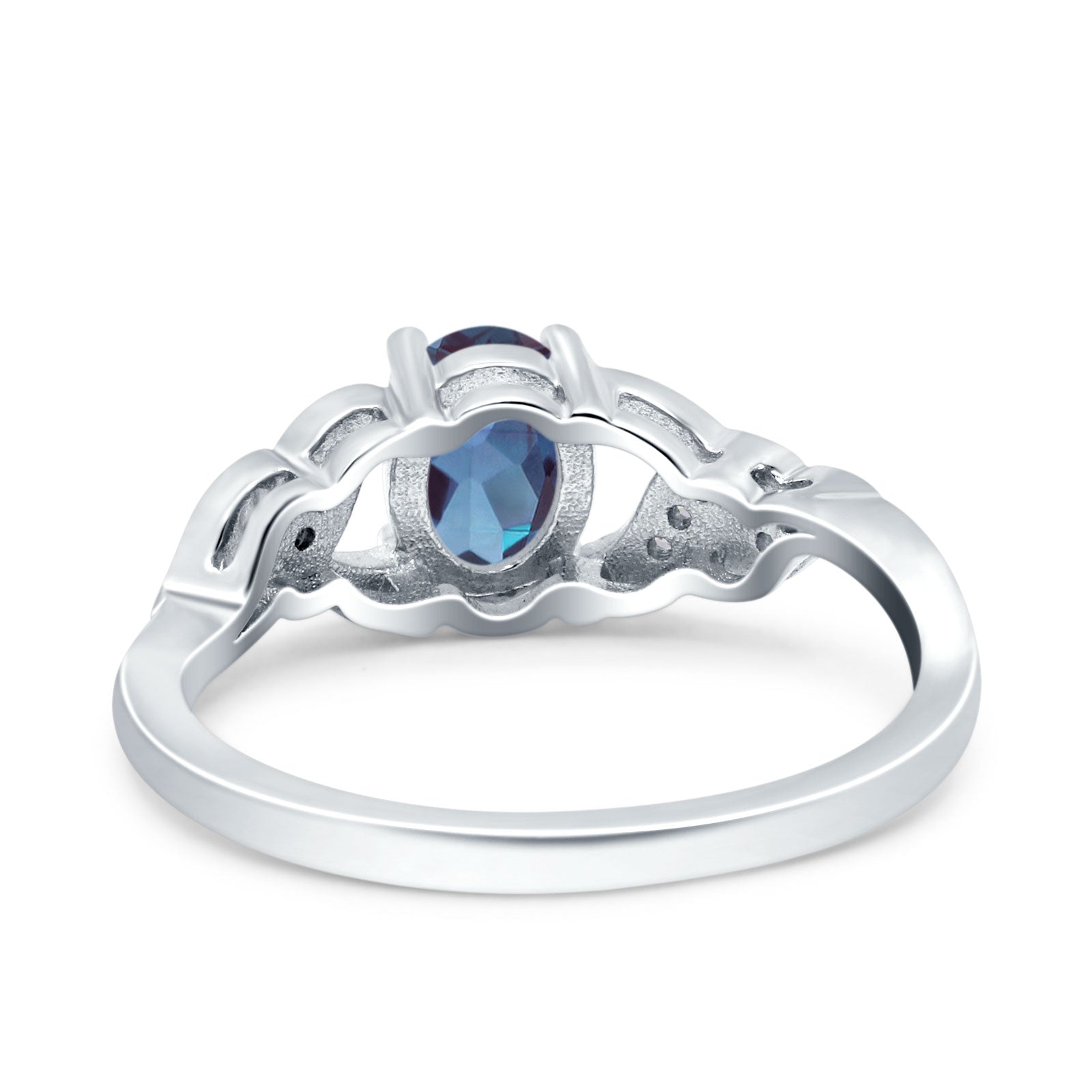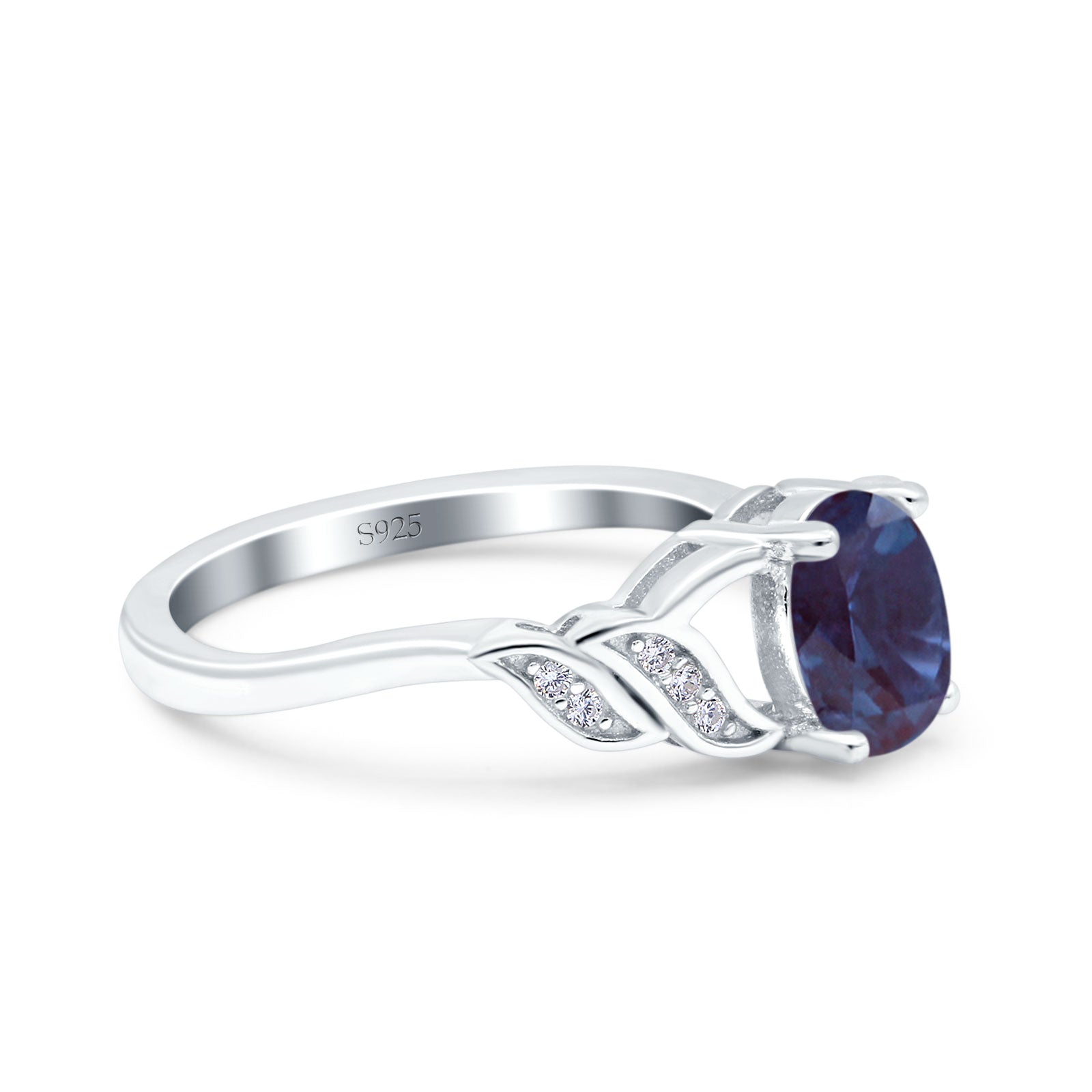 Oval Lab Alexandrite Leaf Split Shank Ring 925 Sterling Silver