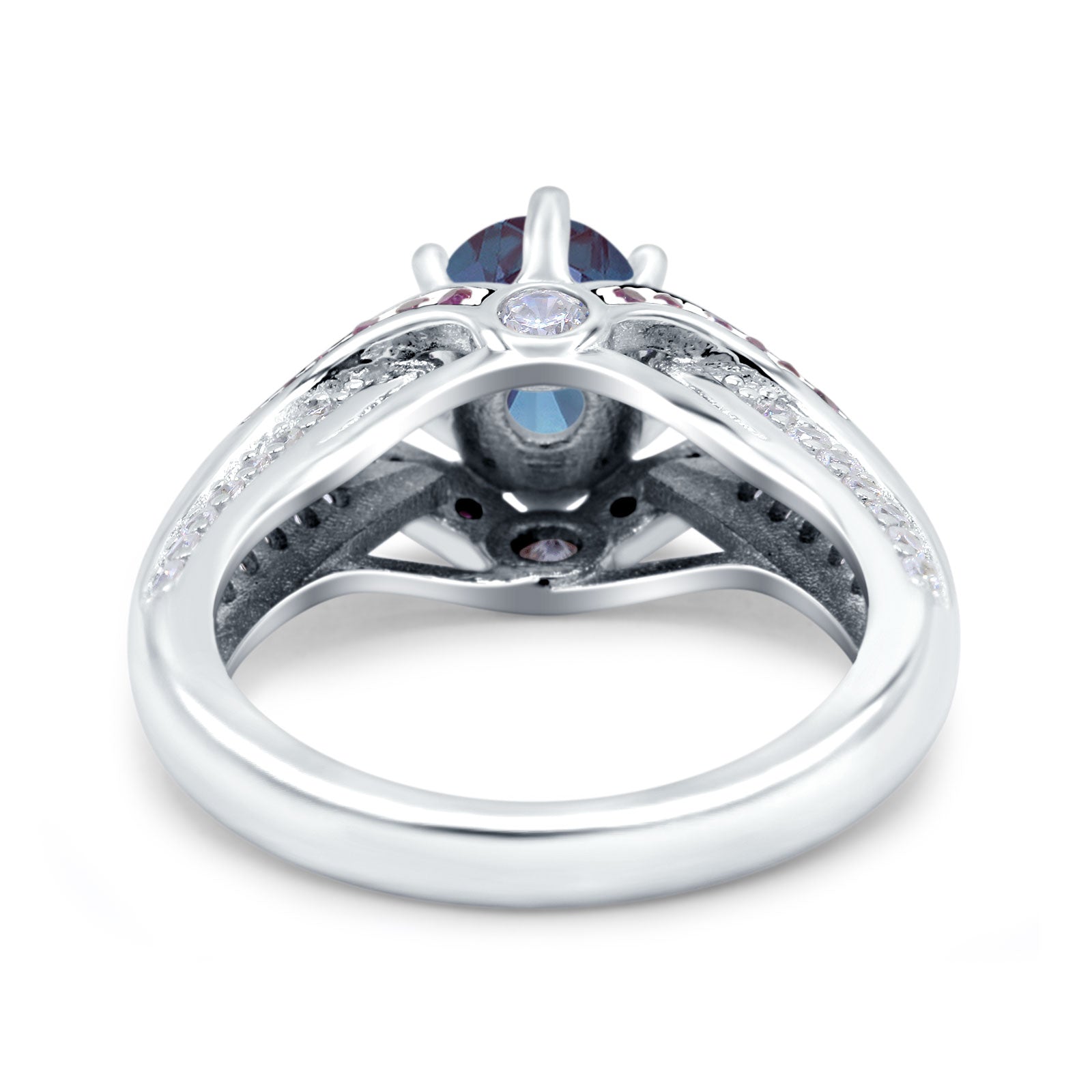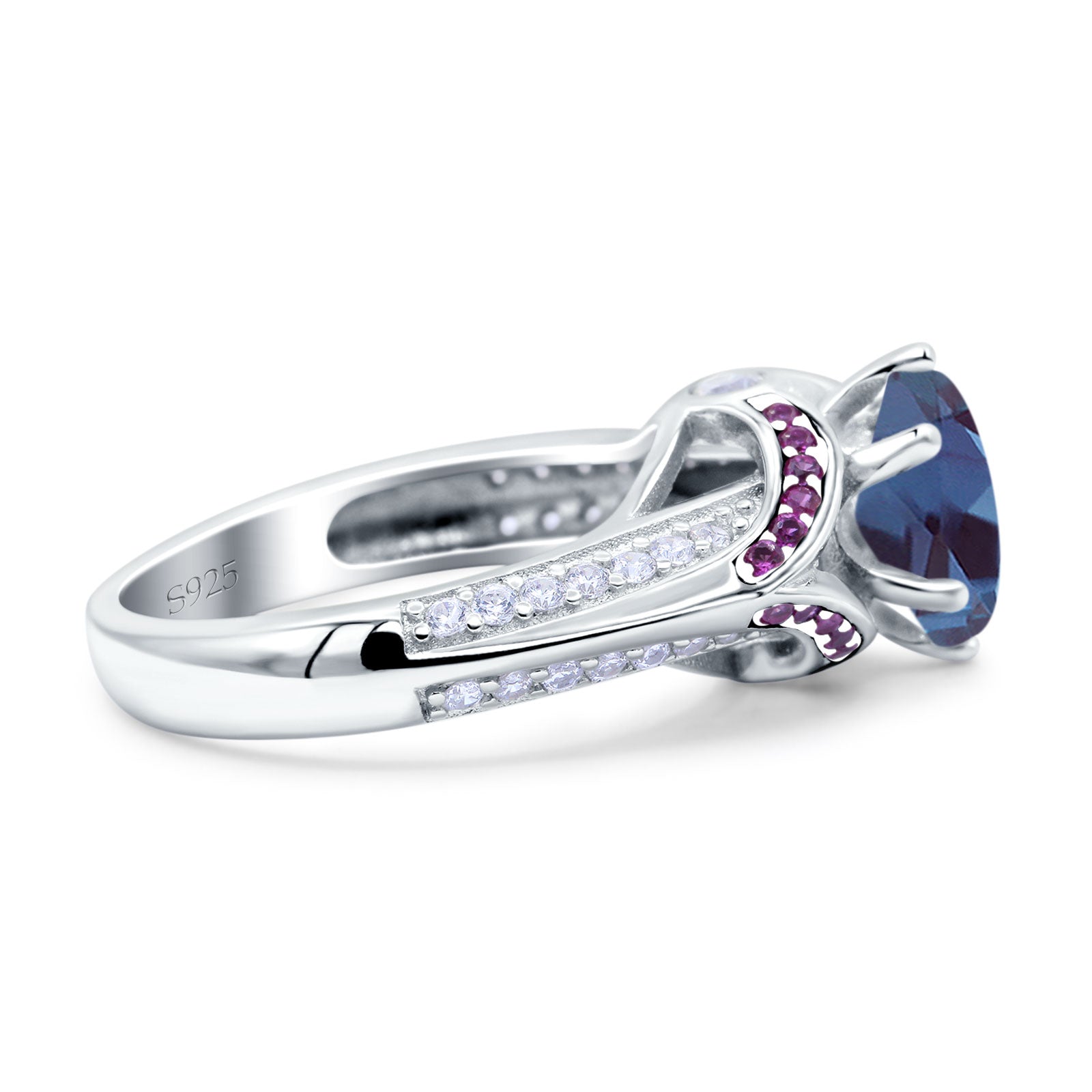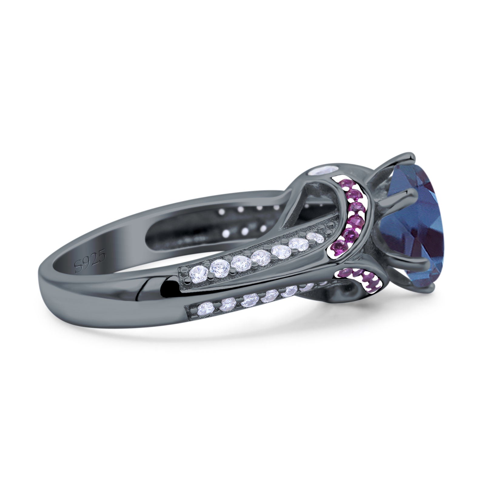 Minimalist 17mm Lab Created Blue Opal Flower & Bee Oxidized Ring 925 Sterling Silver