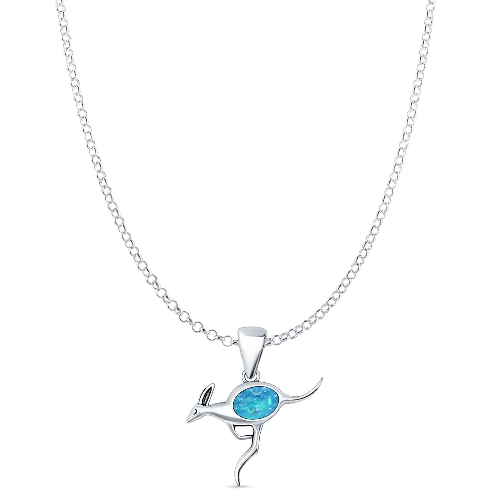 Style: Lab Created Blue Opal Kangaroo Pendant Necklace