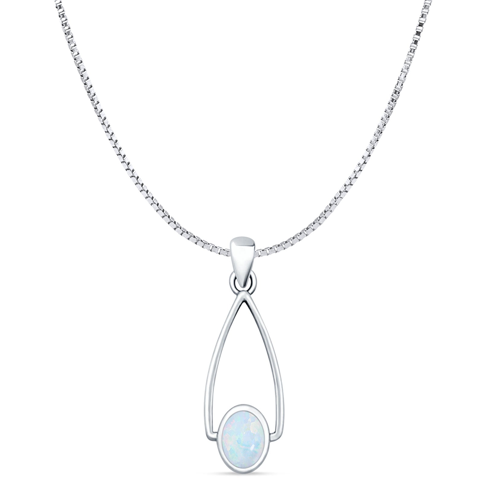 Style: Oxidized Oval Lab Created White Opal Drop Dangle Pendant Necklace