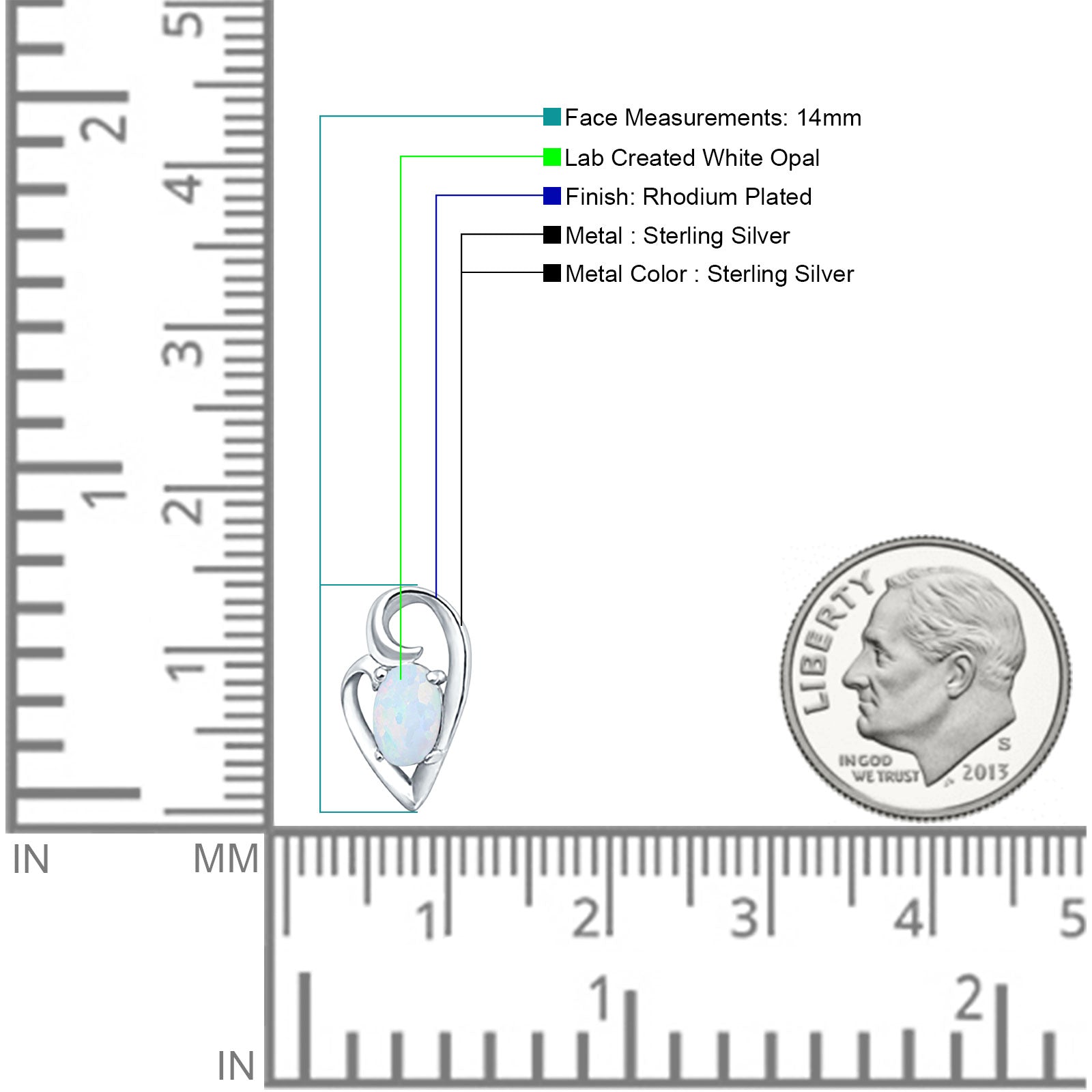 Oval Lab Created White Opal Heart Pendant Oxidized 925 Sterling Silver