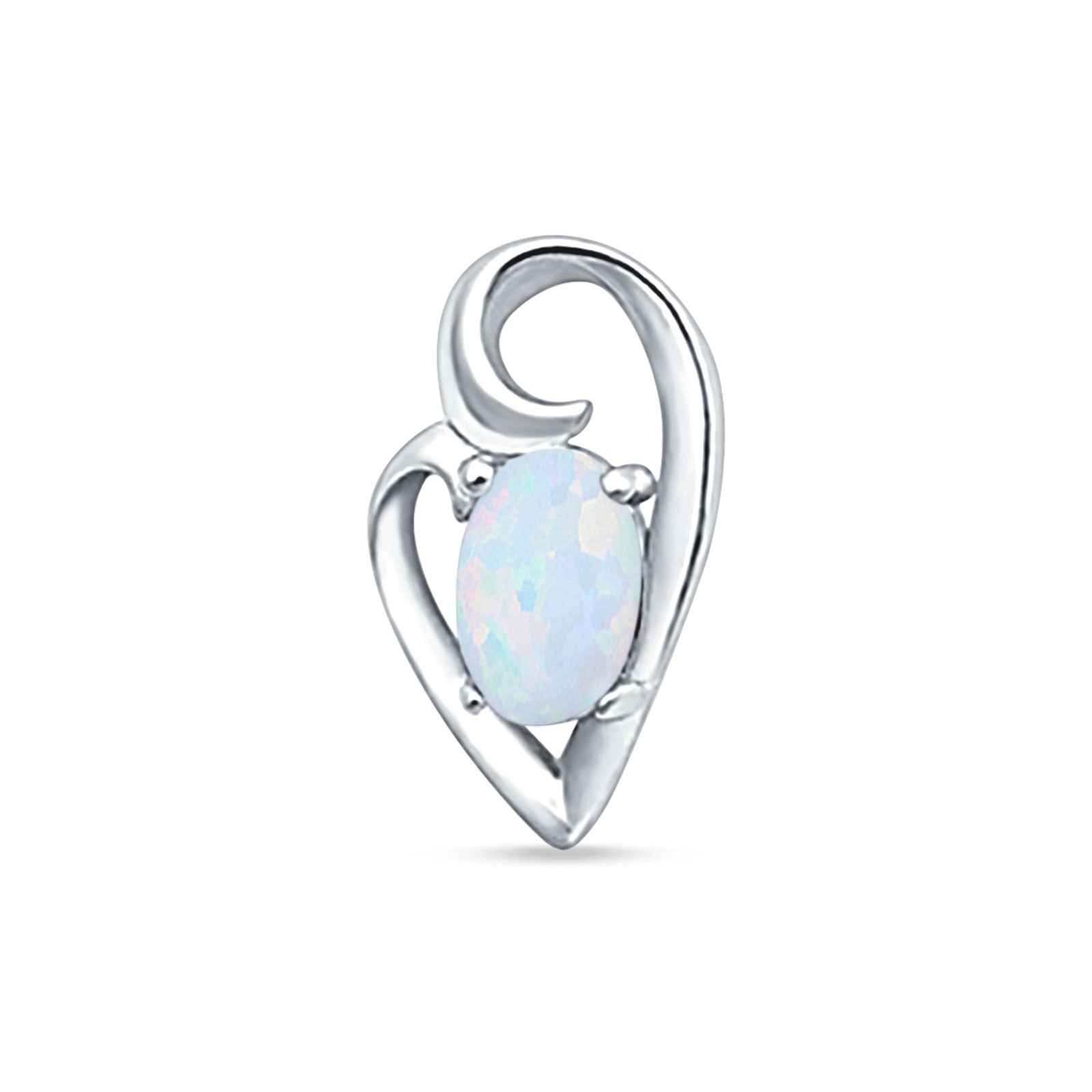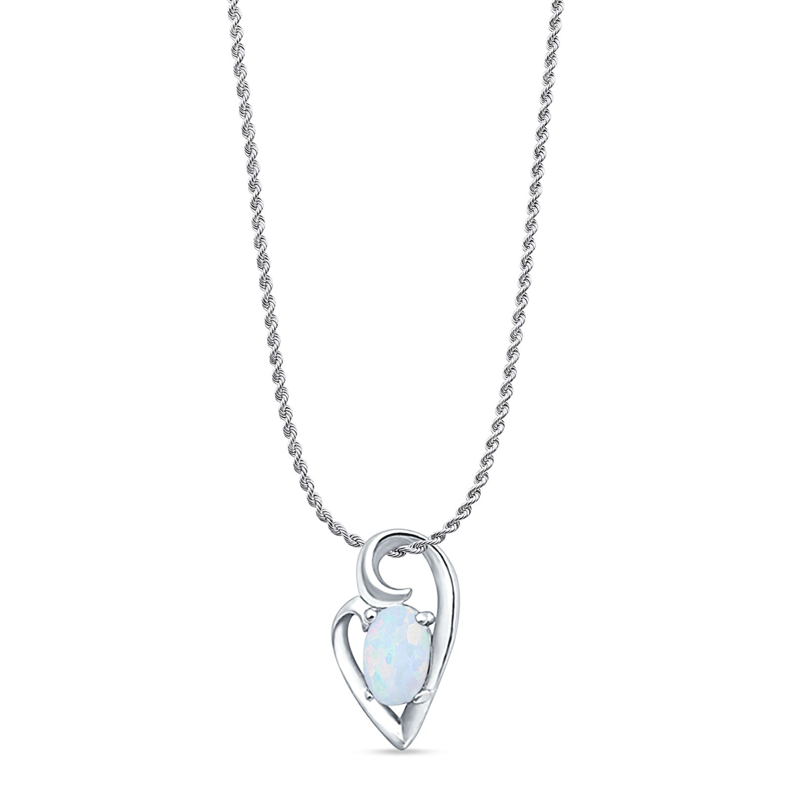 Style: Oval Lab Created White Opal Heart Pendant Necklace
