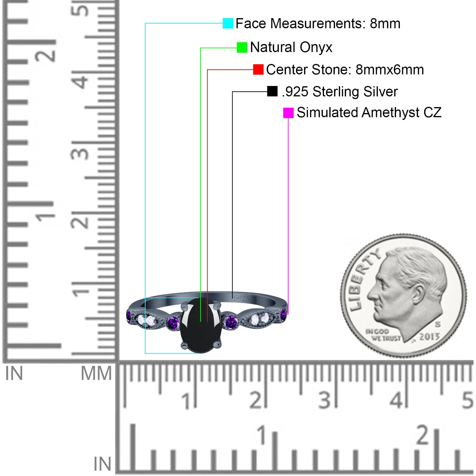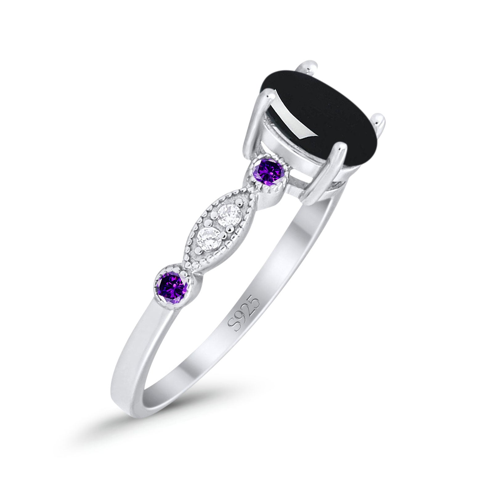 Side Stone: Amethyst Cubic Zirconia(CZ).