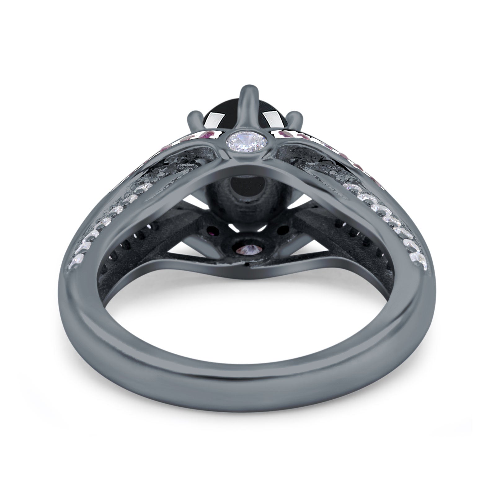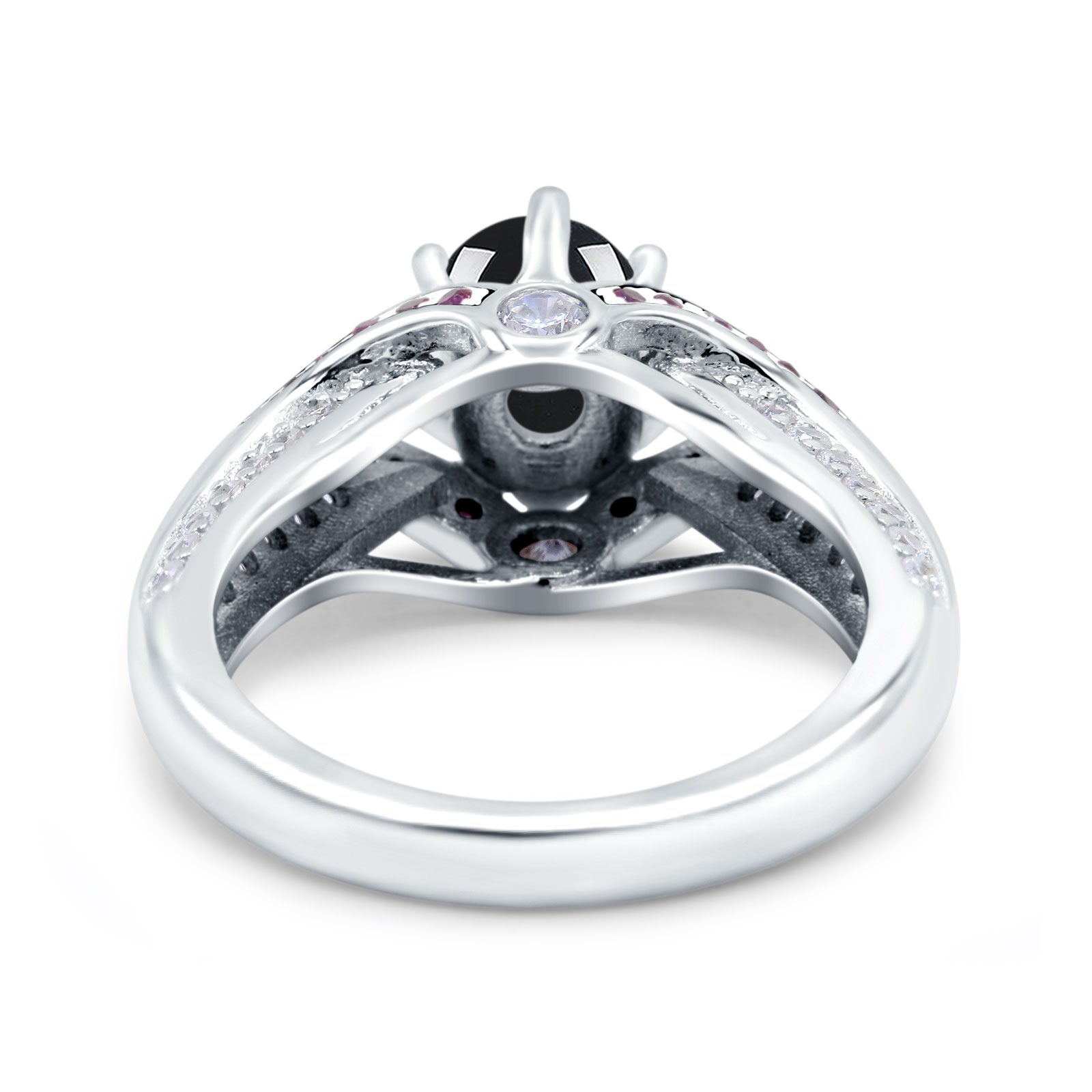 Minimalist 17mm Lab Created White Opal Flower & Bee Oxidized Ring 925 Sterling Silver