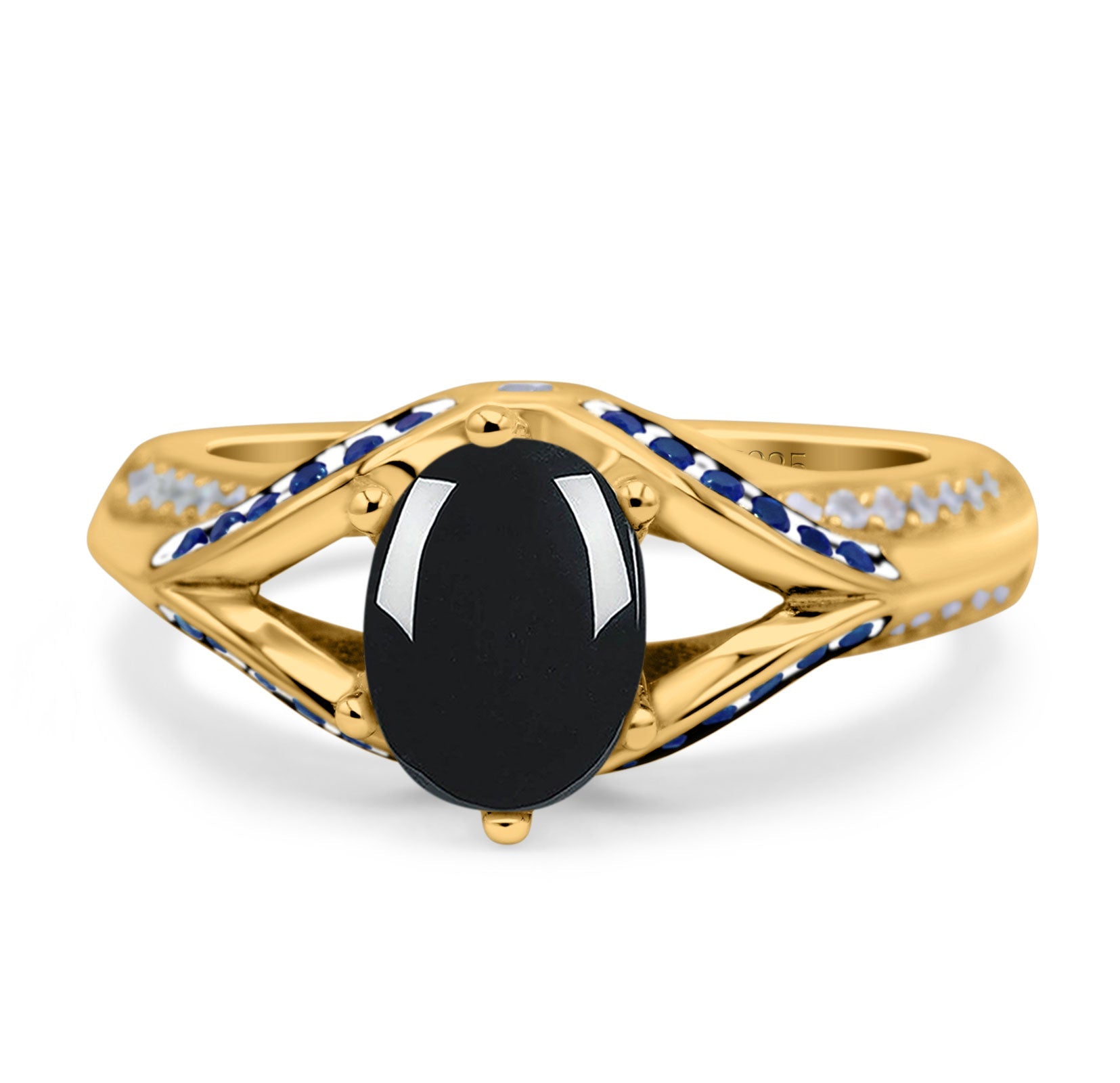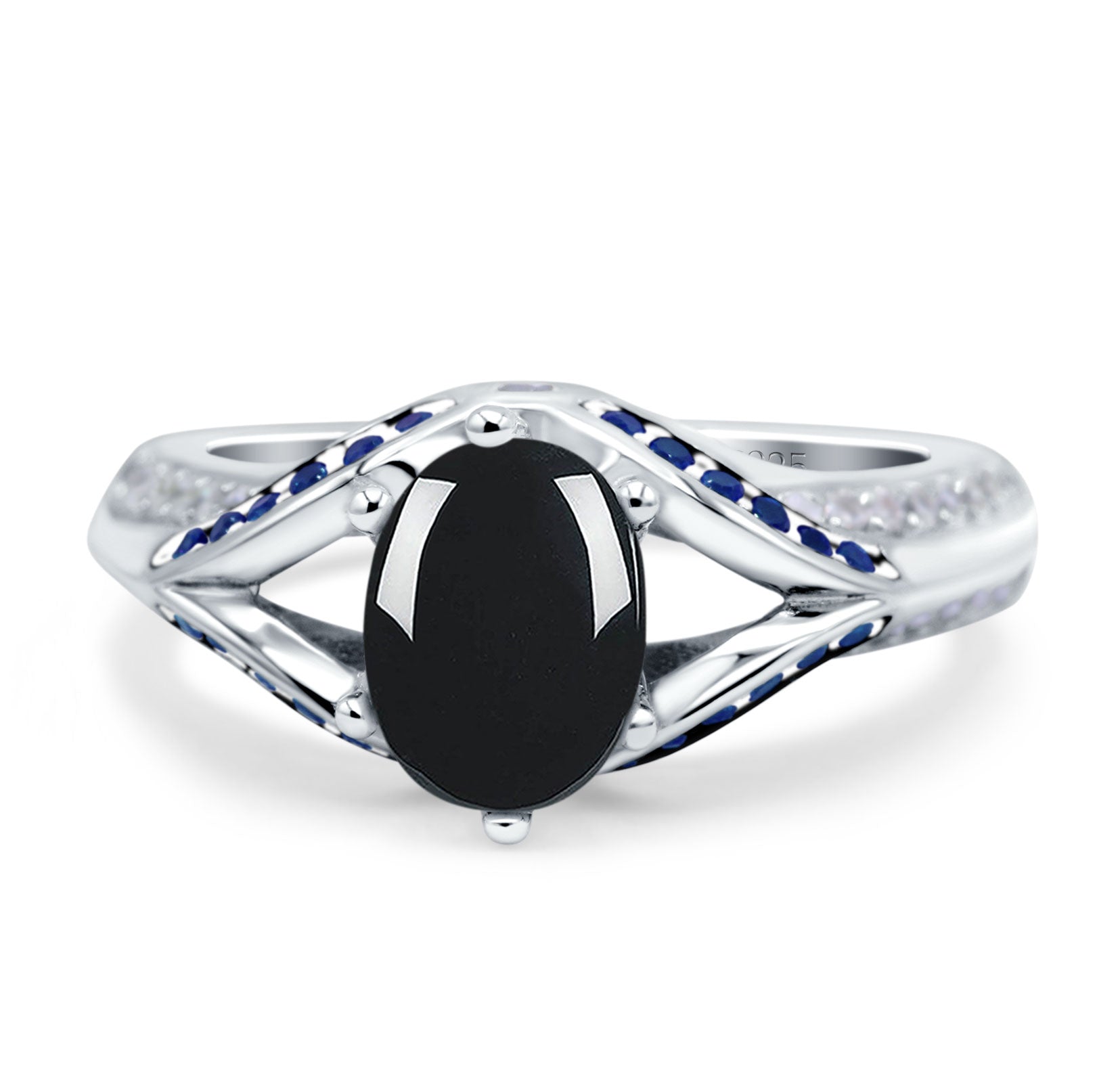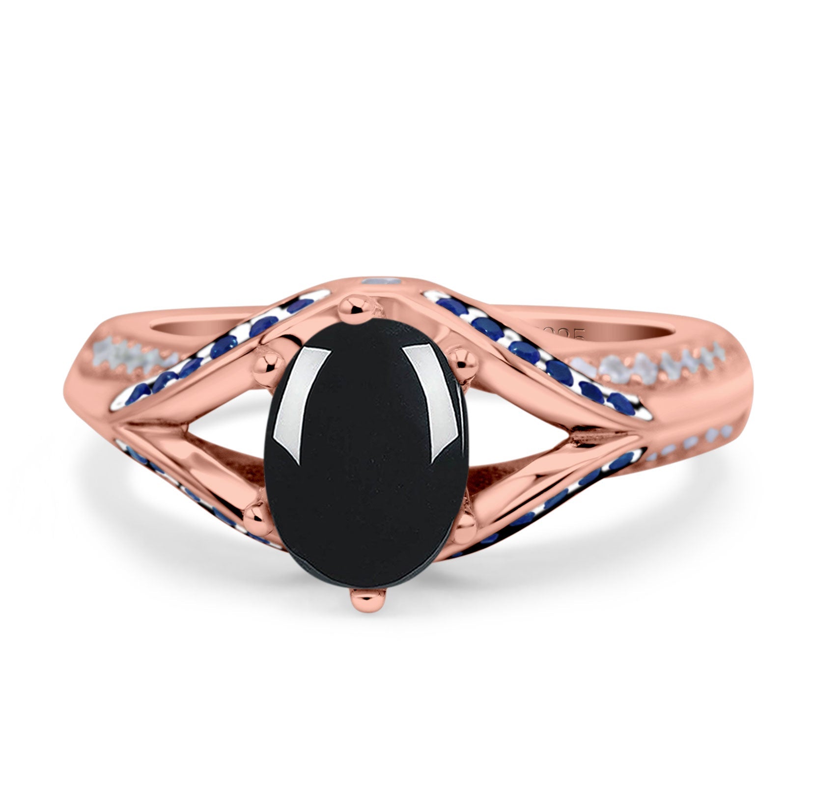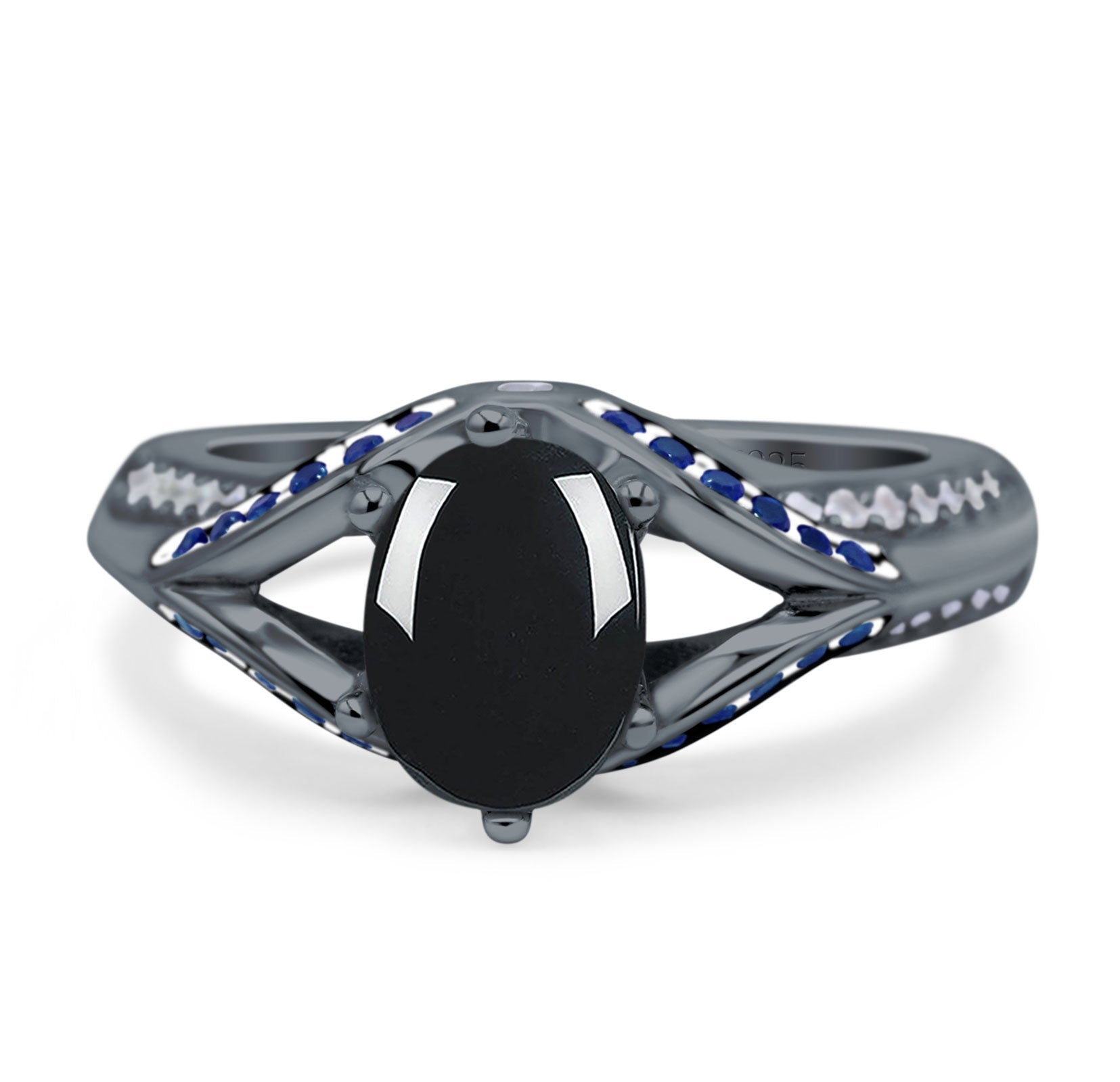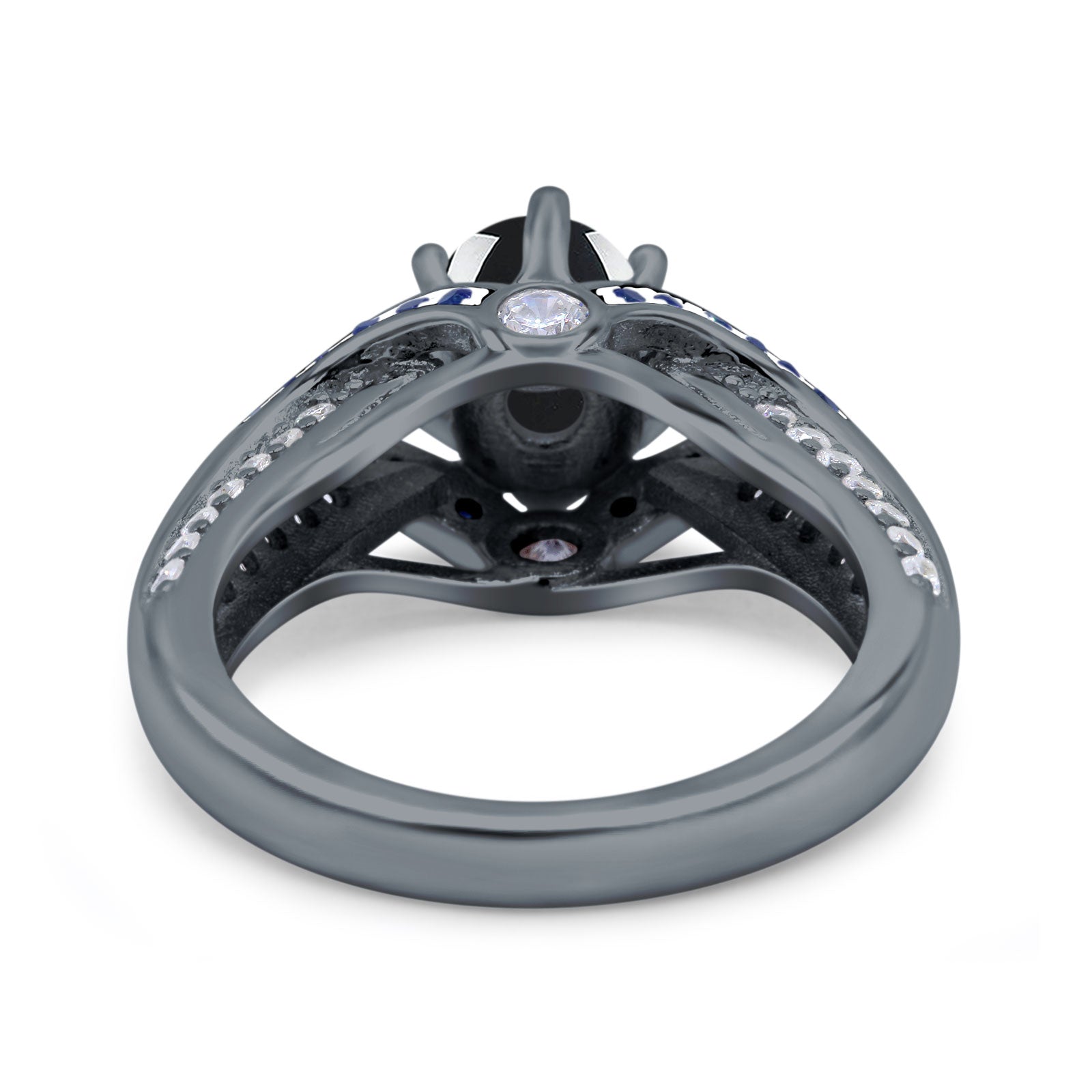 Minimalist 17mm Lab Created Blue Opal Flower & Bee Oxidized Ring 925 Sterling Silver