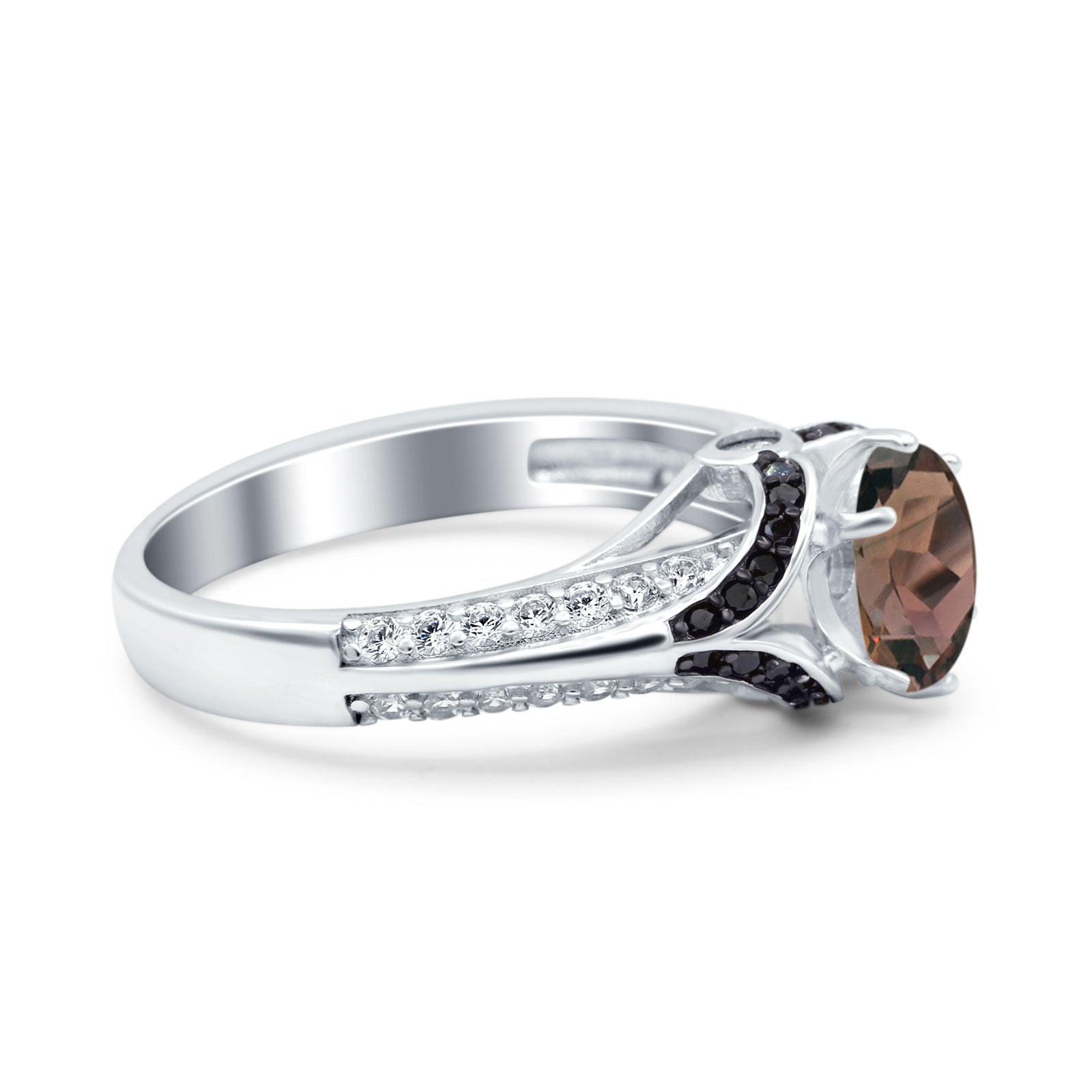 Oval Natural Chocolate Smoky Quartz Split Shank Two Tone Ring 925 Sterling Silver