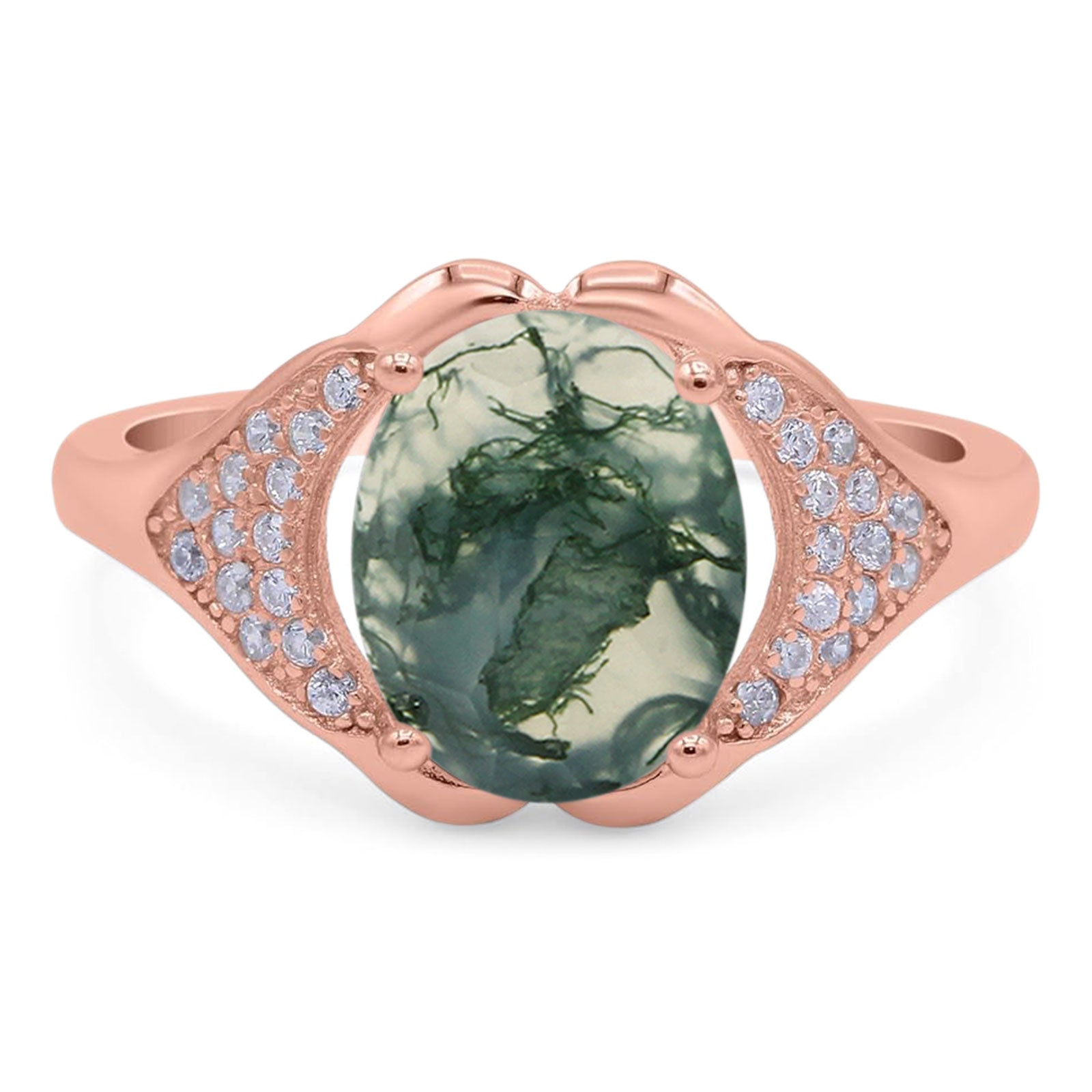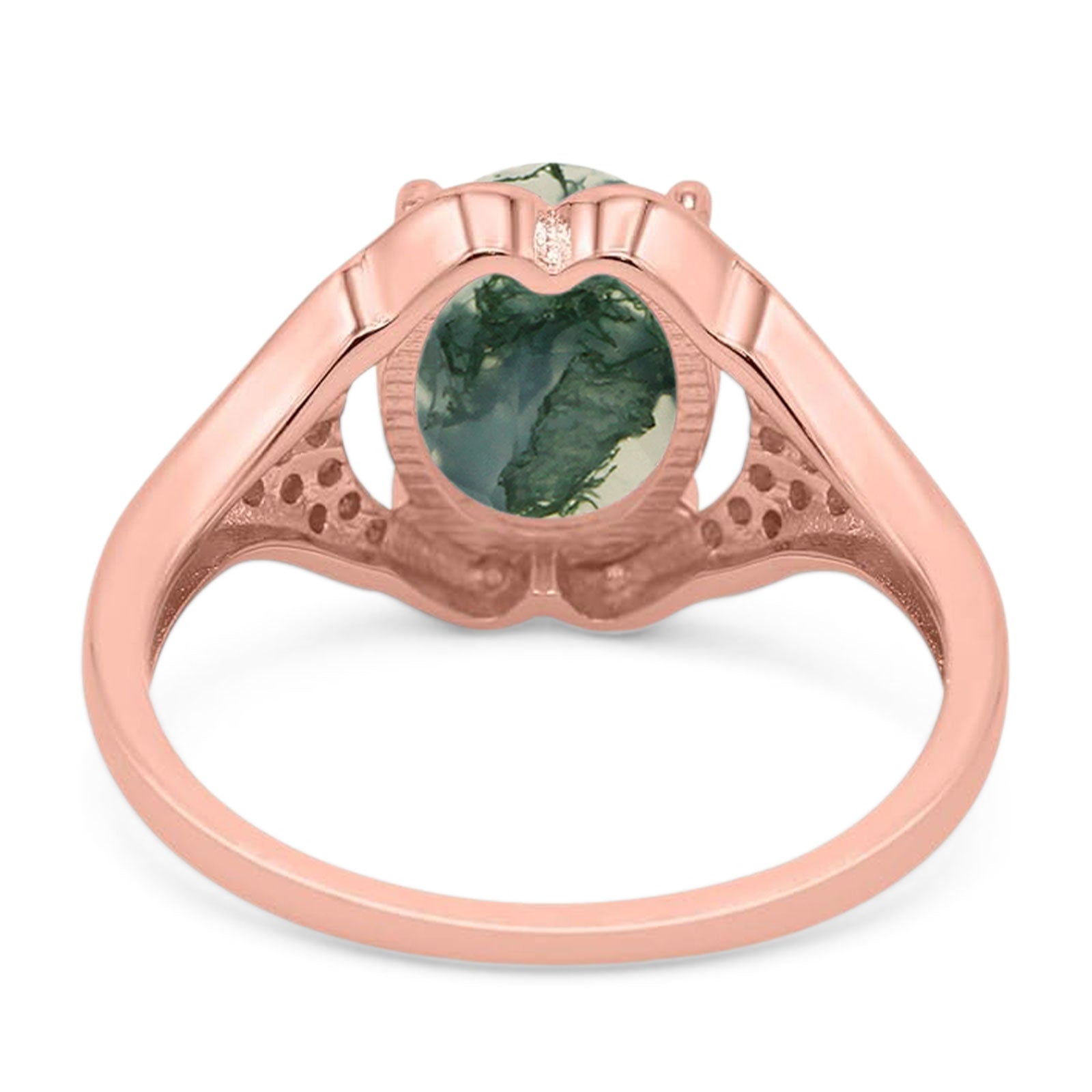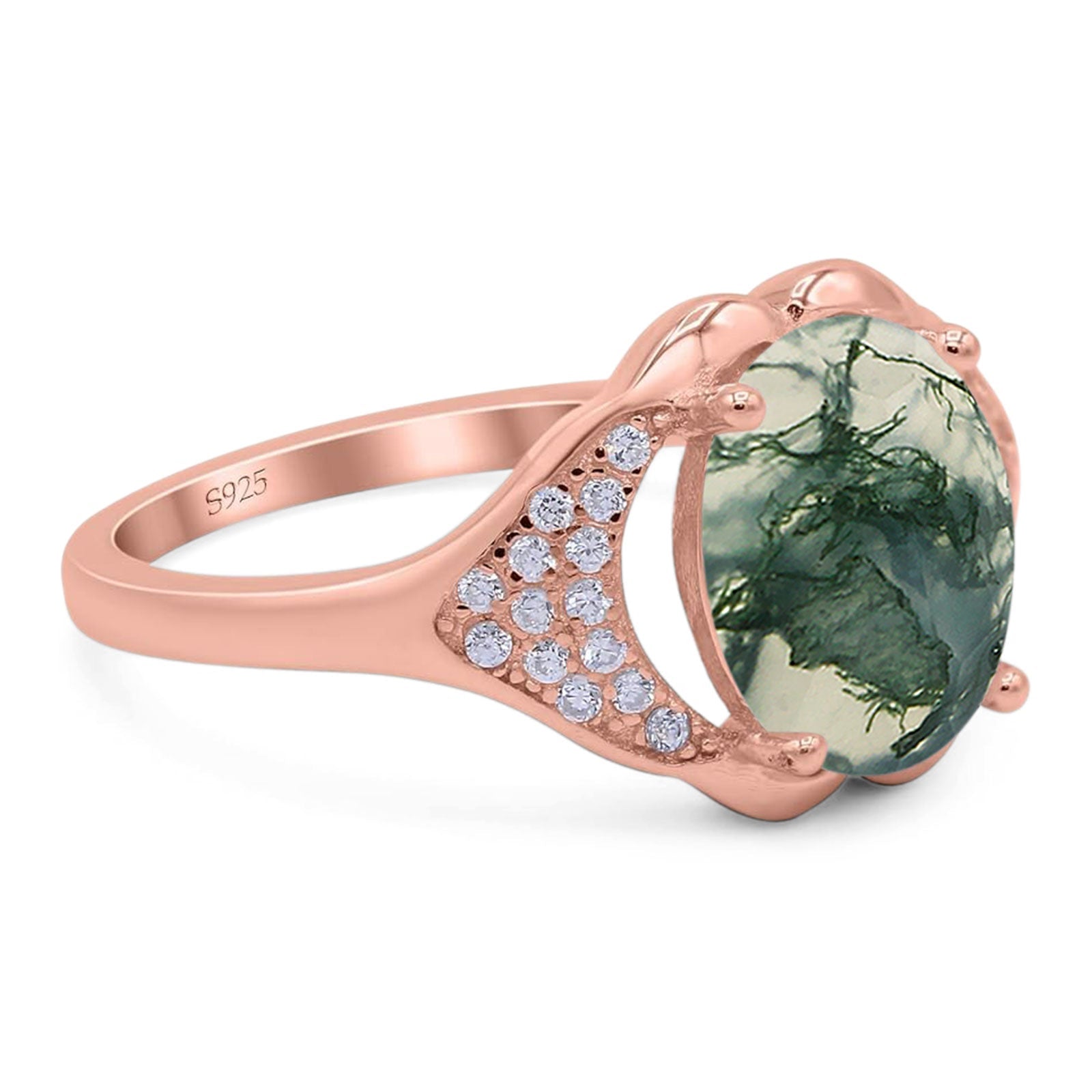 Natural Green Moss Agate Rose Tone Silver