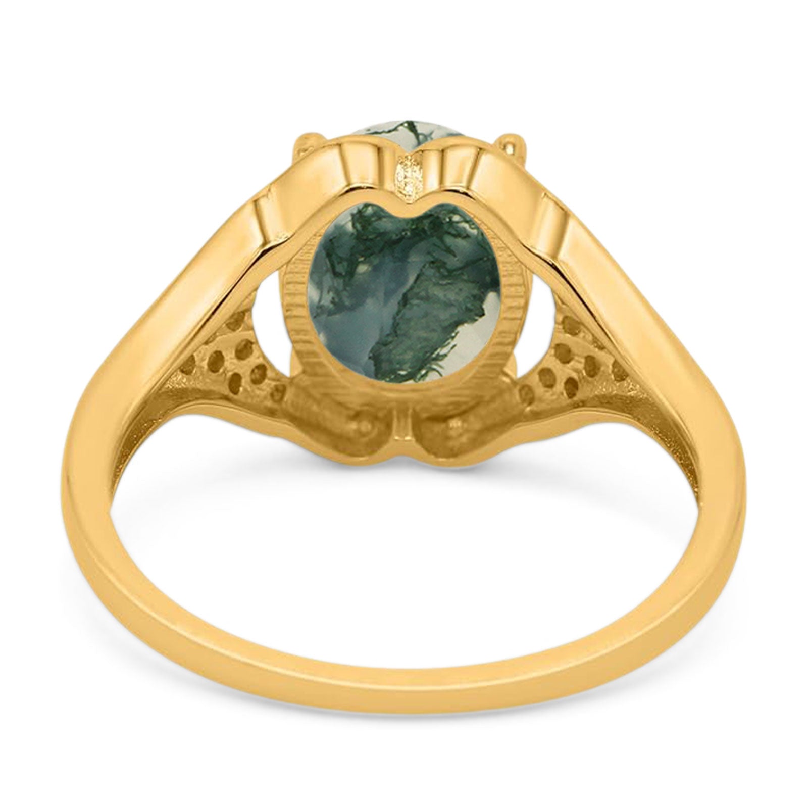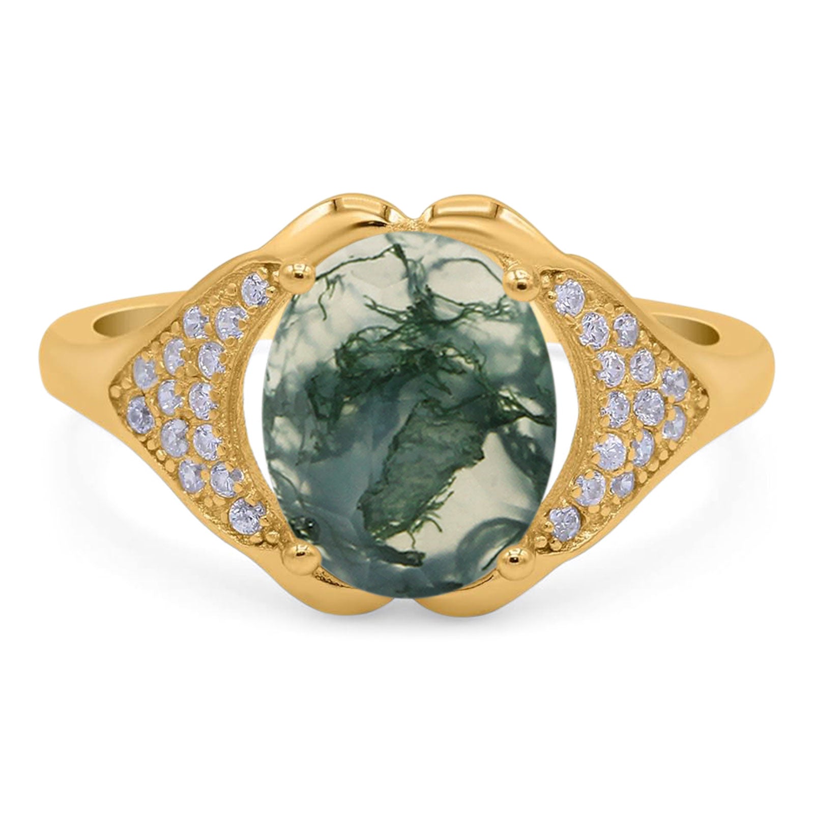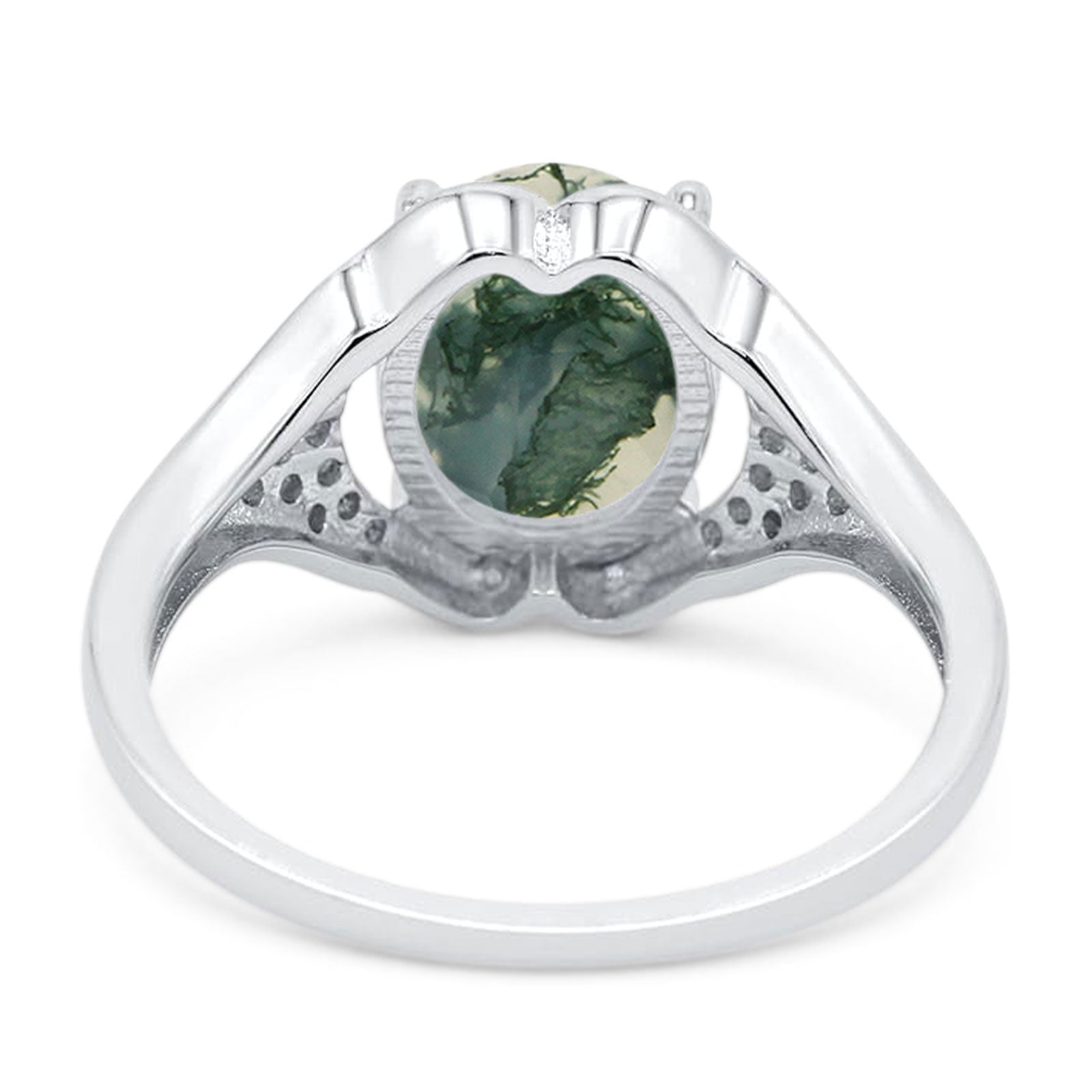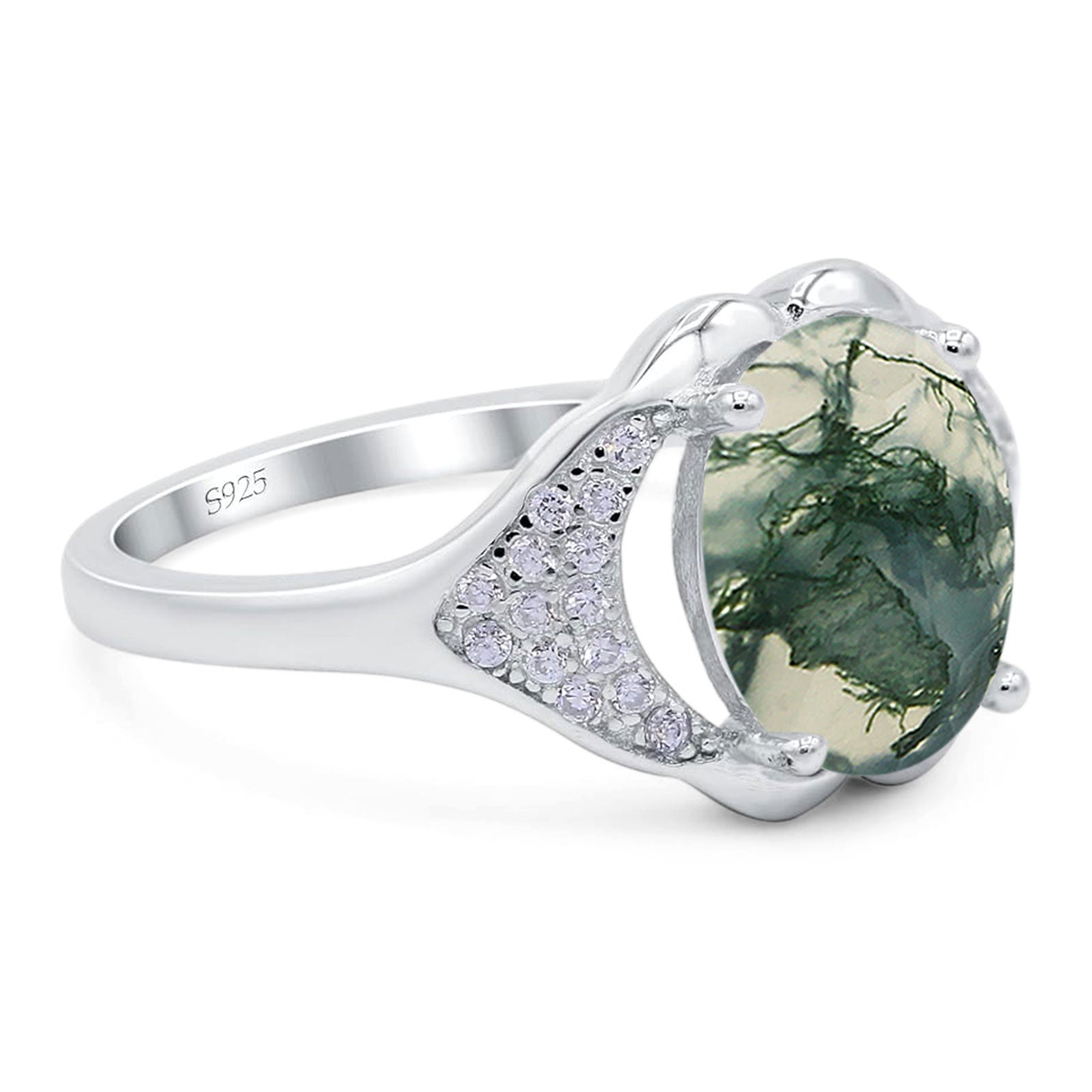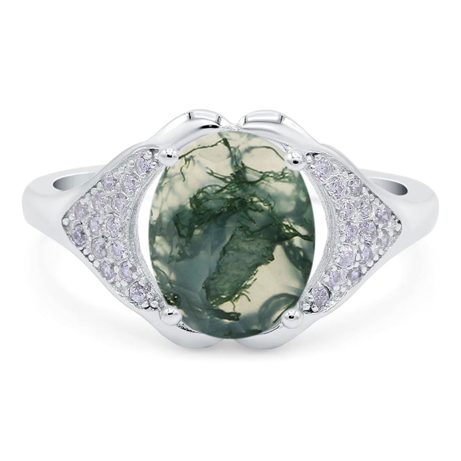 Oval Natural Green Moss Agate Cluster Wedding Ring 925 Sterling Silver
