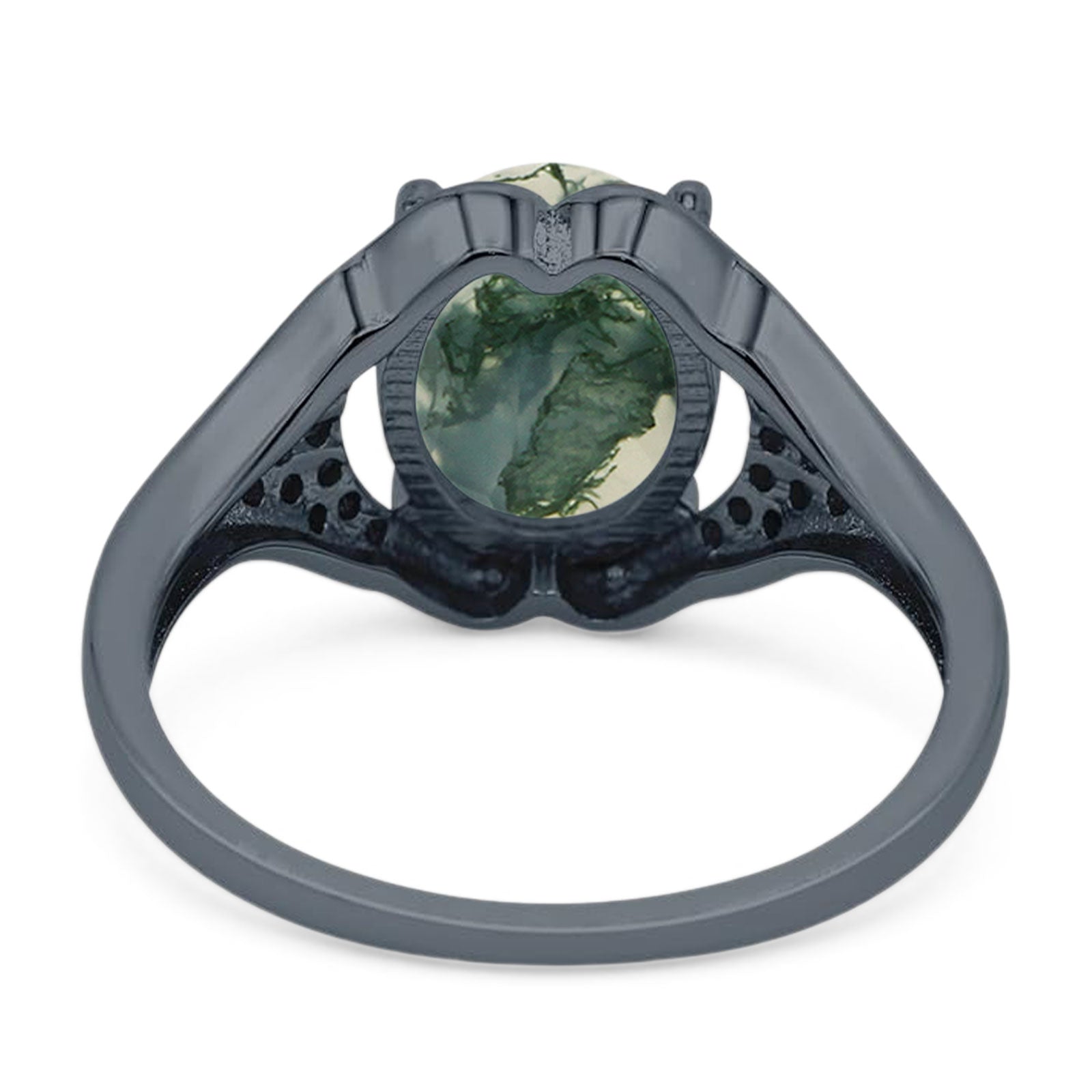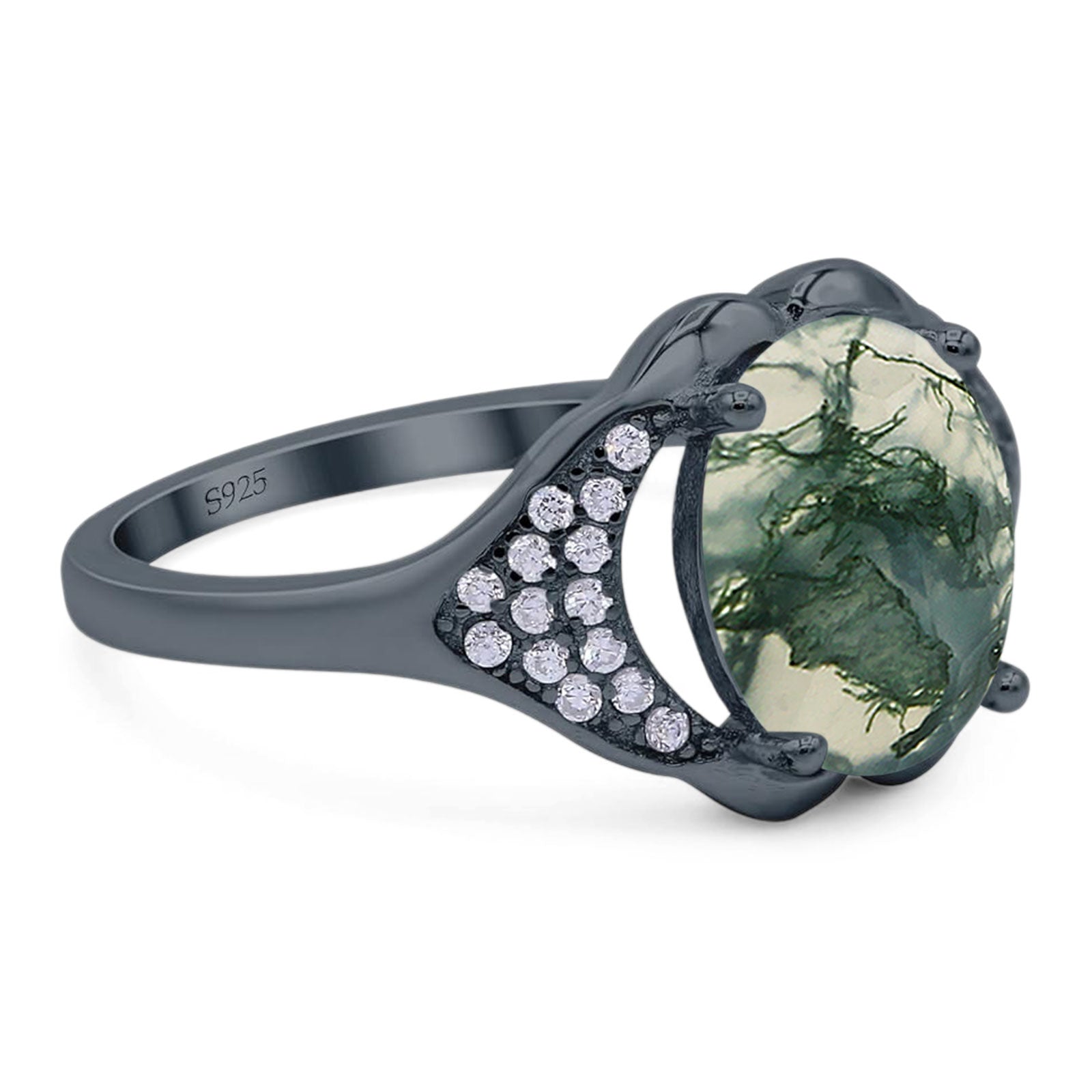 Natural Green Moss Agate Black Tone Silver