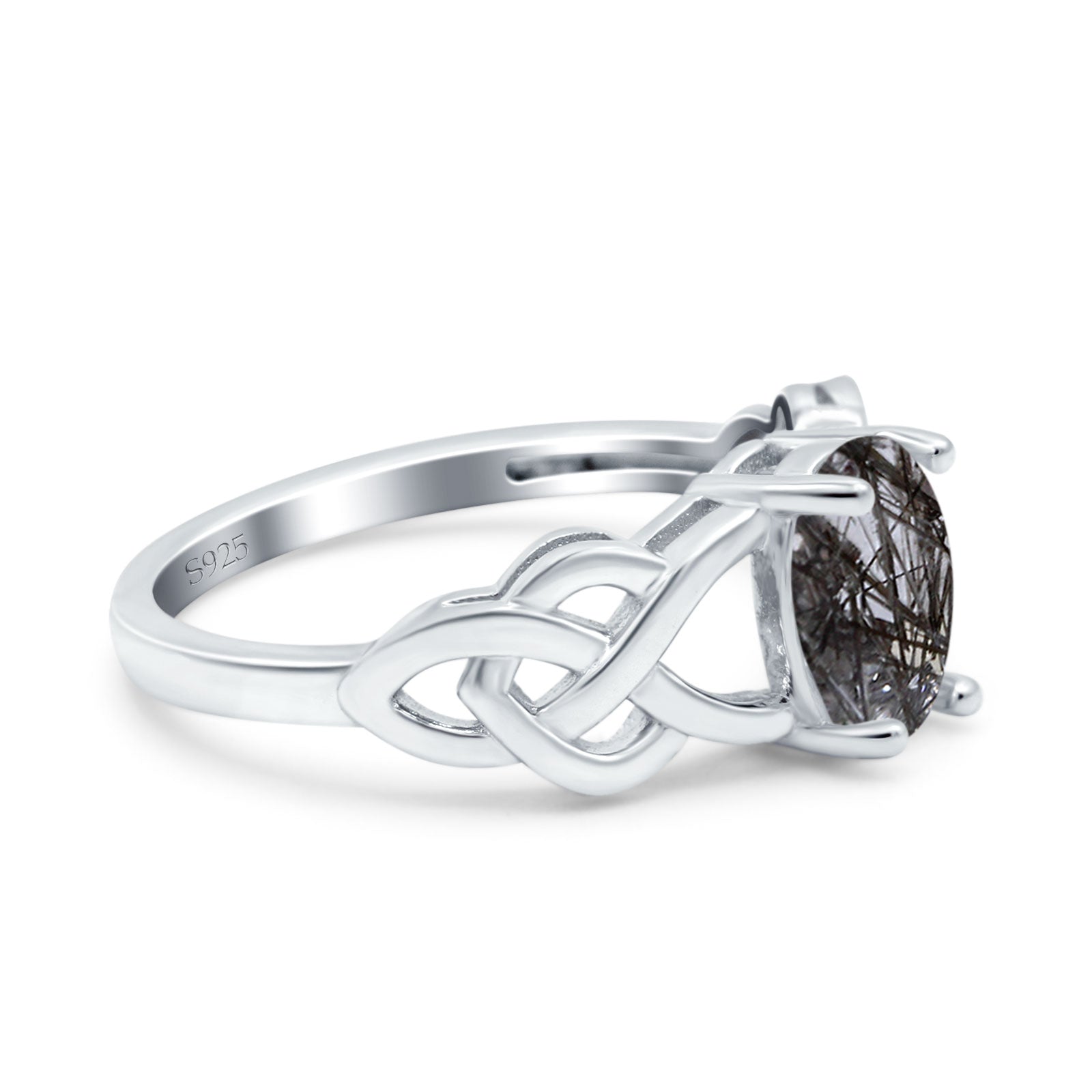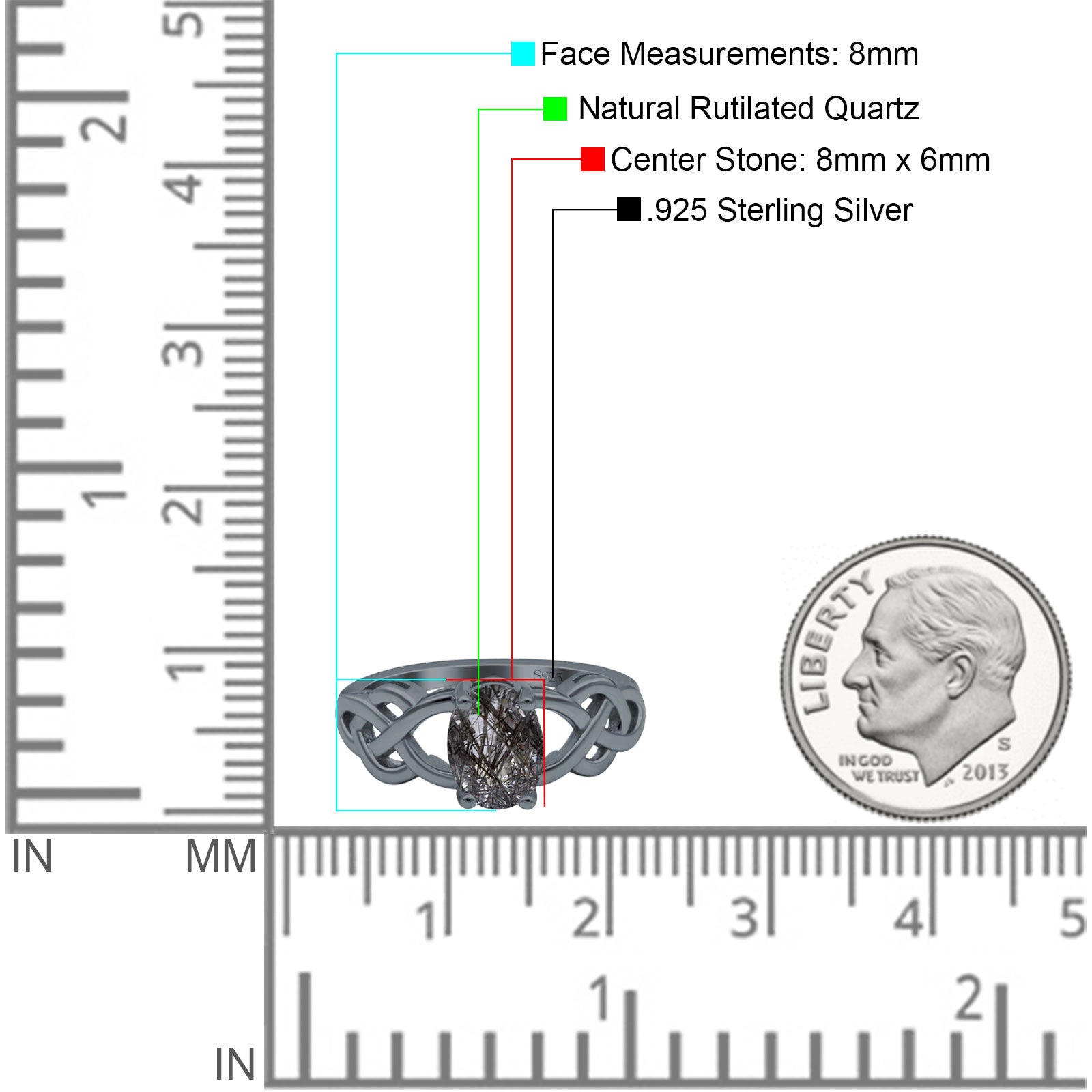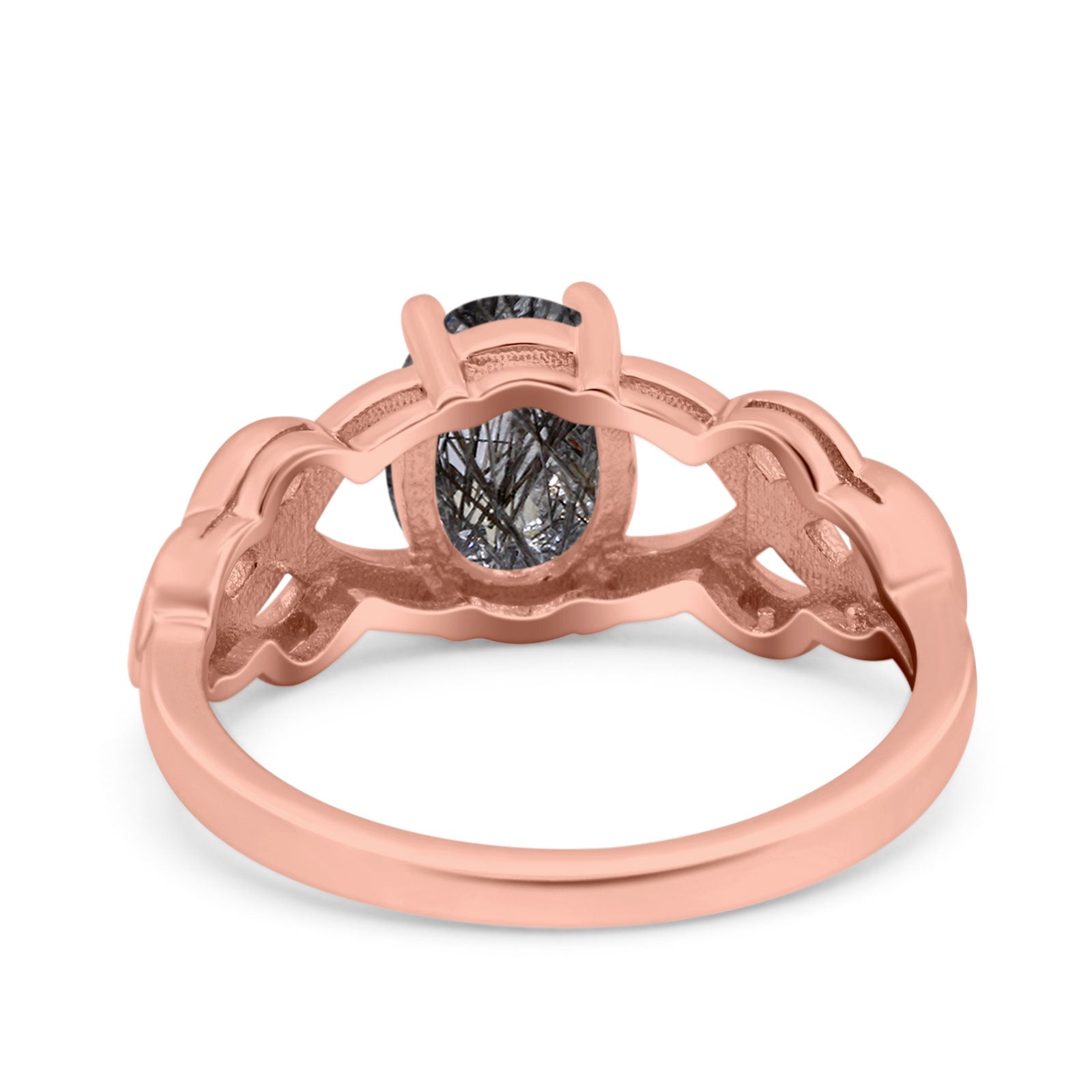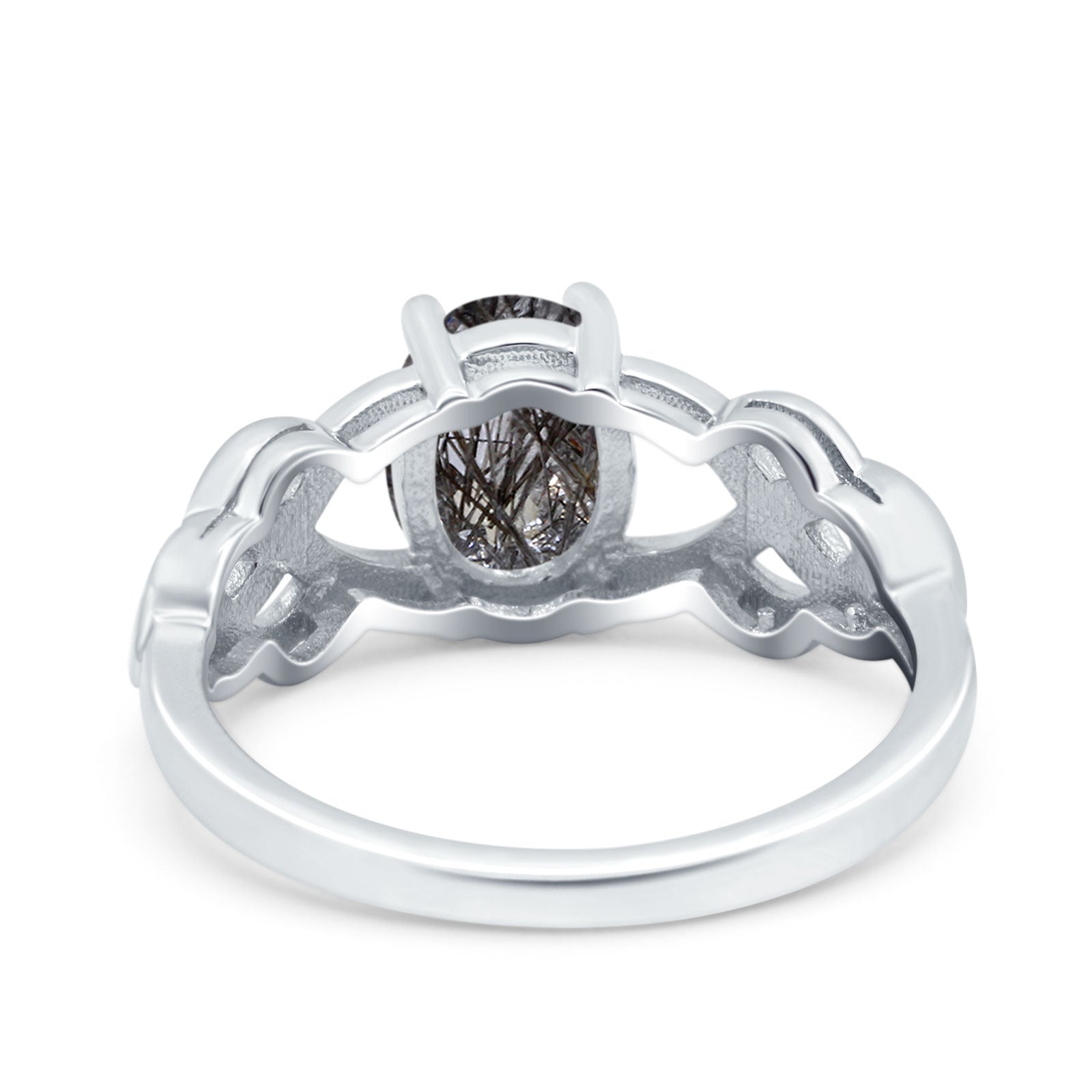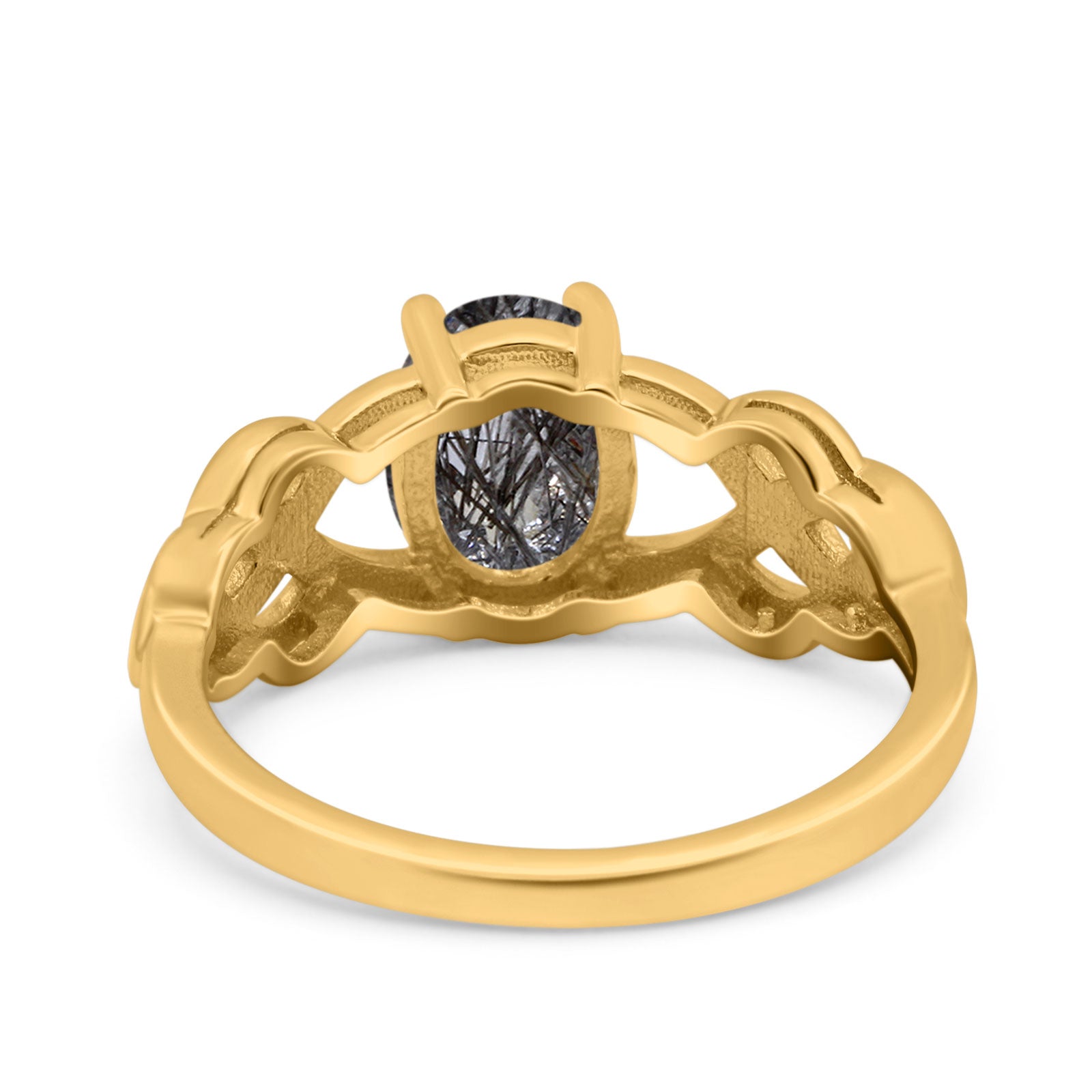 Oval Natural Rutilated Quartz Solitaire Trinity Ring 925 Sterling Silver