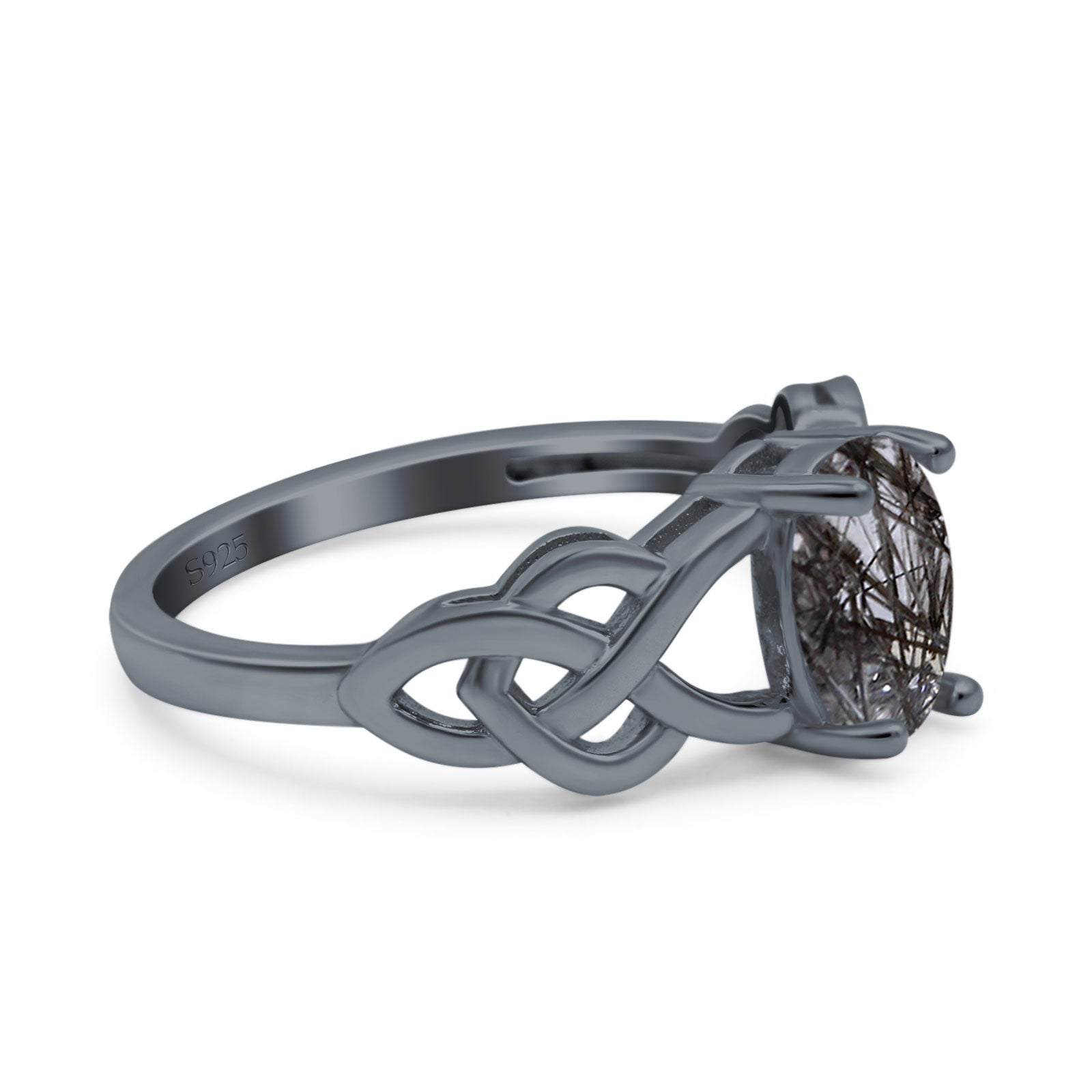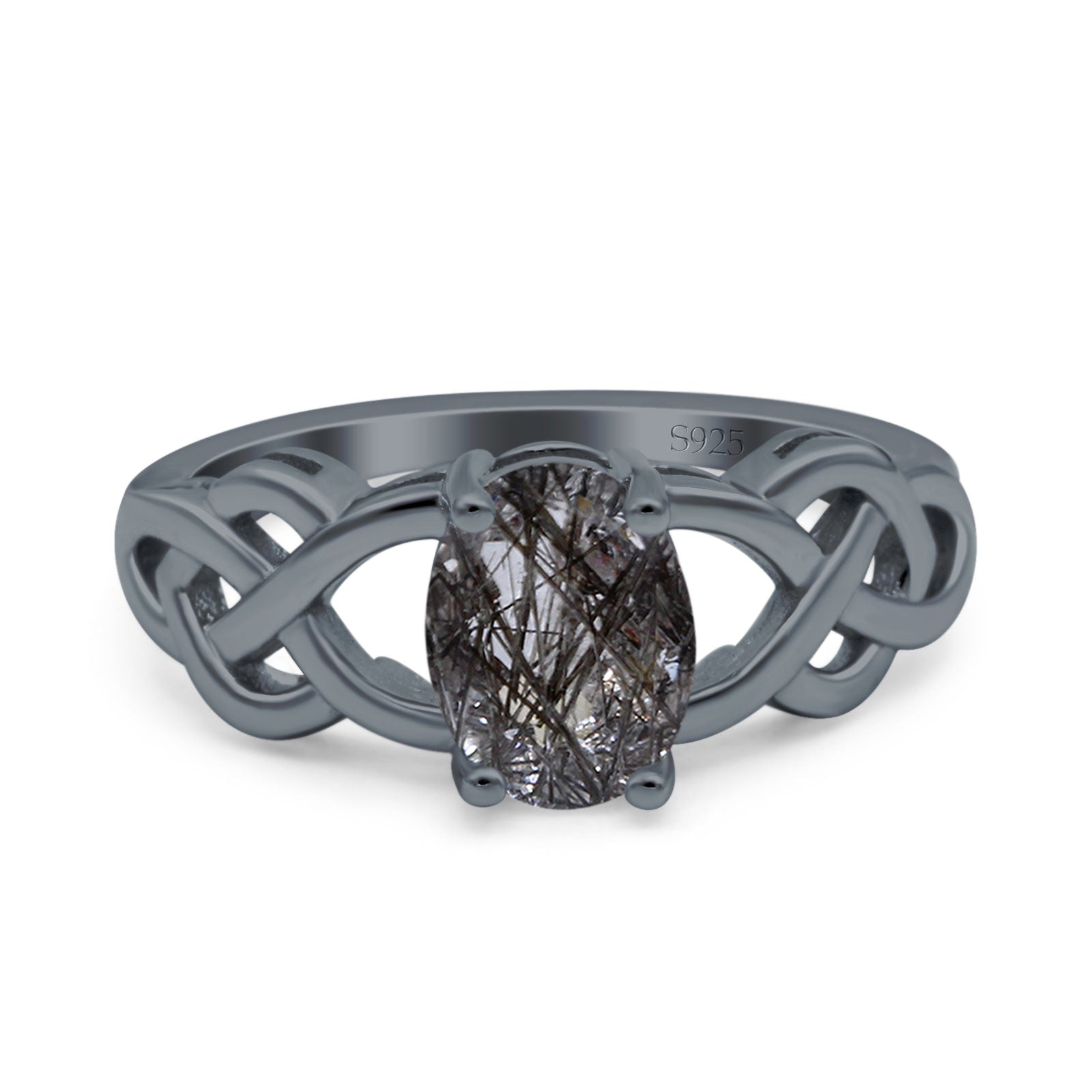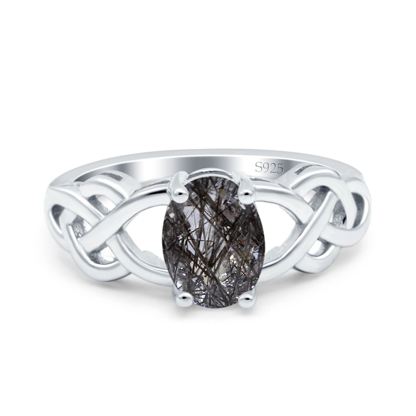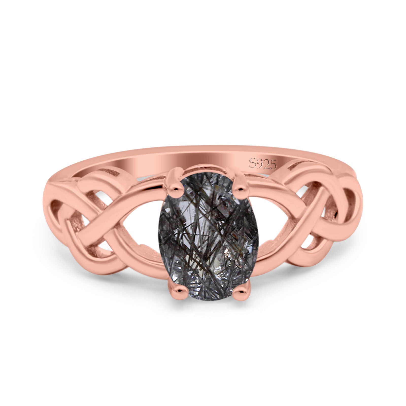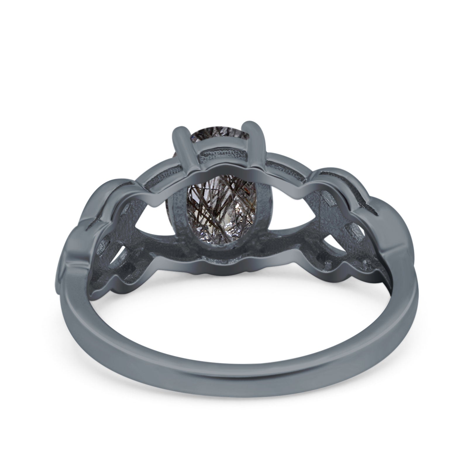 Oval Natural Rutilated Quartz Solitaire Trinity Ring 925 Sterling Silver