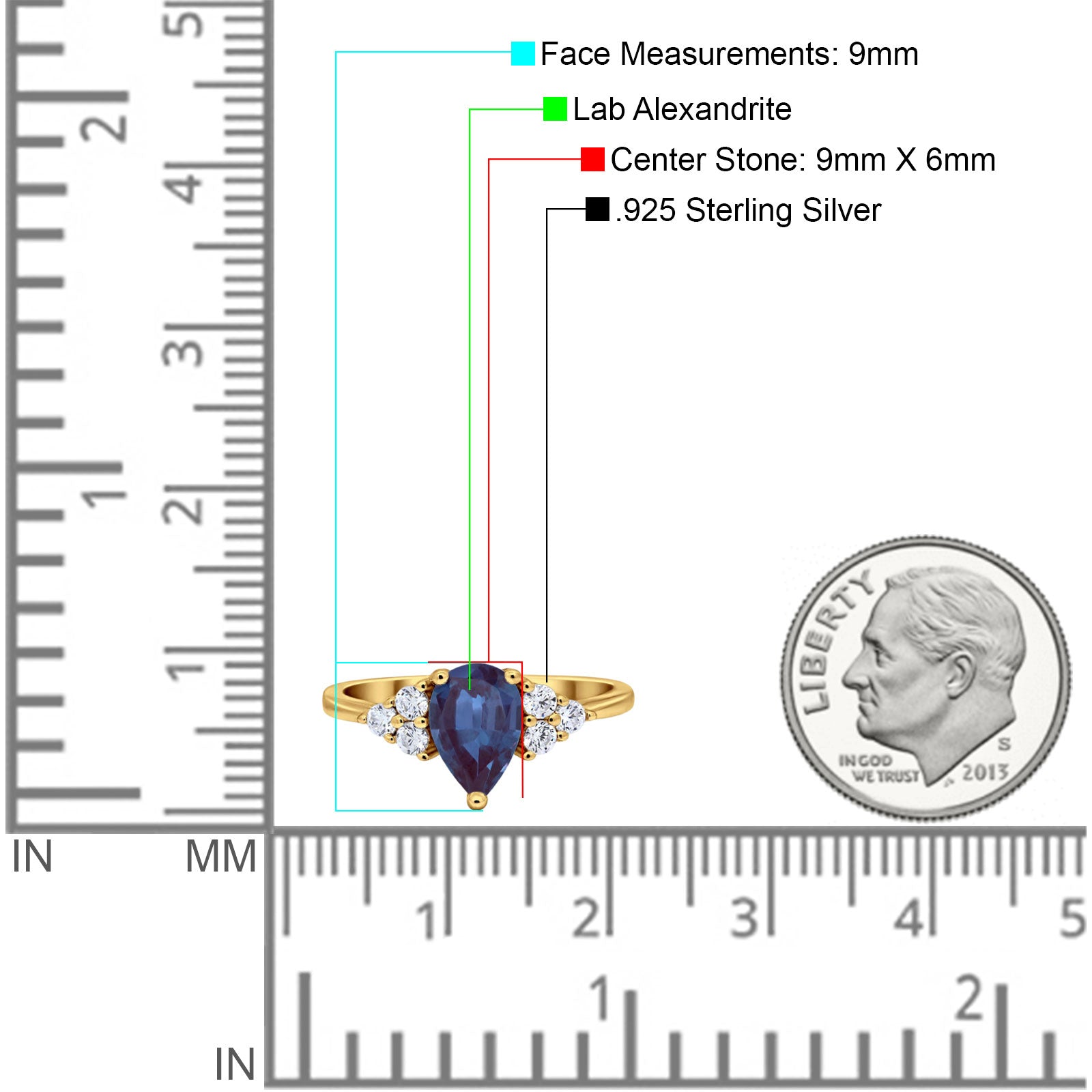 Center Stone Measurements:9mmx6mm.