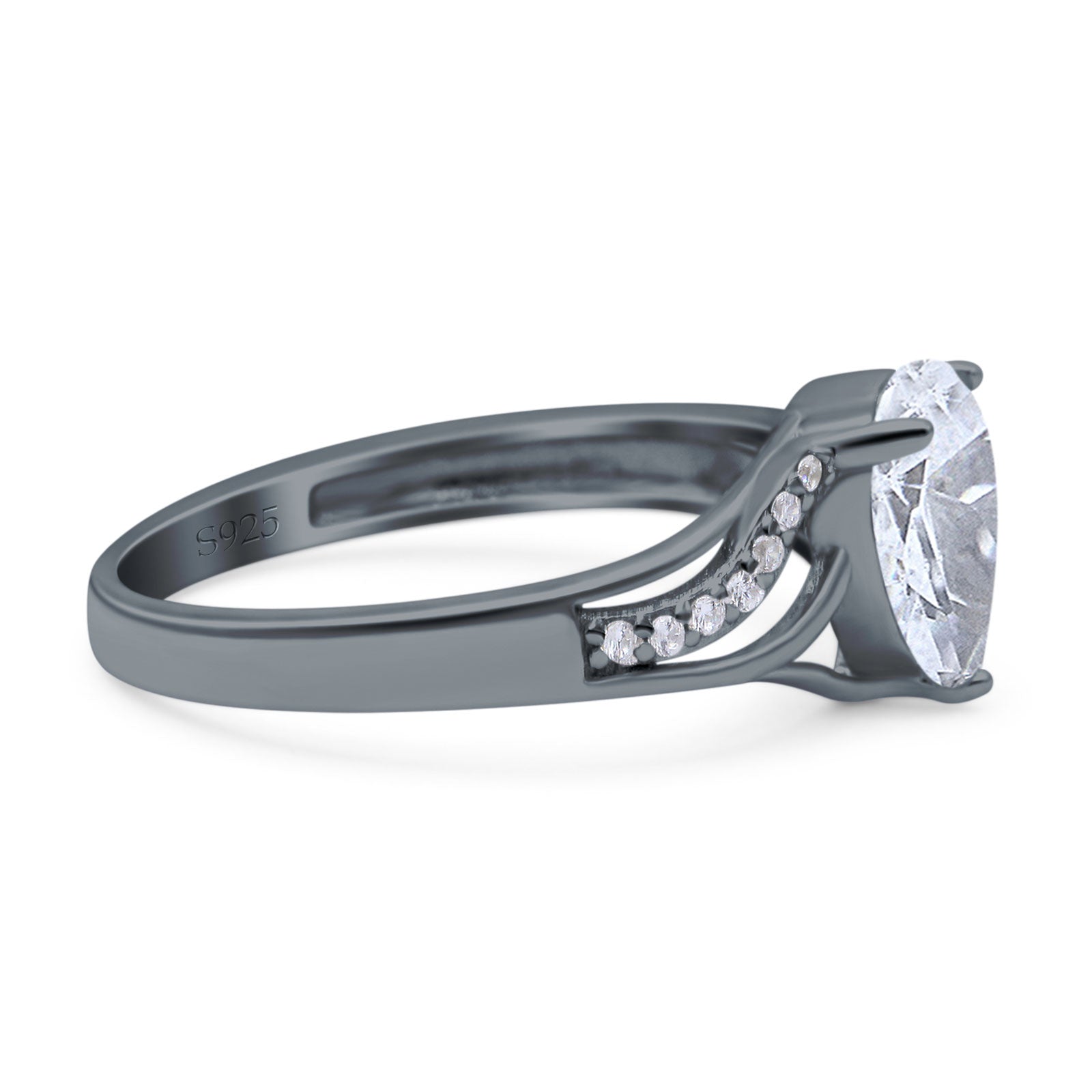 Minimalist 8mm Black Onyx Heart Ring 925 Sterling Silver