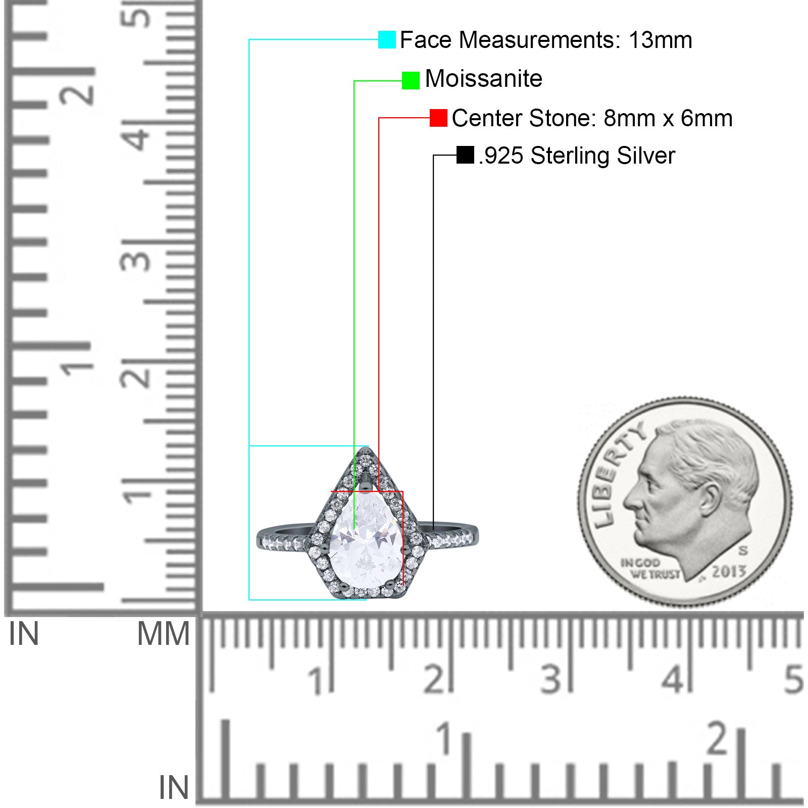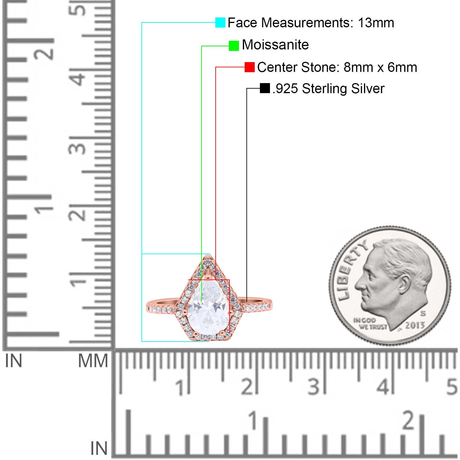 Center Stone Measurements:8mmx6mm.